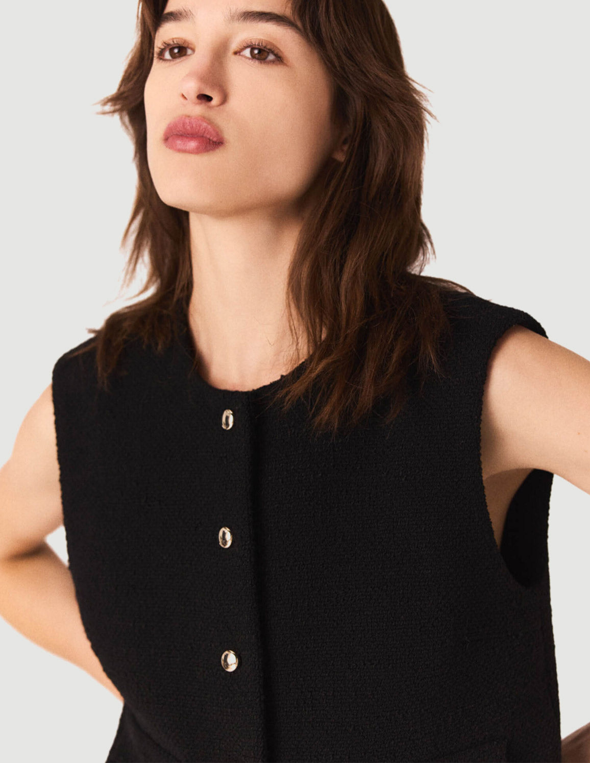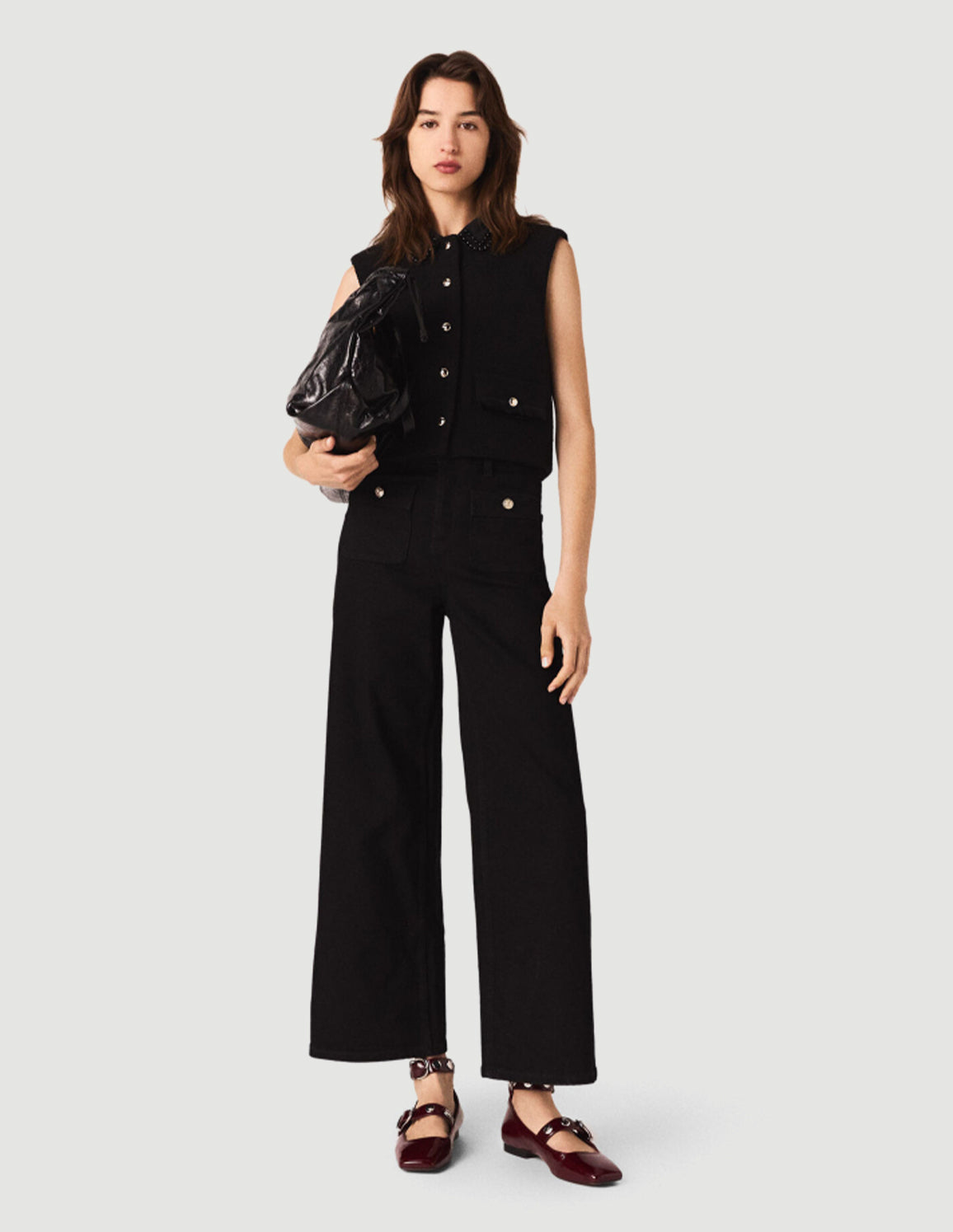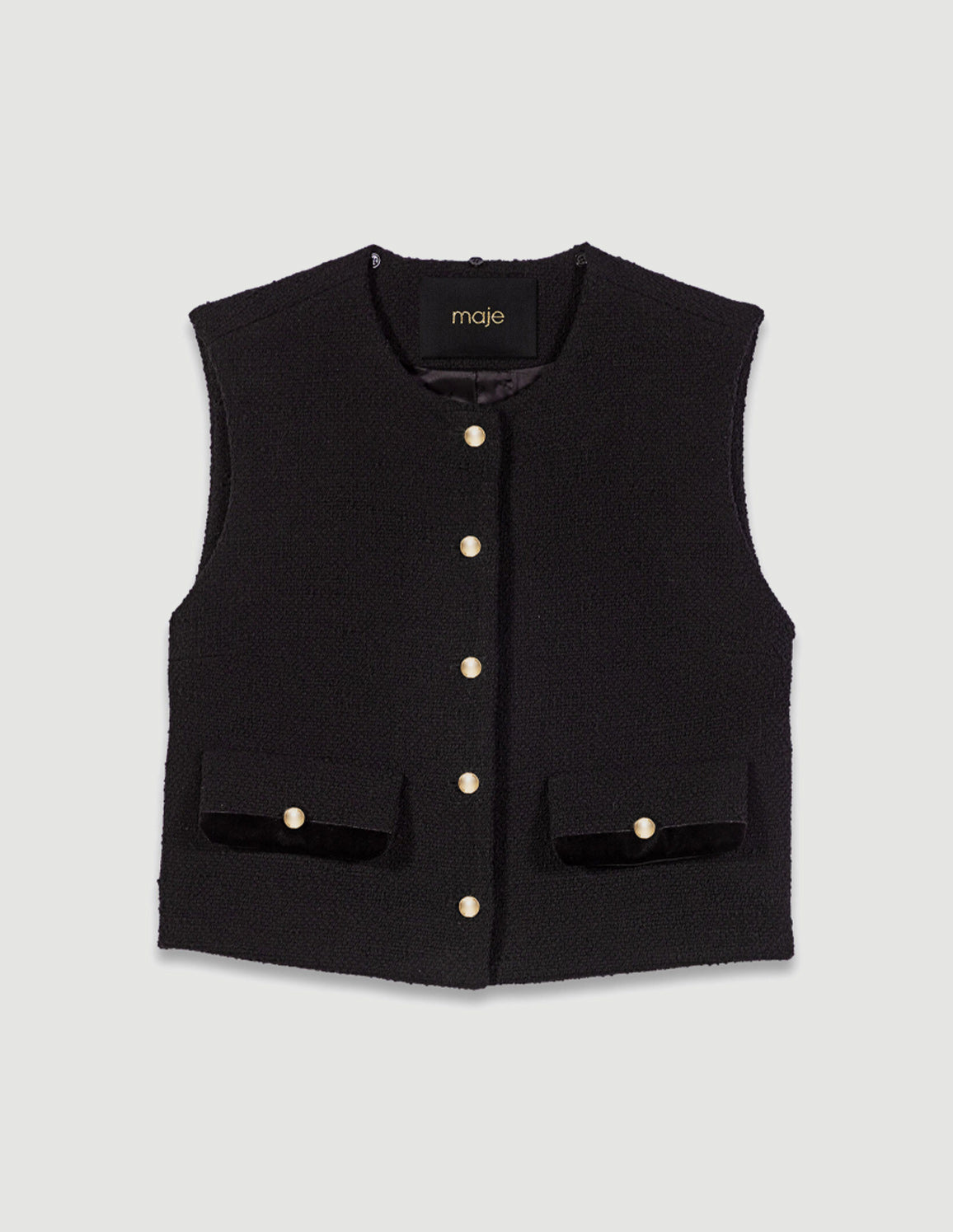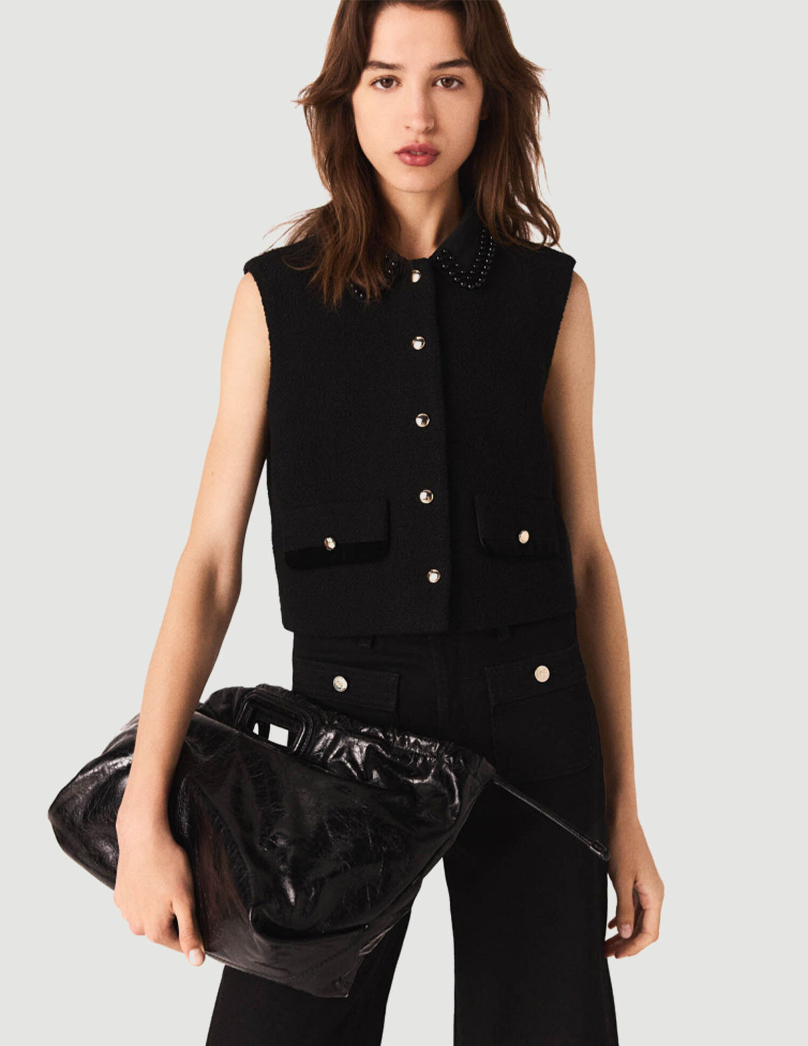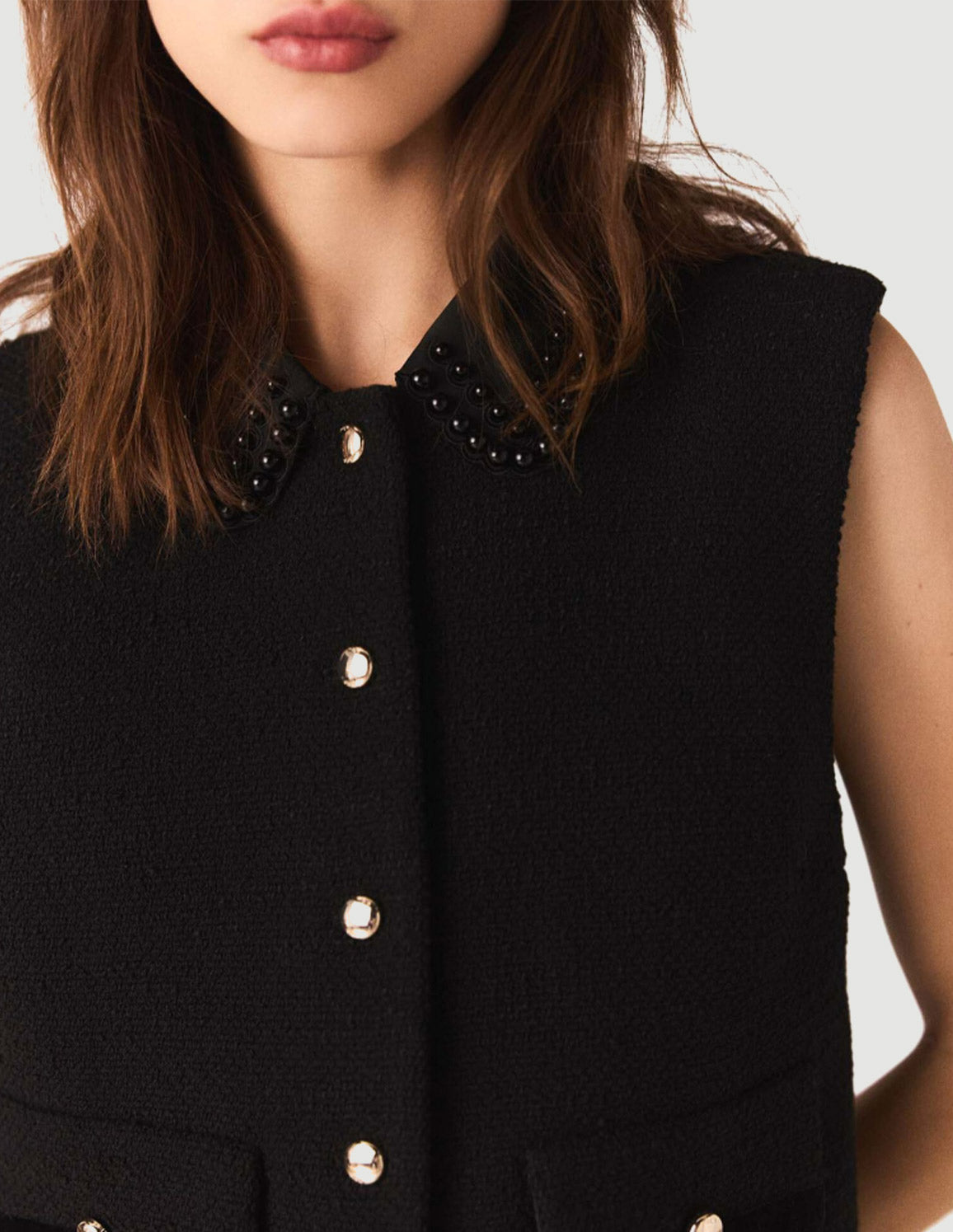 • This crop top has a couture feel with its delicately beaded jewel collar and velvet trim. Its structured cut and patch pockets give it a confident look, while the lining ensures comfort and support. A refined piece with exquisite details.