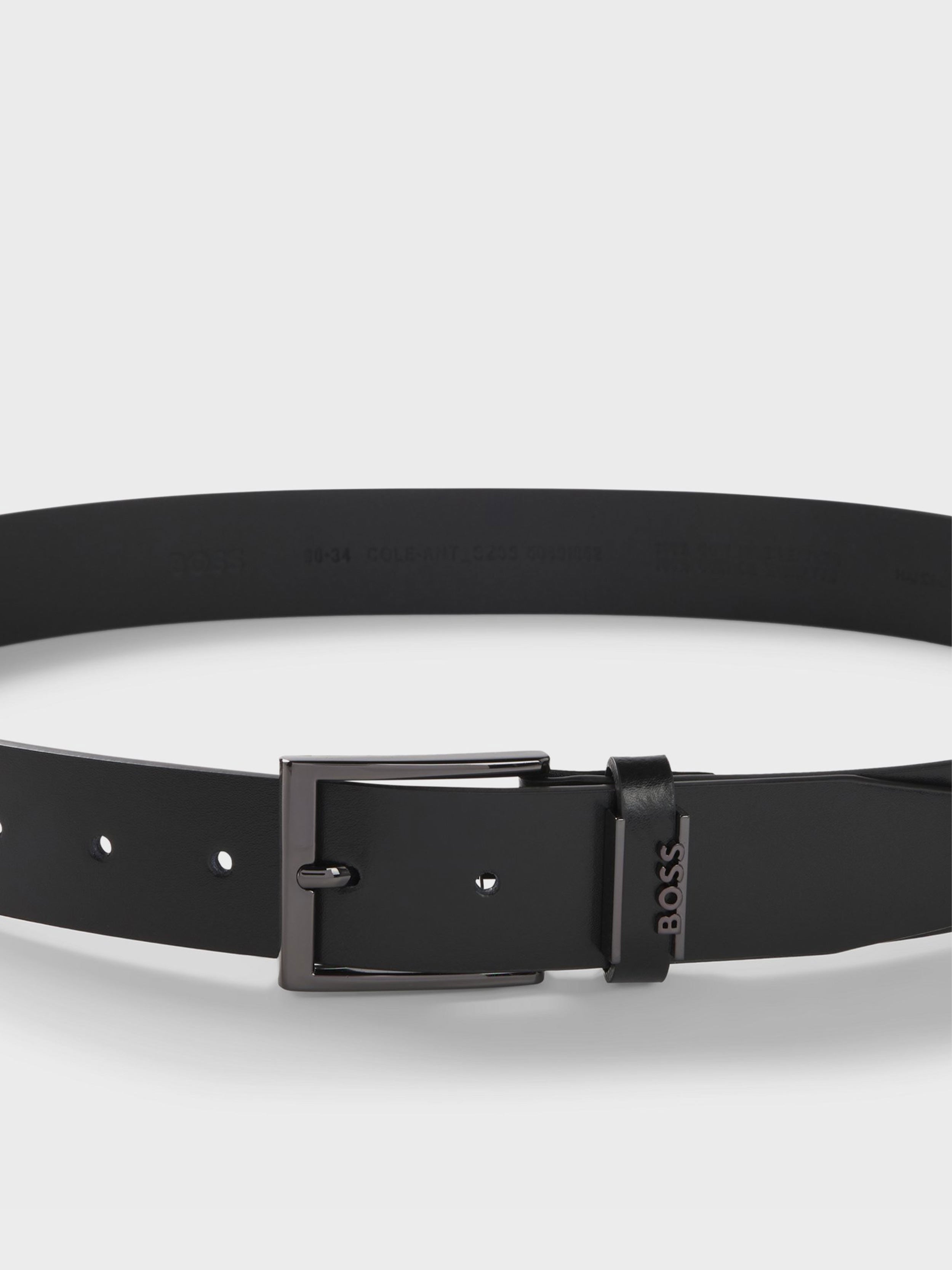 • An Italian-made belt by BOSS, cut to a 3.5cm width in Italian leather with metallic logo lettering on the keeper. For the best fit, we advise ordering a belt one size larger than your waist size This product contains at least 60% better raw materials. We continuously look for more responsible ways to produce and finish our products. A minimum of 60% of the leather used to make this product has been sourced from certified tanneries.
