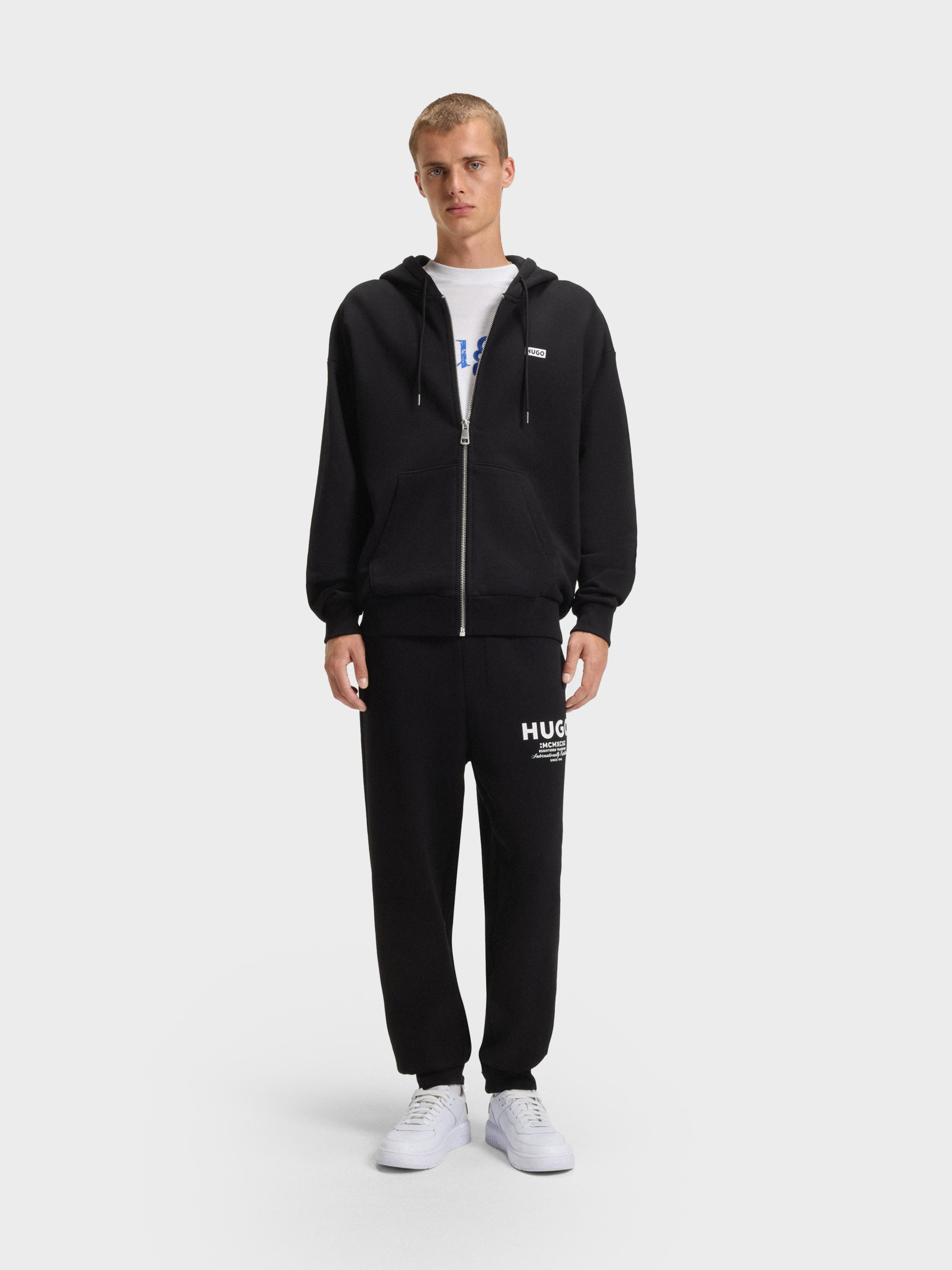 • Oversized-fit tracksuit bottoms with cuffed hems by HUGO Menswear. Featuring an international logo print. Crafted in comfortable cotton terry.