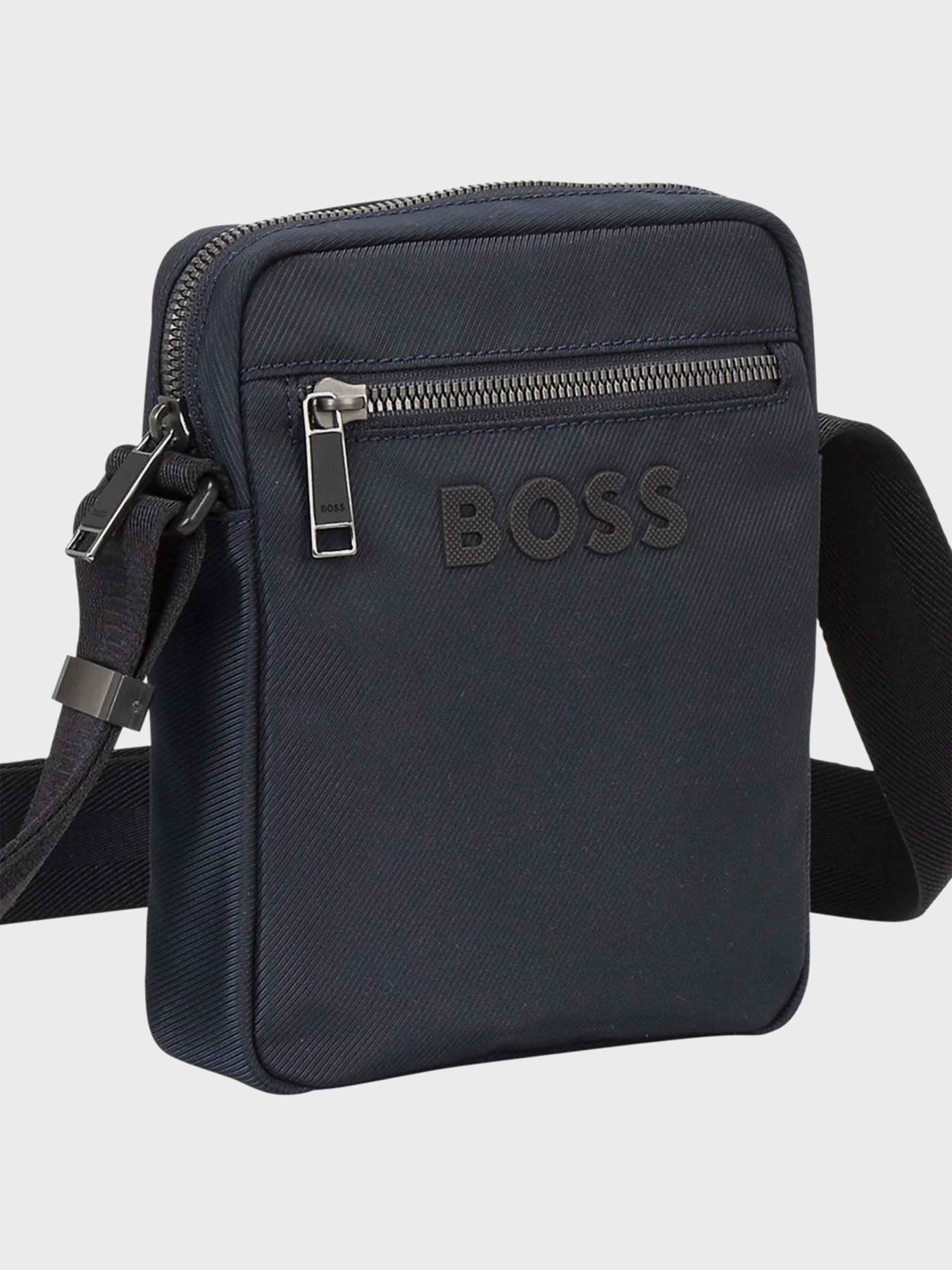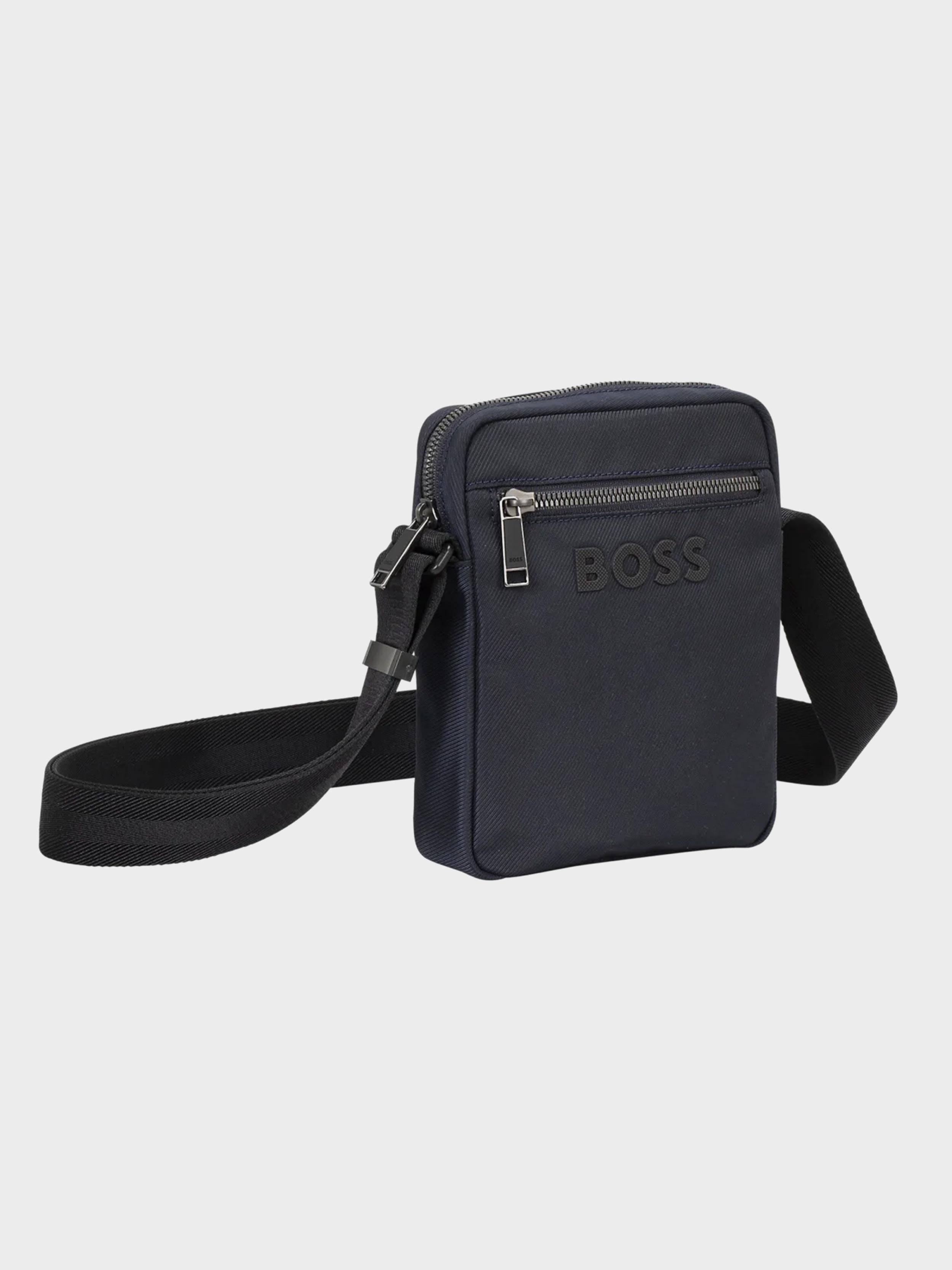 • Sling this BOSS Menswear crossbody bag over your shoulder for an instant style update. Structured fabric. Zipped front pocket. Signature-stripe strap and contrast logo. Measurements: 20.5 x 16 x 5.5cm This product contains at least 60% better raw materials. This product is partly created with recycled polyester. We at HUGO BOSS prefer recycled polyester from pre- and post-consumer textile waste and do our best to phase out polyester from PET bottles.