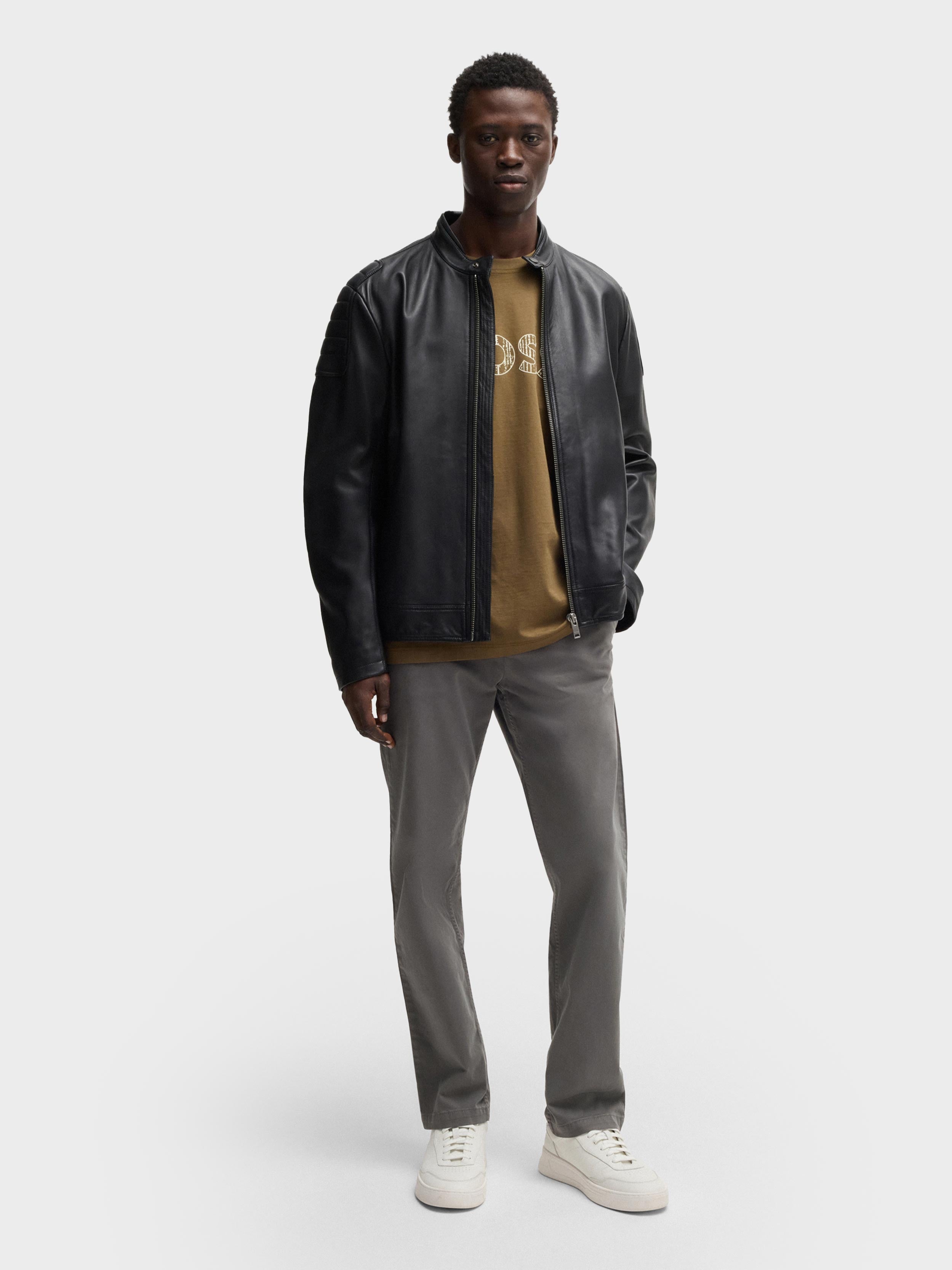 • With their straight fit and comfortable satin fabric, these BOSS Menswear trousers are a casual must. Soft cotton with added stretch. This product contains at least 80% better raw materials. This piece is made with at least 80% cotton derived from regenerative agriculture. Regenerative agriculture prioritises the preservation and restoration of natural environments, aiming to enhancebiodiversity, maintain water quality, and improve soil health.
