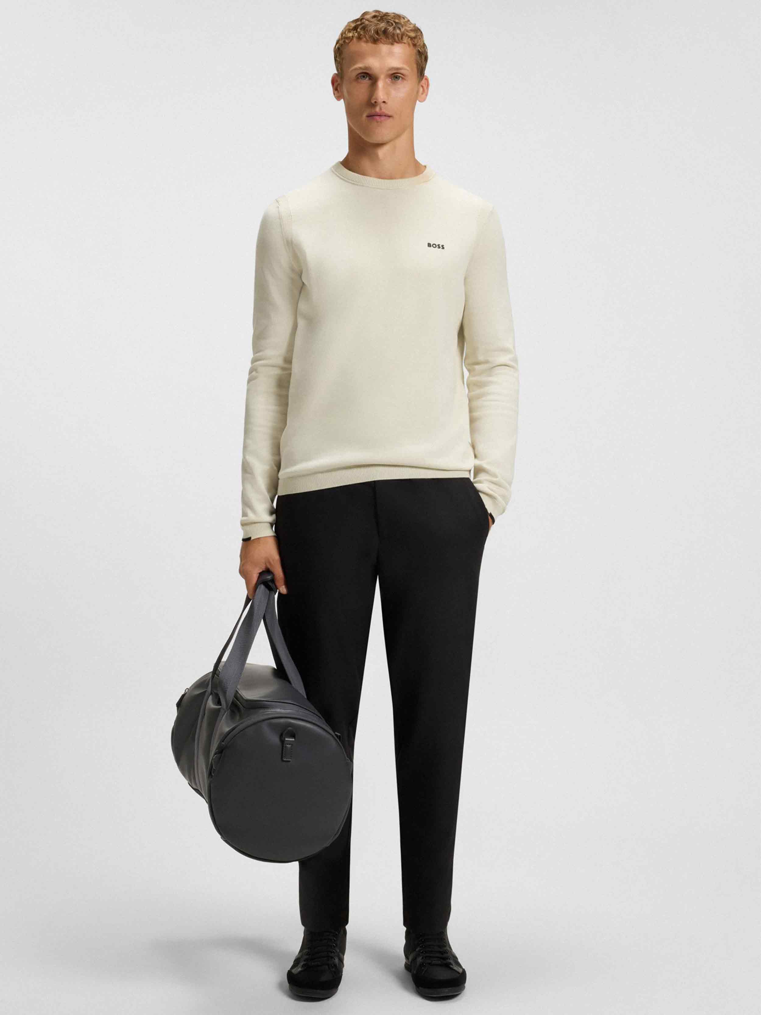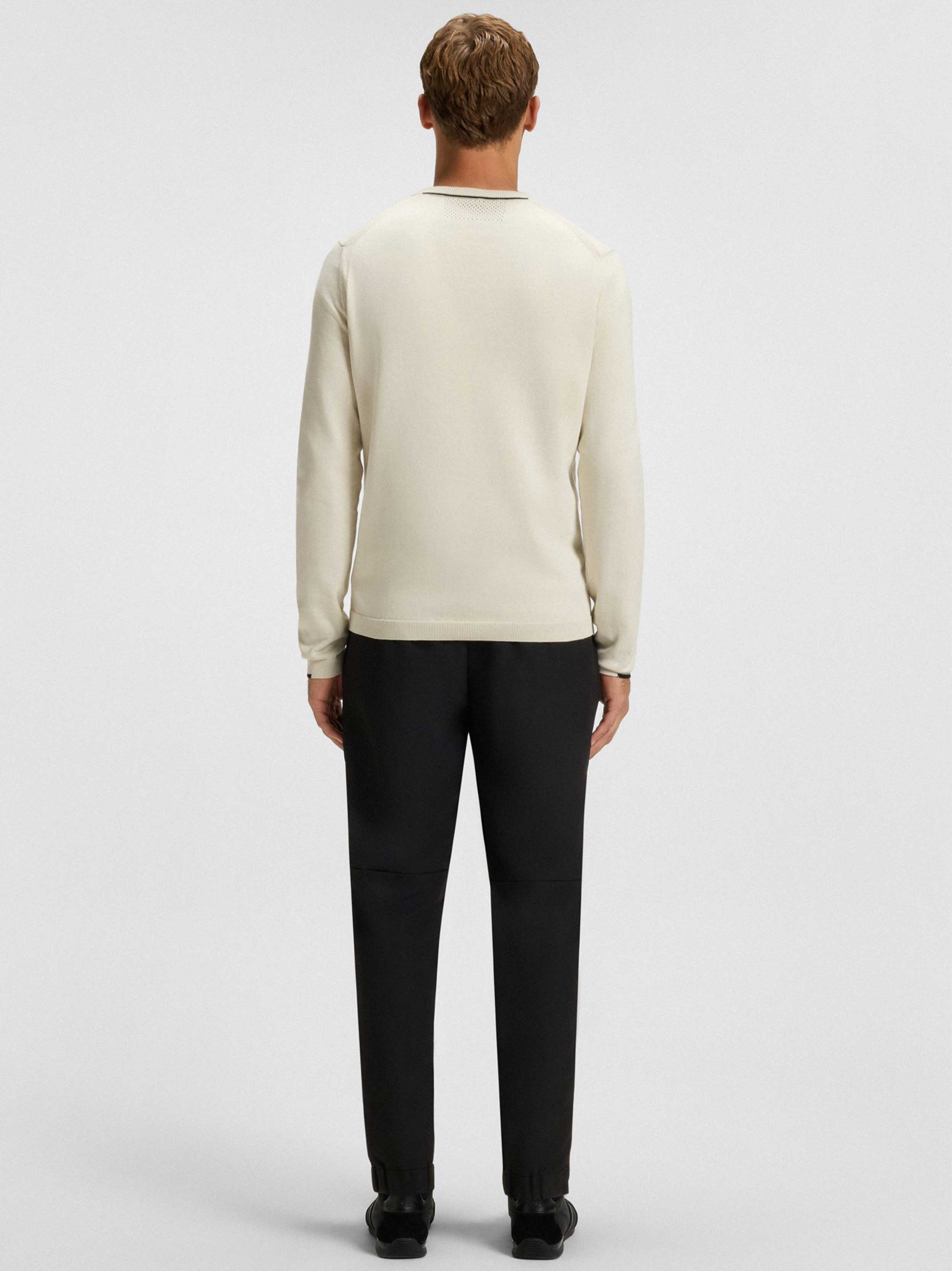 • With integrated perforations and ergonomic ribbed seams, this BOSS Men's sweater is comfortable, flexible, and breathable. Made from soft cotton. Contrast logo and piping.