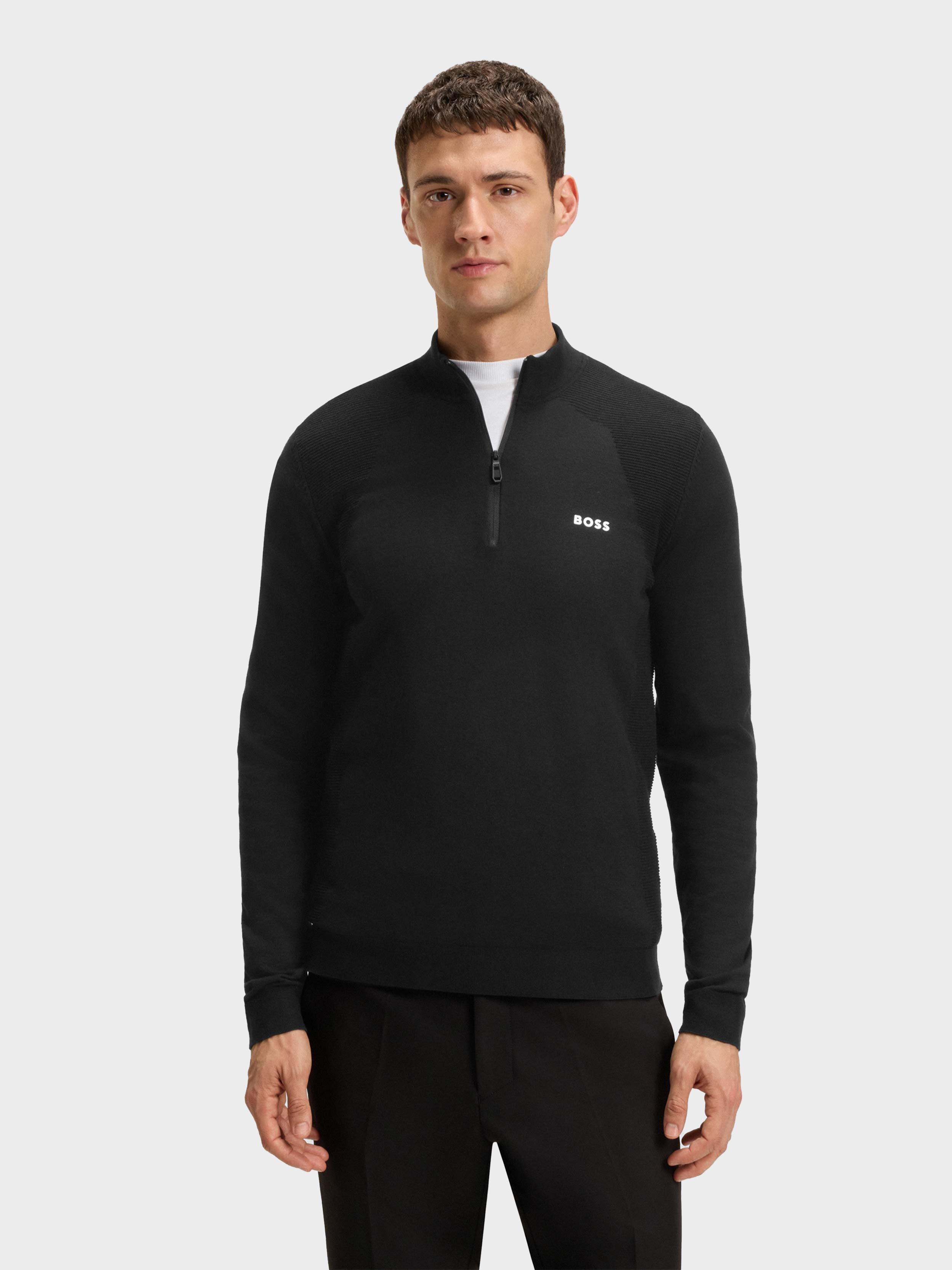 • BOSS - Men's Cotton Blend Sweater With Quarter Zip And Body Mapping