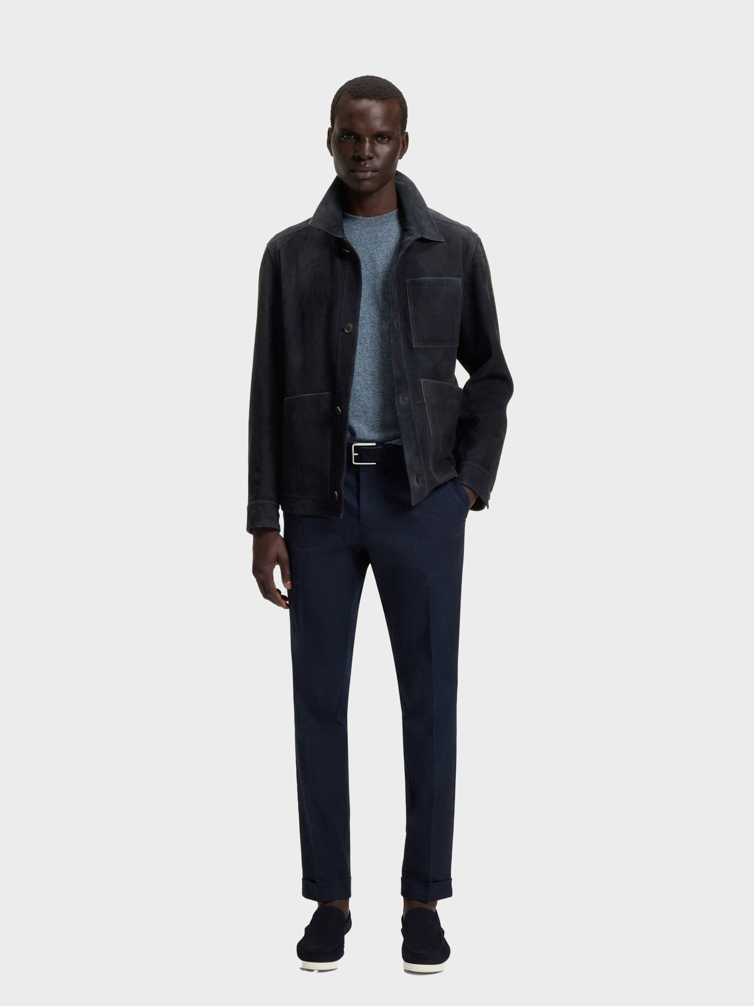 • In a straight fit for easy layering, this BOSS Menswear jacket is made in finest suede. A nappalan finish enriches the fabric's smooth, refined feel. This product contains at least 60% better raw materials. We continuously look for more responsible ways to produce and finish our products. A minimum of 60% of the leather used to make this product has been sourced from certified tanneries.
