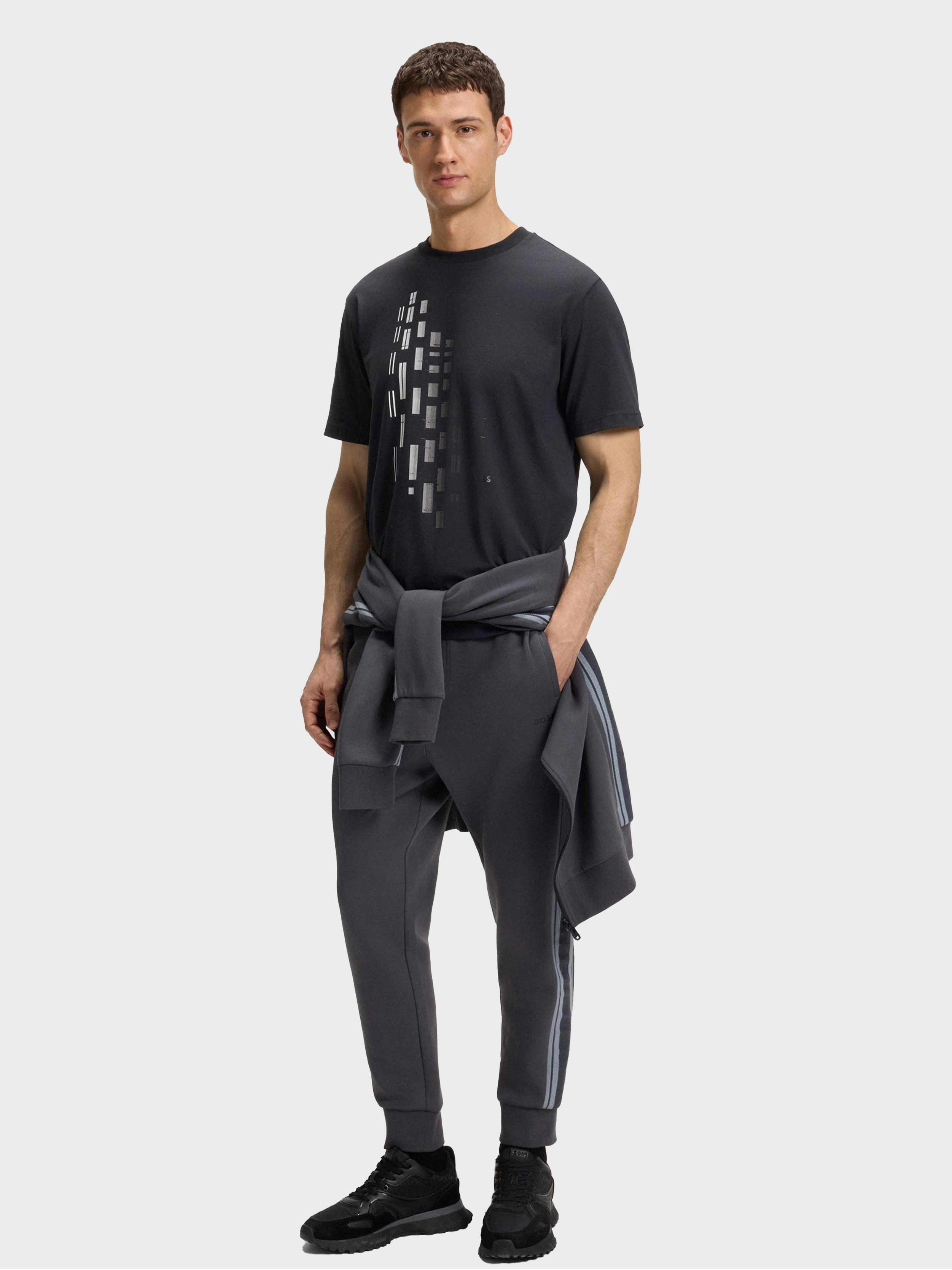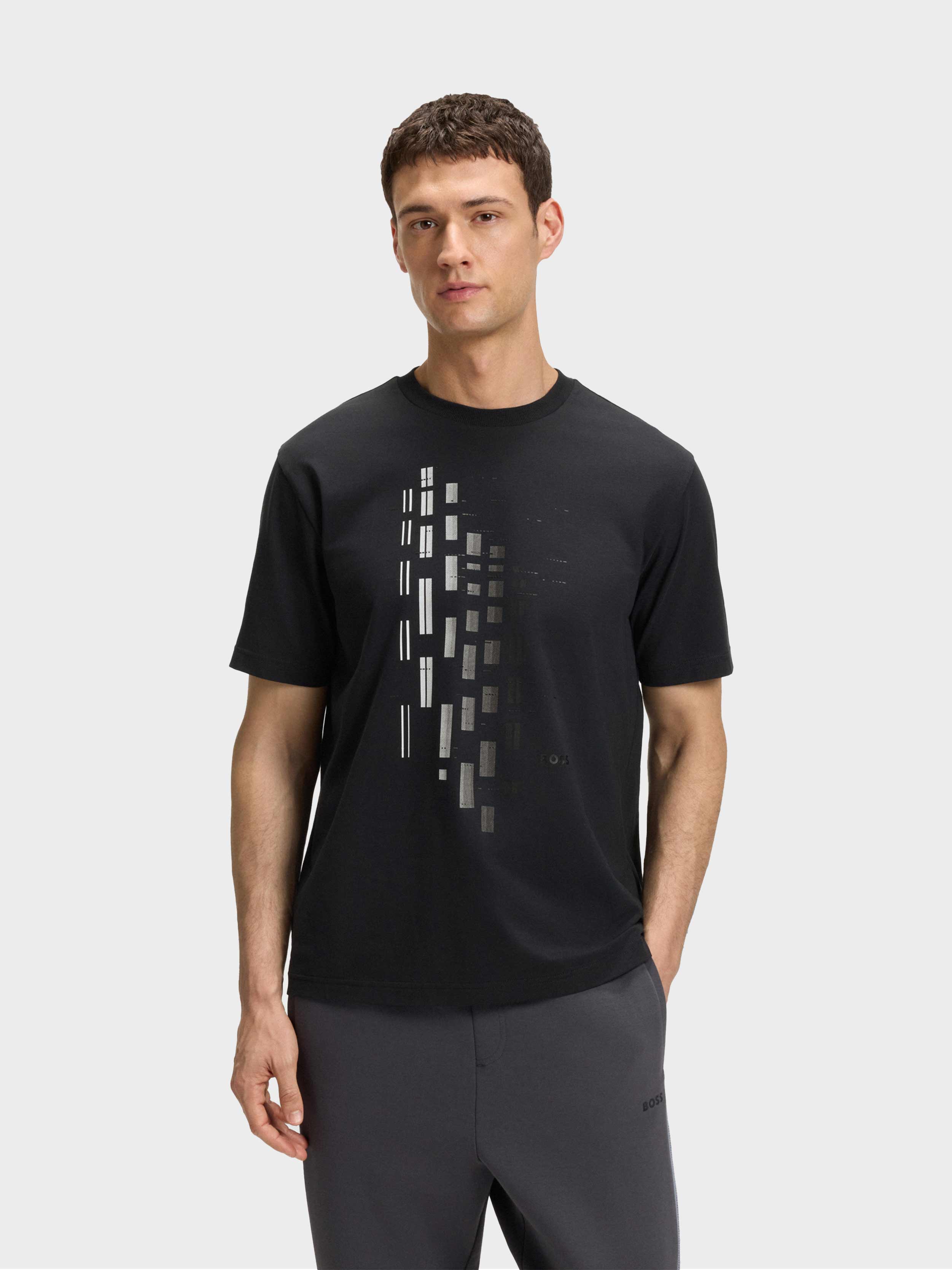 • In a casual fit, this BOSS Menswear T-shirt is printed with colourful artwork in a geometric, degradé effect. Breathable stretch-cotton jersey.