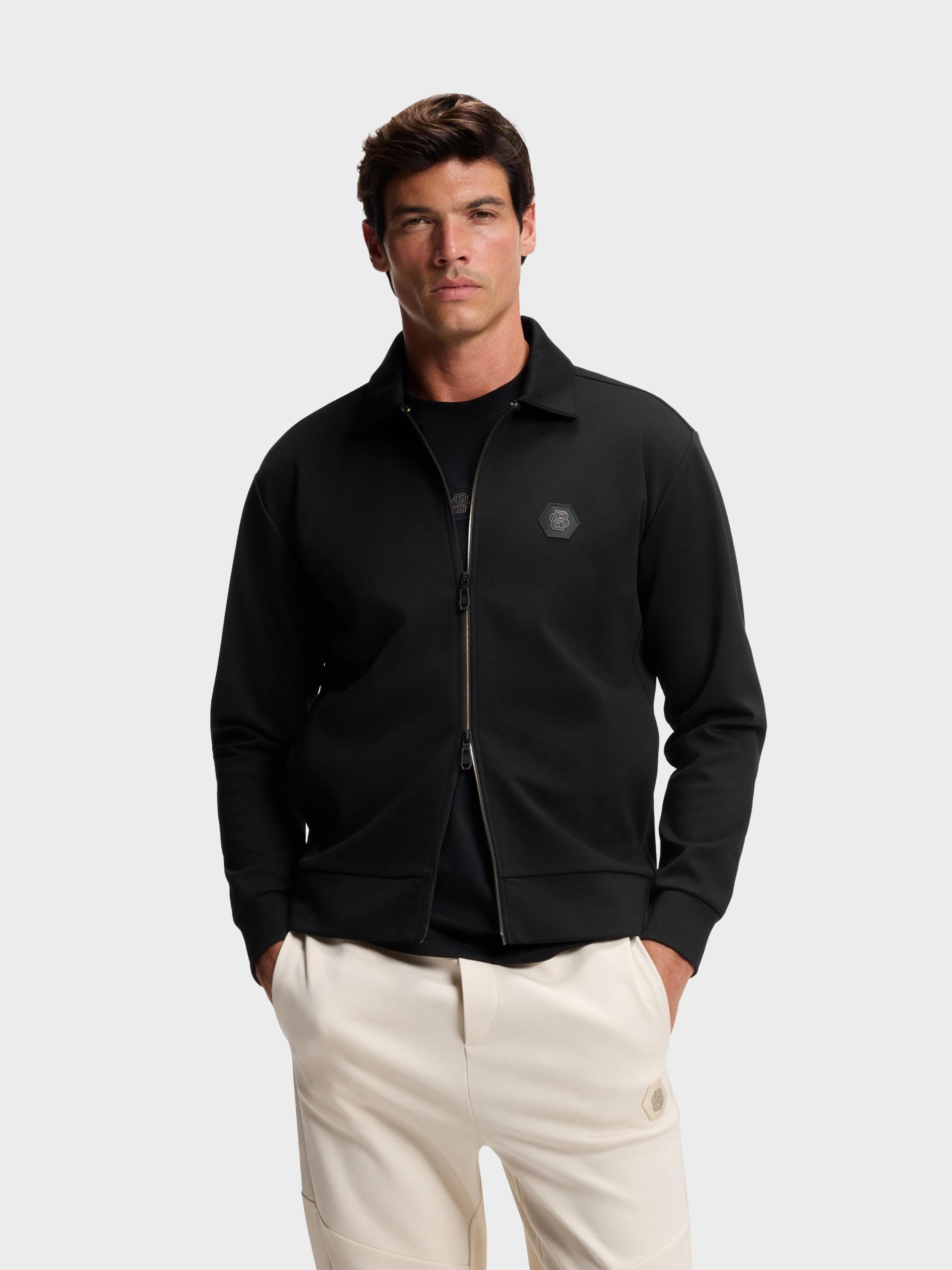 • Crafted from Punto di Roma fabric with contrast details and premium workmanship, this sweatshirt offers superior comfort and style for any occasion. - One-way Reverse coil zip w. striped detail - Iconic BB branding incorporated within the design language - Tonal printed artwork to side panel - Open front pocket storage solution