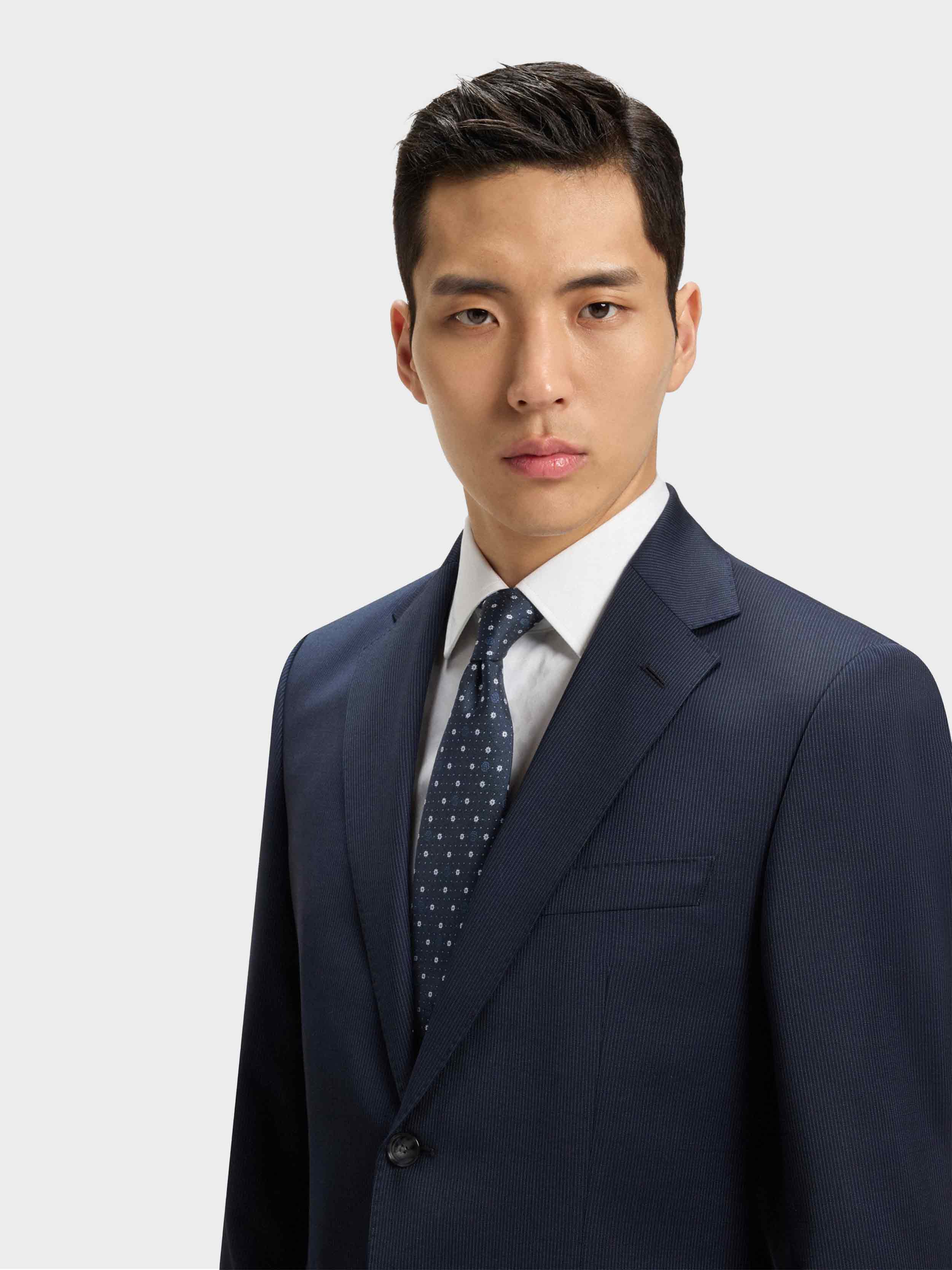 • A distinctive formal touch, this BOSS Menswear tie is woven with small Double B monograms. Elegant silk blend.