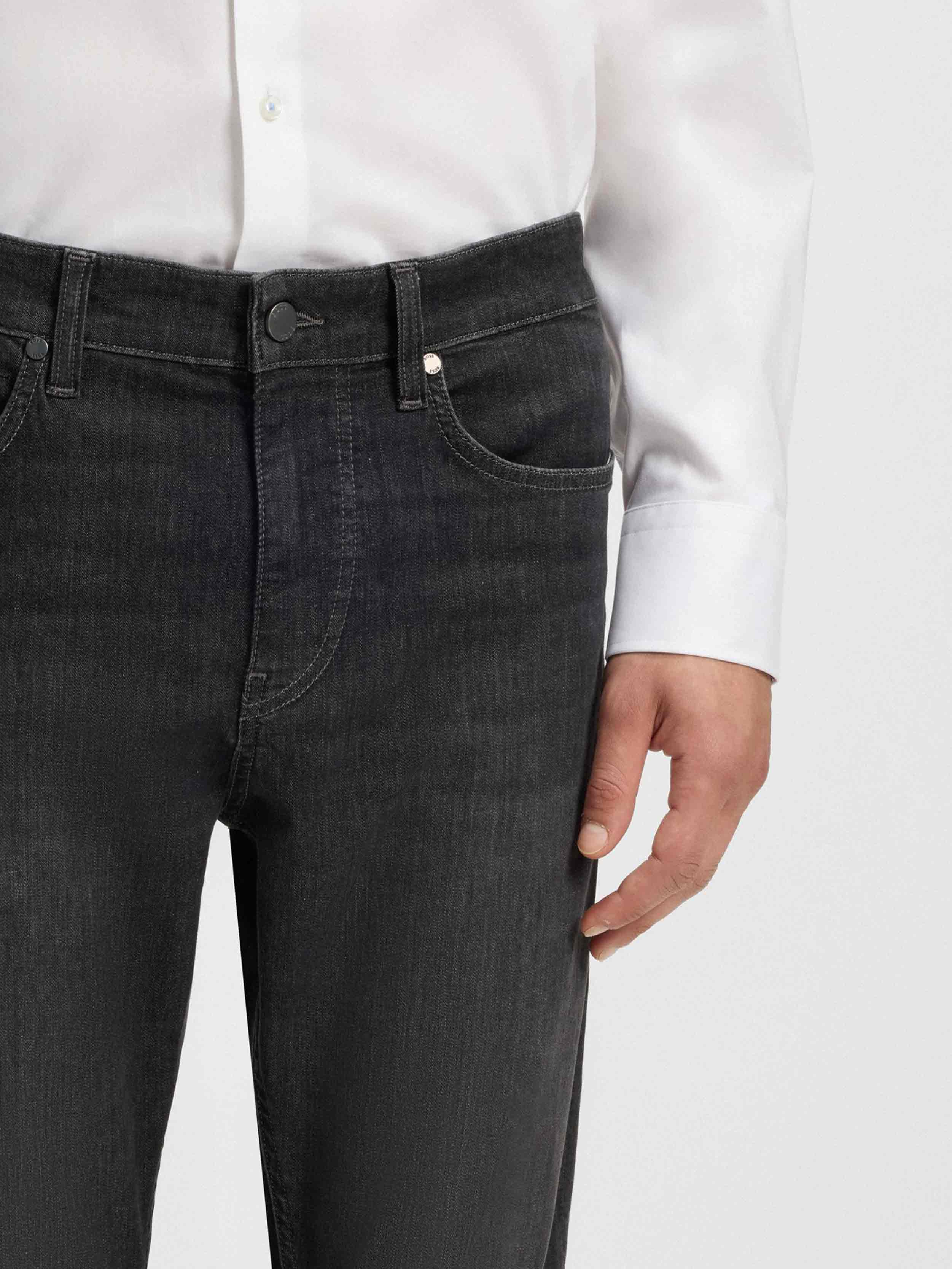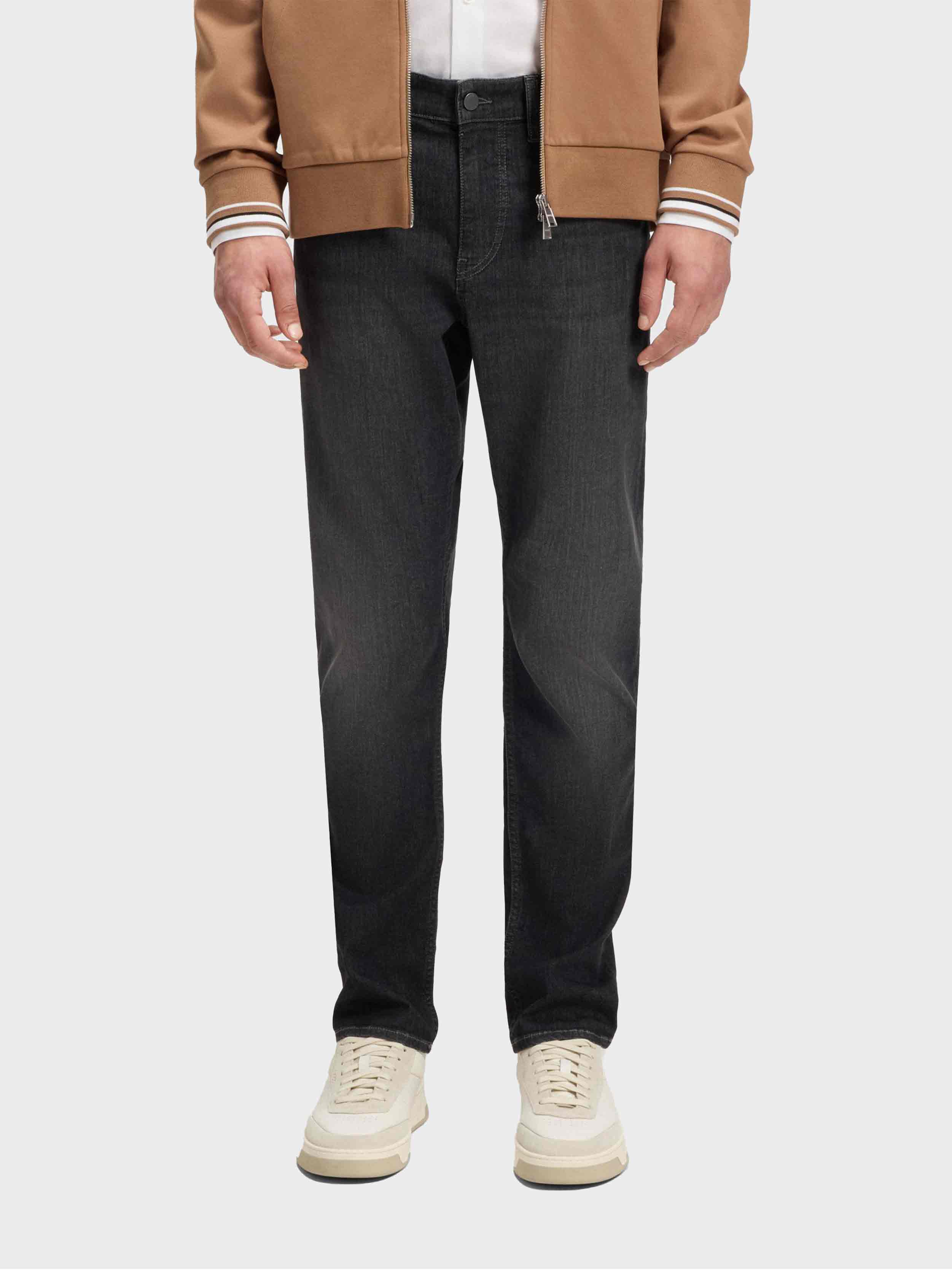• In versatile black, these BOSS Menswear jeans are designed in stretch denim with a cooling feel. Cut to a slim fit for a modern silhouette.
