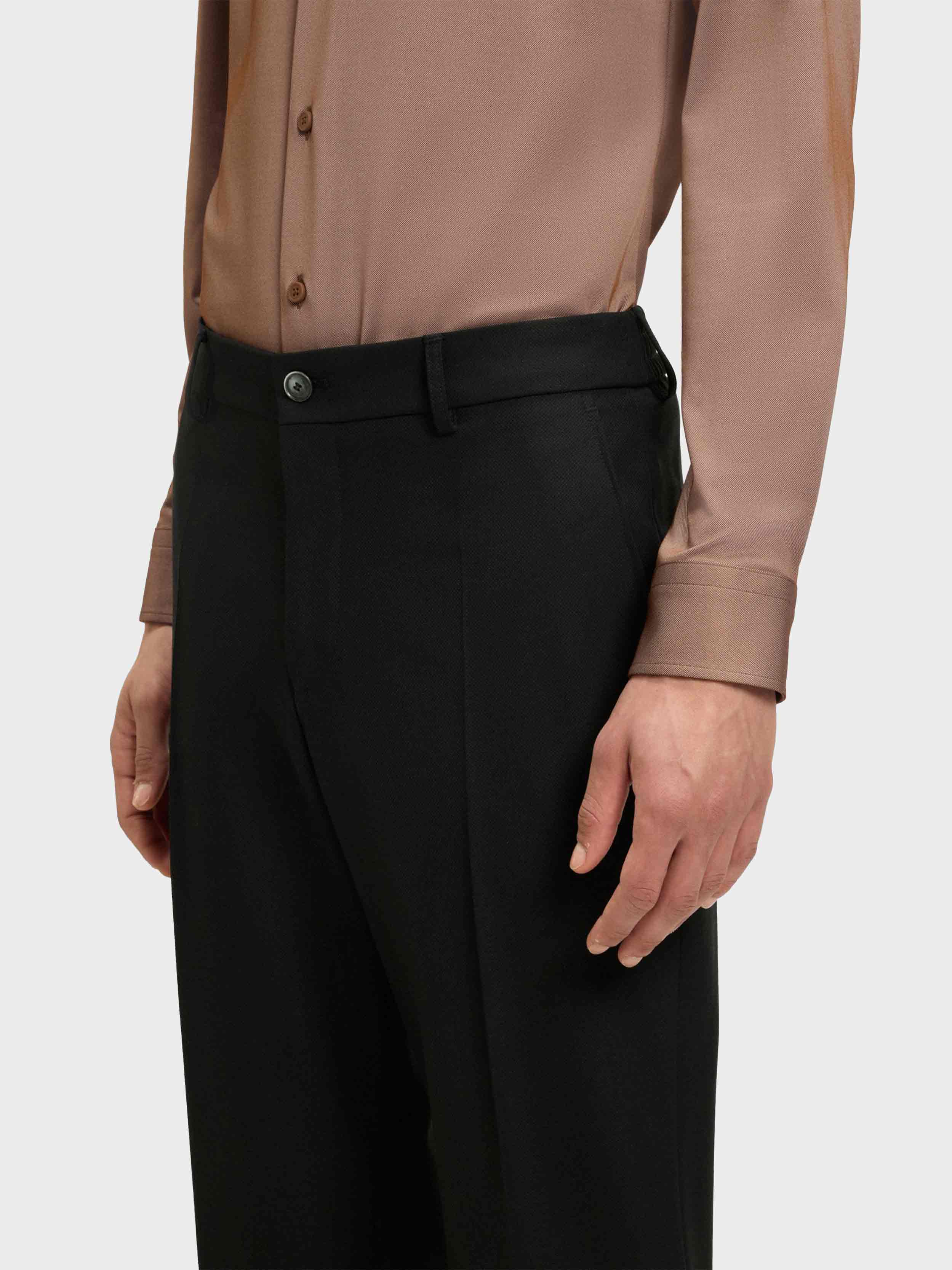 • Blended with wool and stretch, these easy-care BOSS Menswear trousers have a subtle micro pattern. Modern tapered fit with comfort waistband.