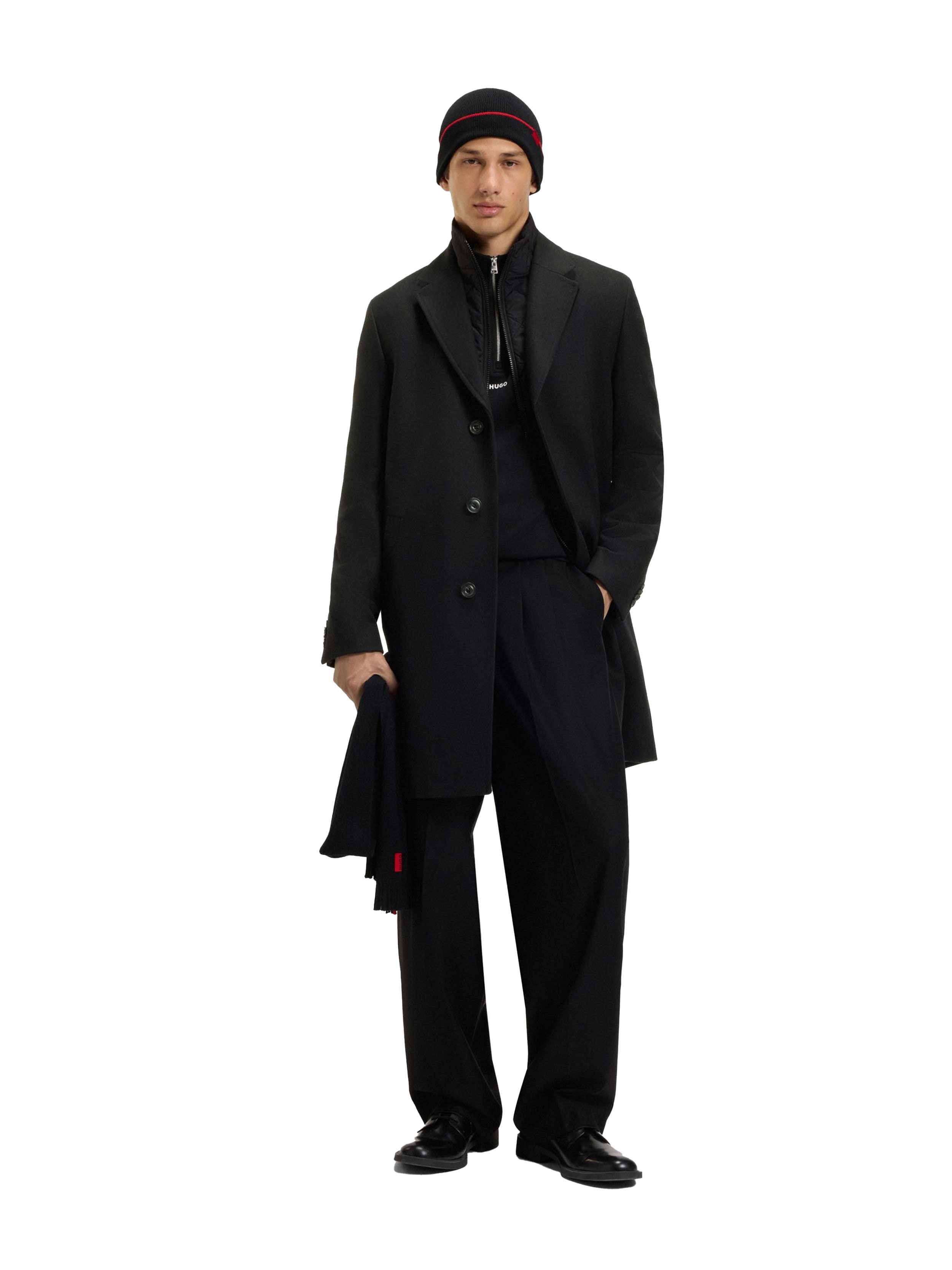 • With its quilted inner vest, this regular-fit HUGO Menswear coat is a versatile must as we move between seasons. Wool-rich blend.