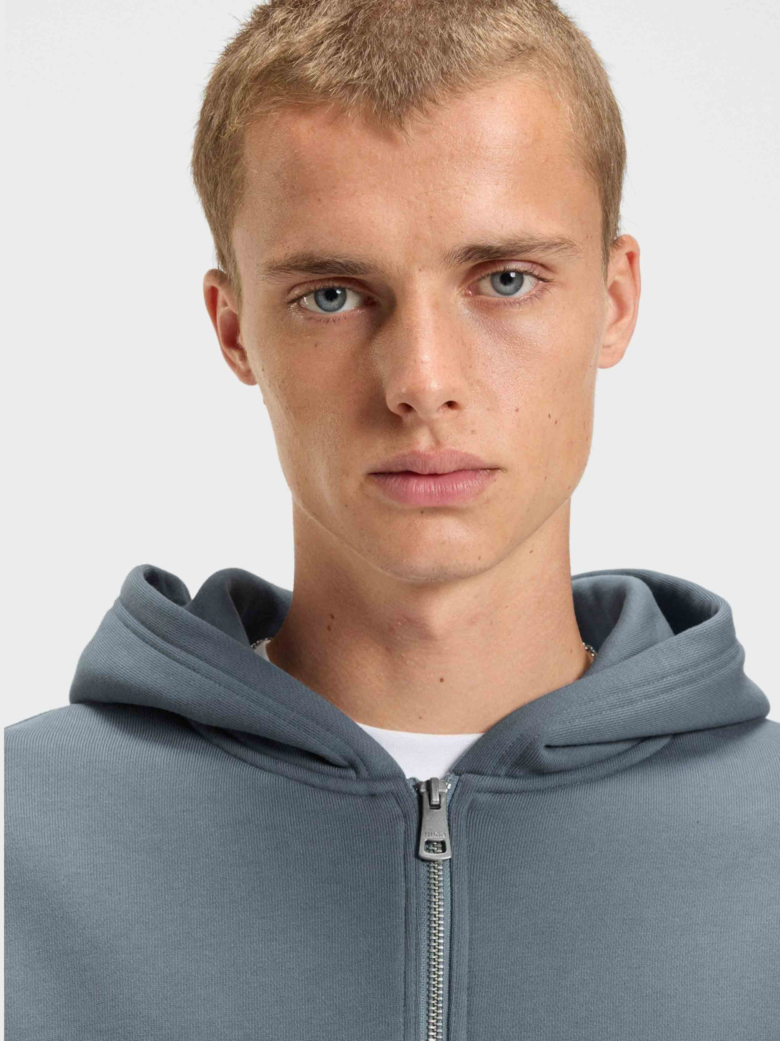 • In a straight fit, this HUGO Menswear zipped hoodie has a double-layer construction for cosy layering. Cotton-rich brushed French terry. Contrast logo label.