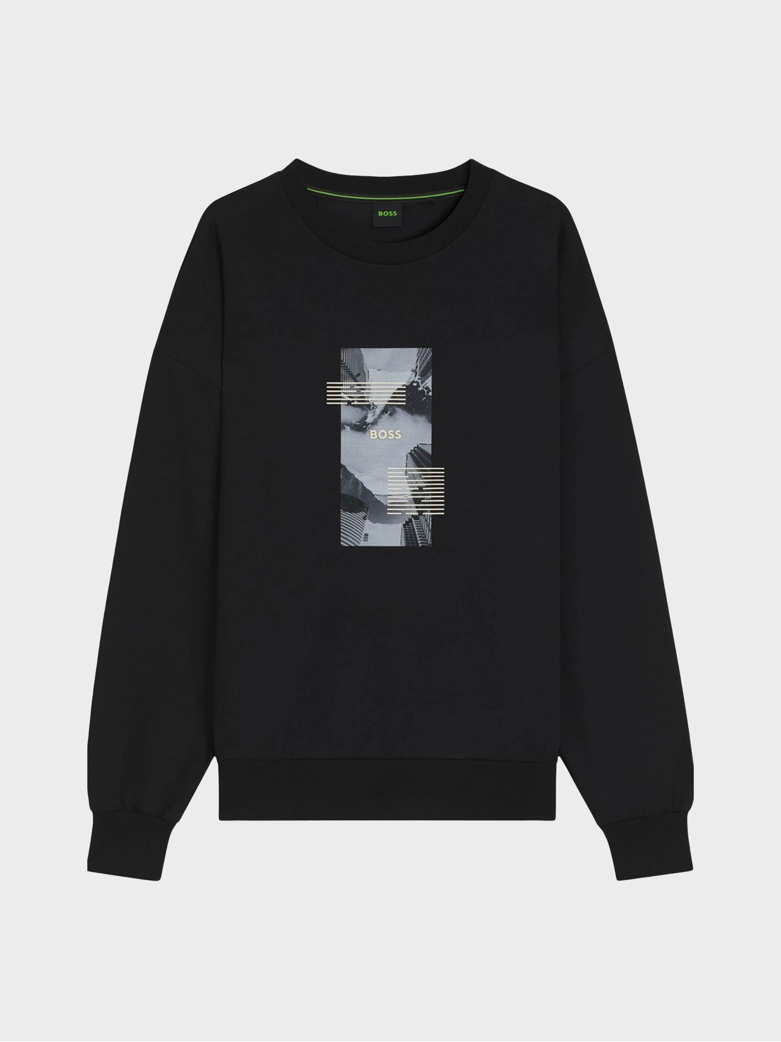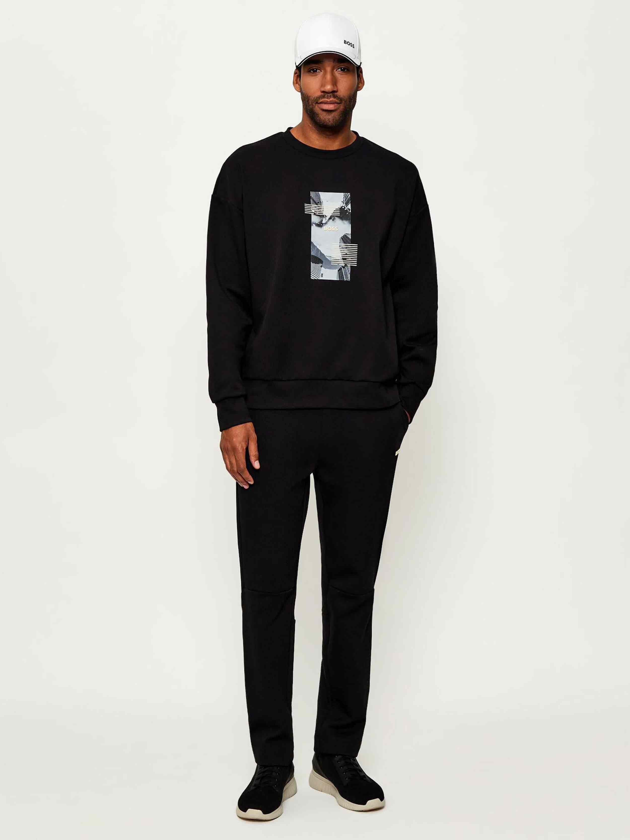 • Crafted in a cotton-rich blend with stretch for comfort, this oversized-fit BOSS Menswear sweatshirt features statement photographic artwork and branding. Dropped shoulders.