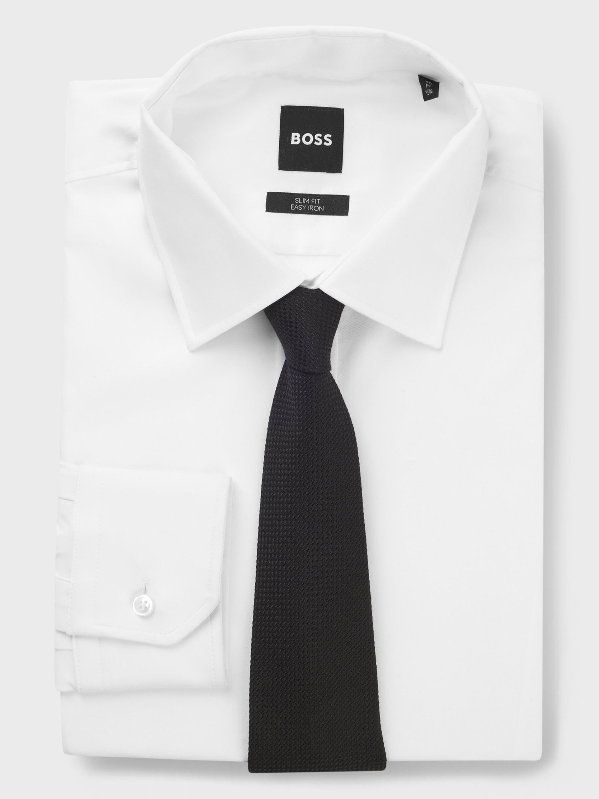 • In cotton blended with silk, this BOSS Menswear tie adds a refined touch to your favourite formals.