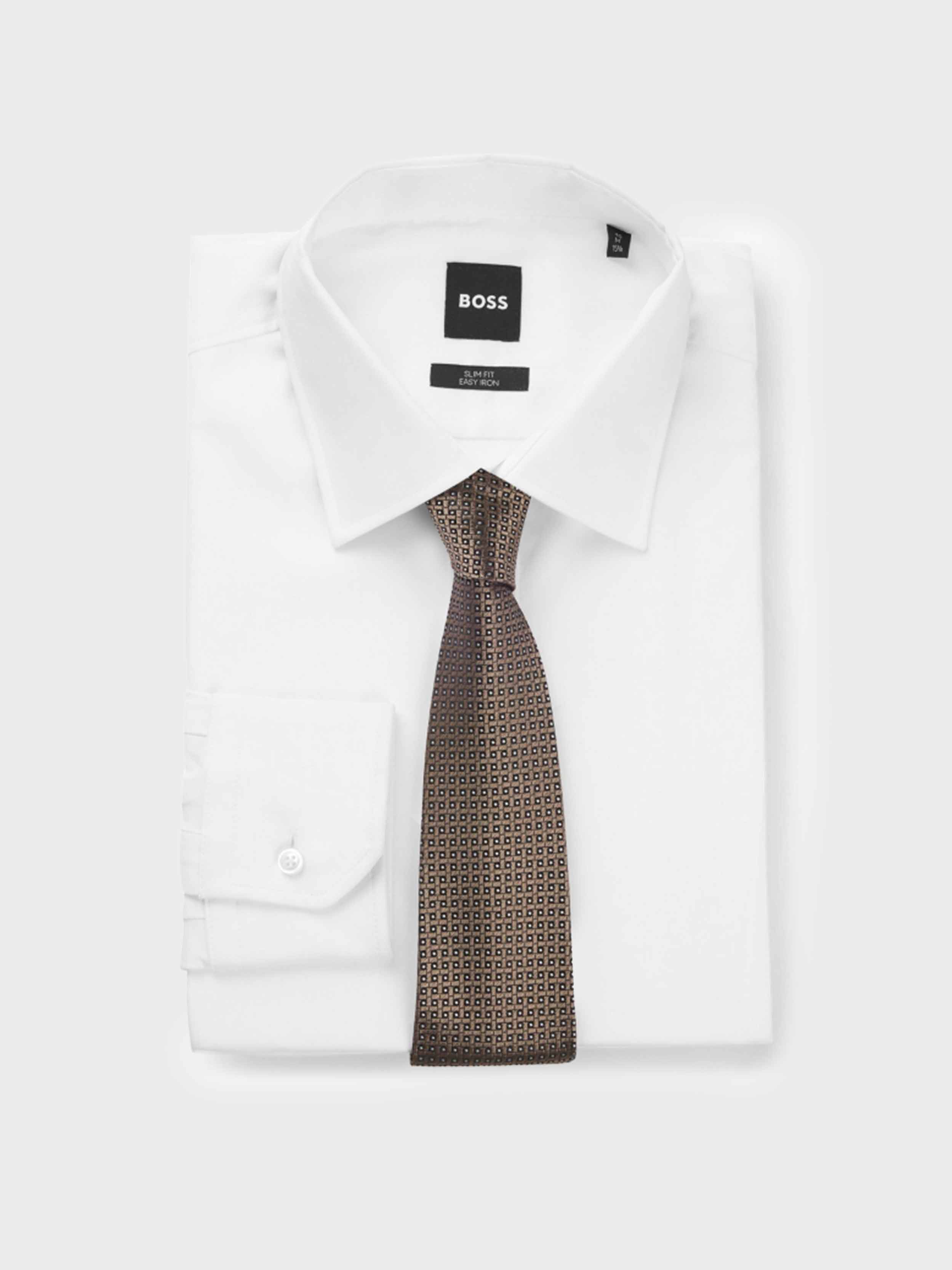• Jacquard woven with a subtle pattern, this Italian-crafted BOSS Menswear tie will round out any formal look.