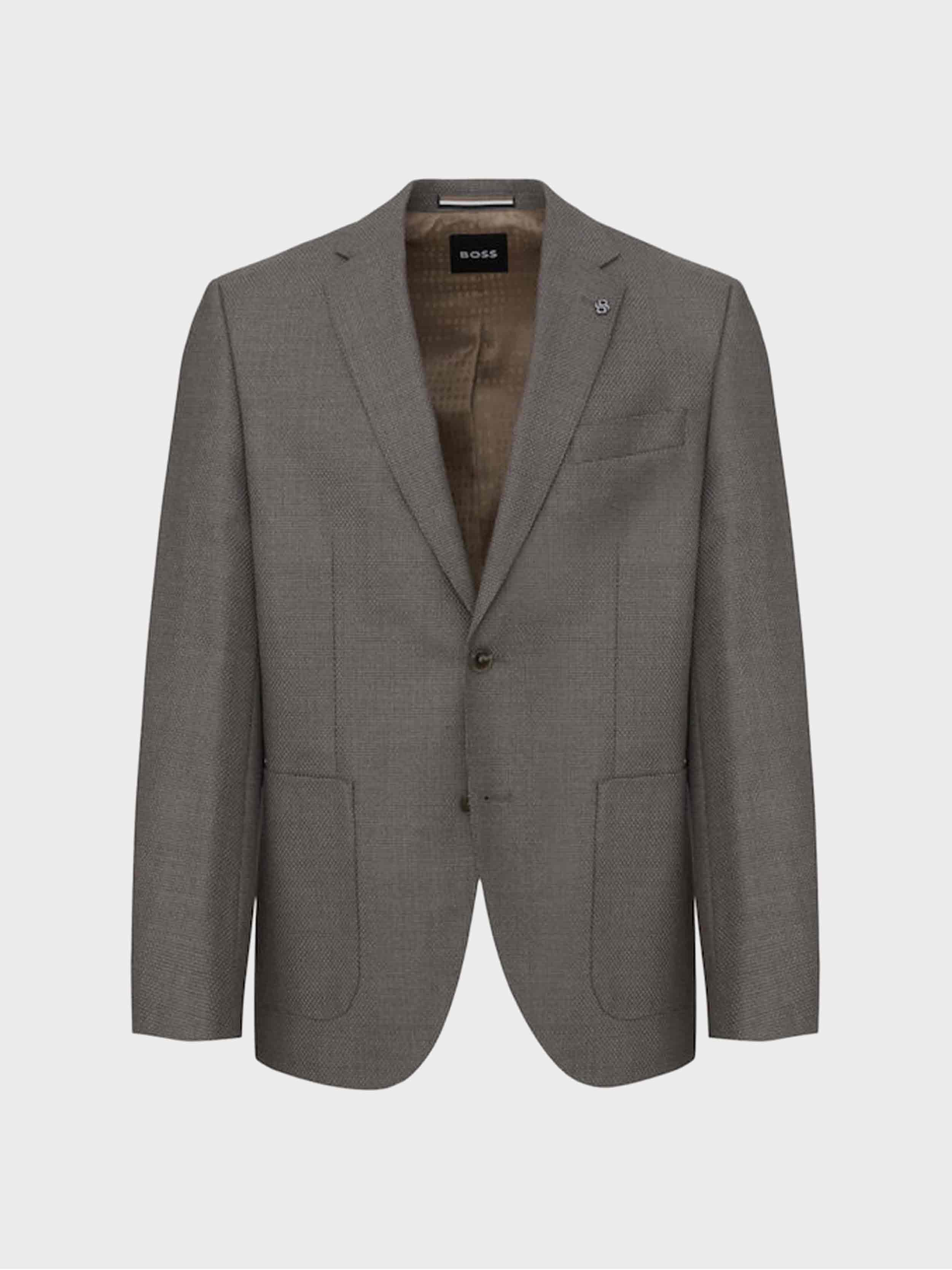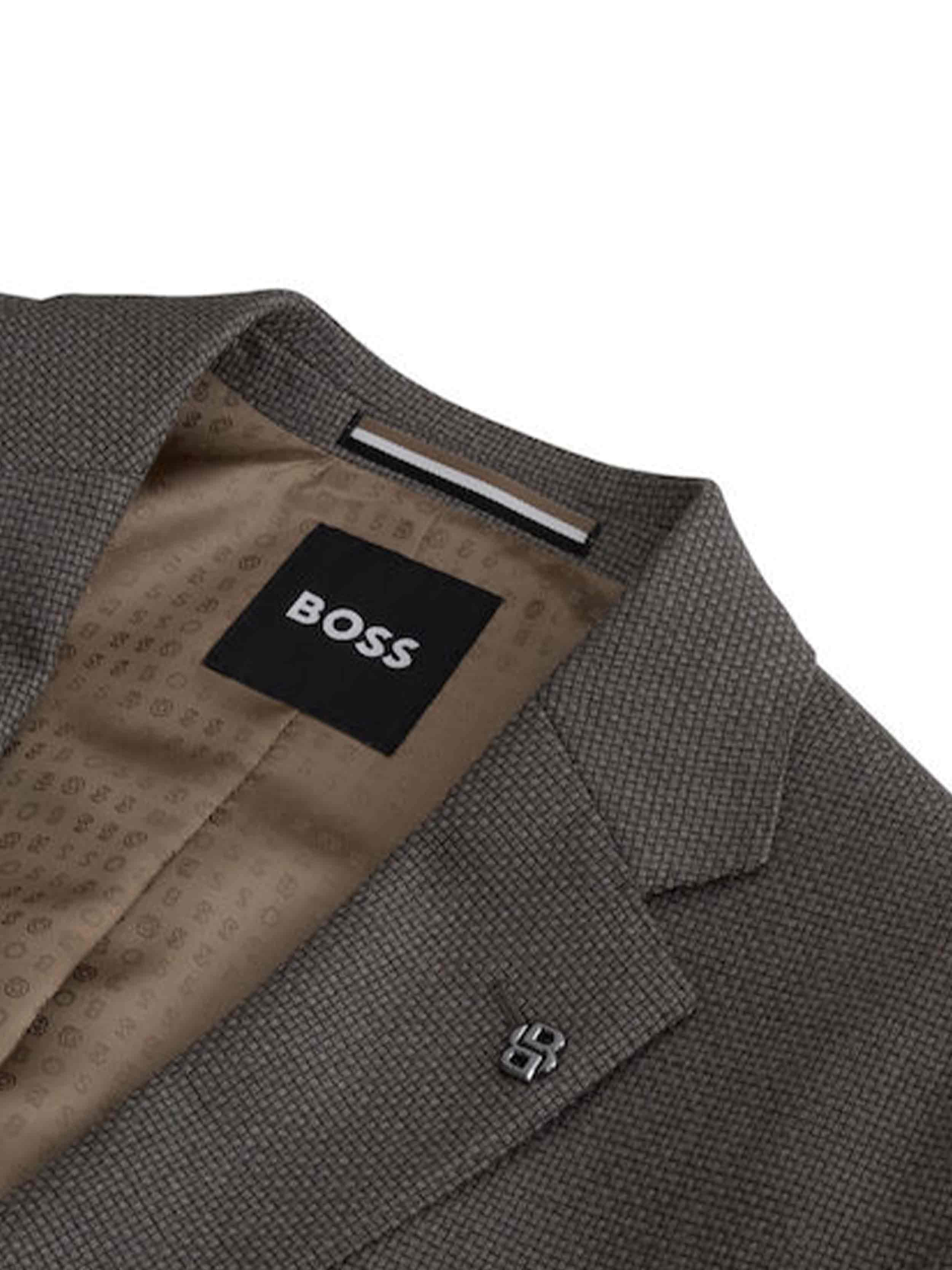 • The modern pattern and easy regular fit of this BOSS Menswear blazer will work for all manner of occasions. Cut in rich virgin wool. This product contains at least 60% better raw materials. This product is made with responsibly sourced wool. For us, responsibly sourced means mulesing free, and meeting the standards of the Five Freedoms of animal welfare.