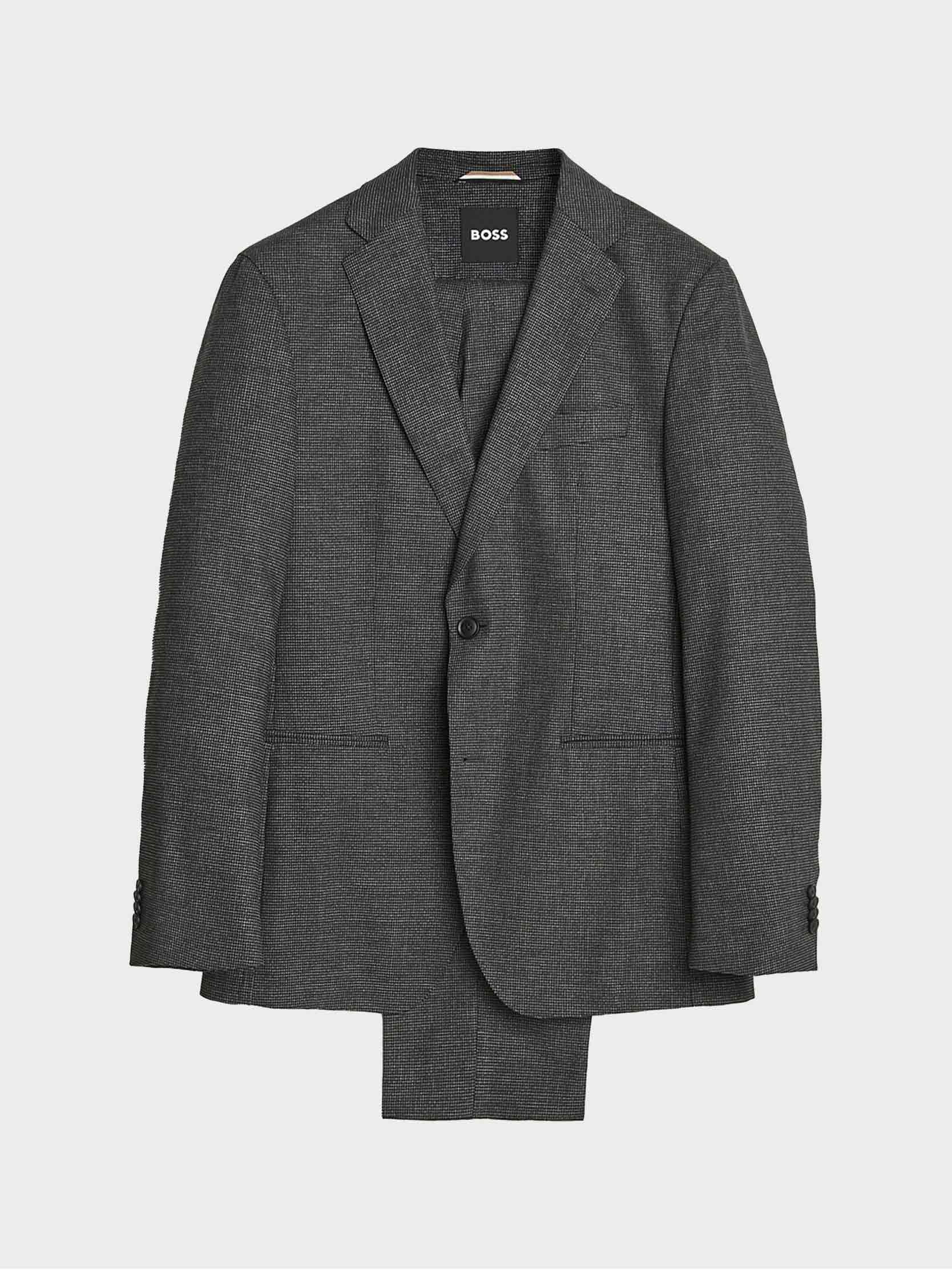 • With a light pattern, this BOSS Menswear suit presents a host of styling options. This two-piece suit is cut to a defined fit in a wool blend that contains added stretch for total freedom of movement. Create a range of looks with BOSS shirts or knitwear.