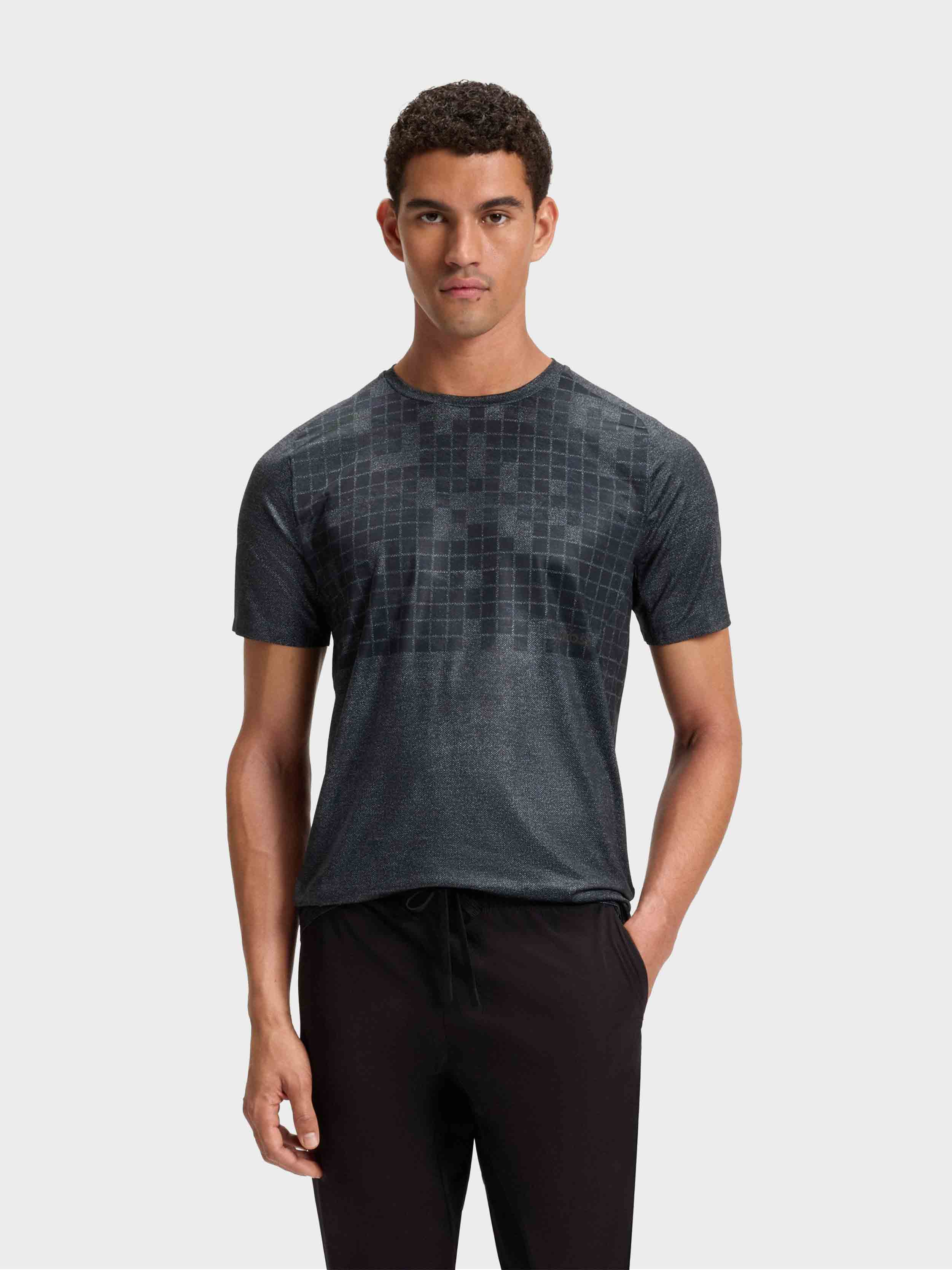 • Cut to a clean slim fit, this BOSS Menswear T-shirt is printed with a dynamic pattern for active style. Breathable stretch mesh. Crew neckline.