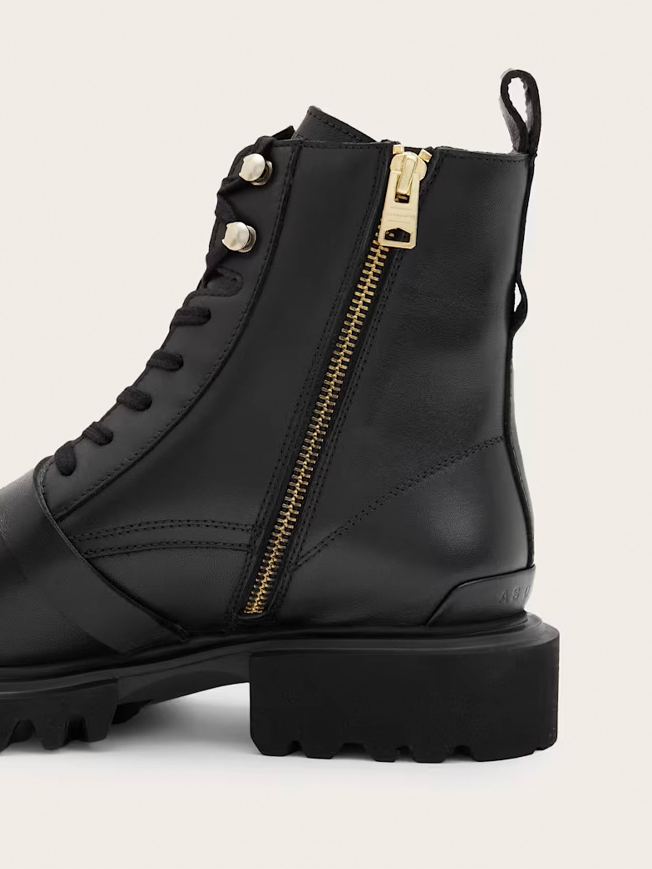 • Buckle up. These are the Tori Boots, crafted from leather with crossover laces and a side zip closure. The sole is slightly chunky and the body is detailed with our signature metal hardware.