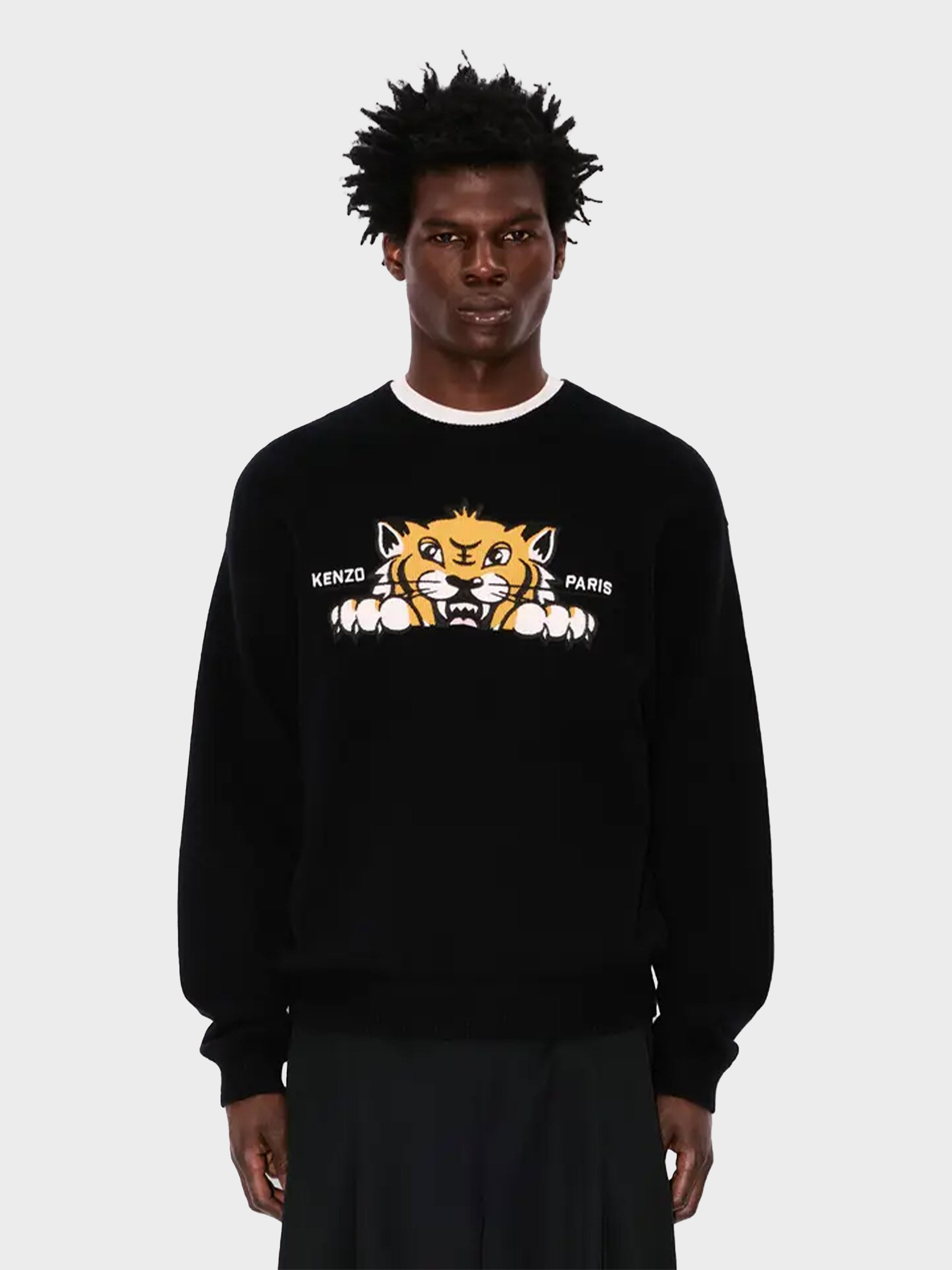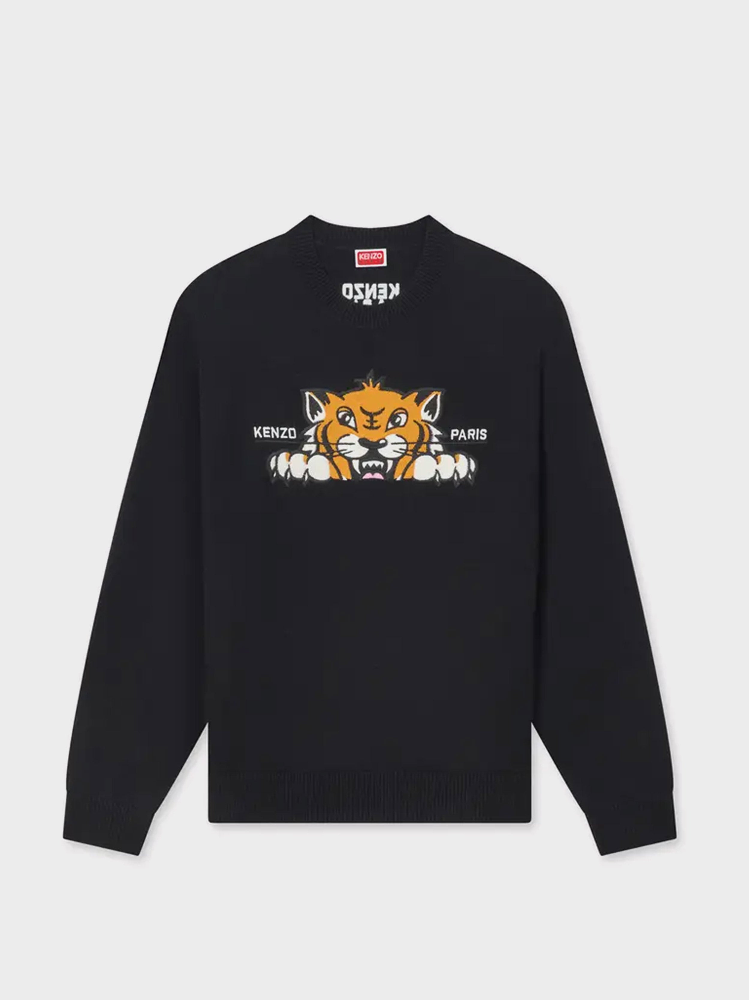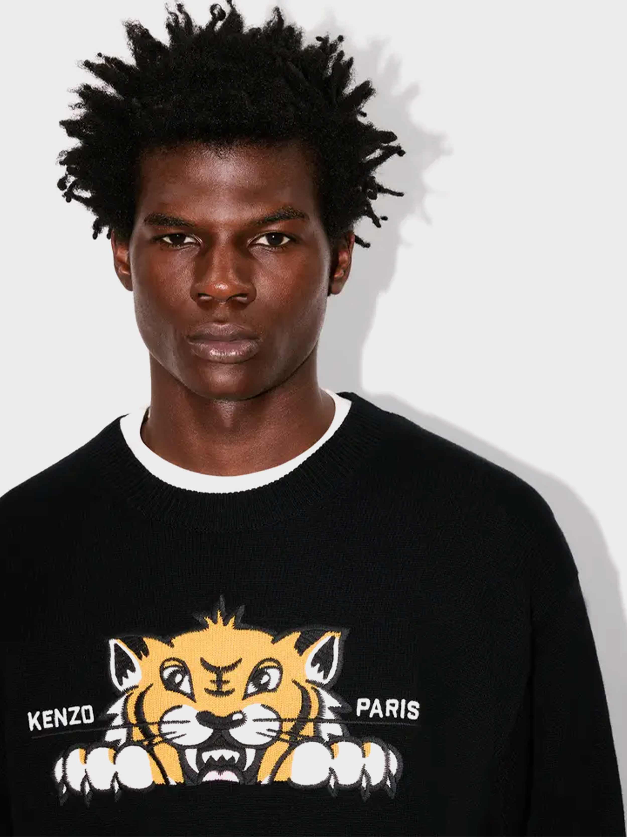 Kenzo - Men's Happy Tiger' Embroidered Jumper In Cotton And Merino Wool