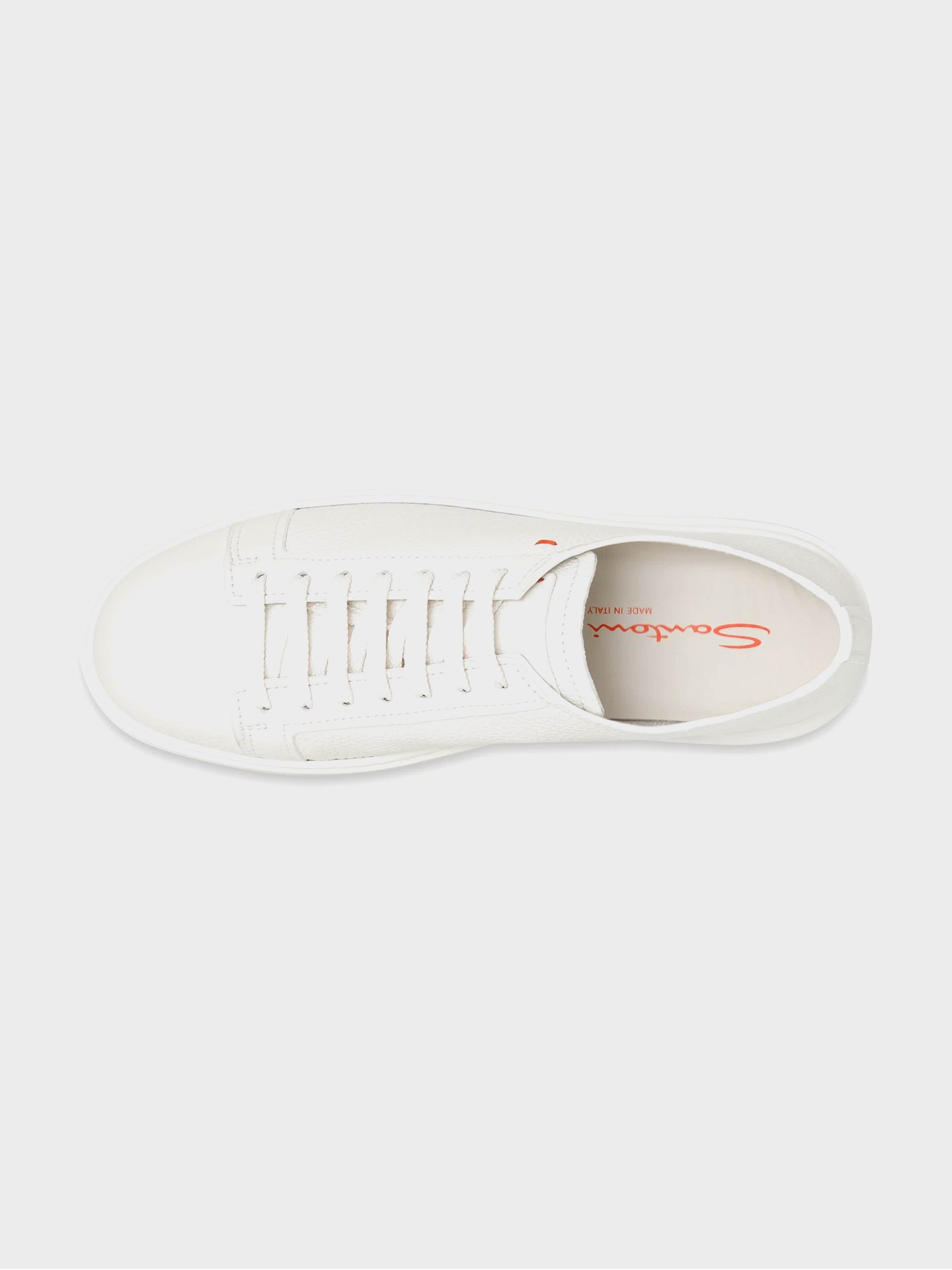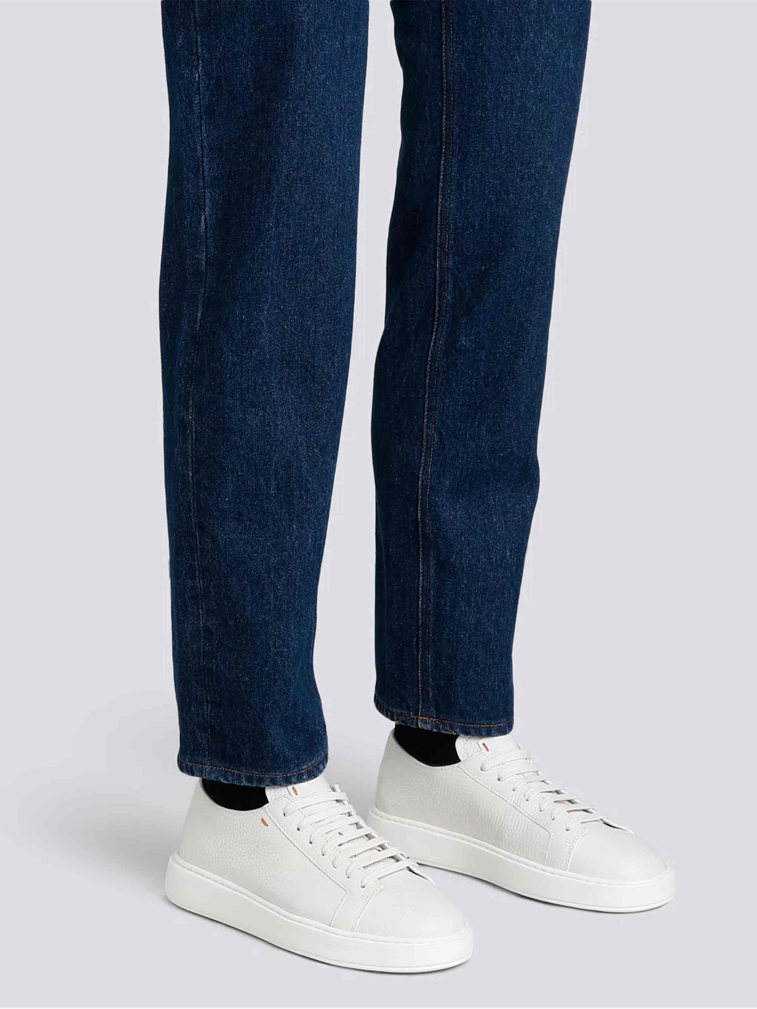 • Style meets functionality, whilst sporty influences meet luxurious attitude. This Santoni men’s sneaker is crafted from luxurious tumbled leather, embellished with a small coloured stitch in celebration of our signature orange tone. Its wide-fit silhouette with round toe and flexible cupsole ensure maximum comfort from morning to night.