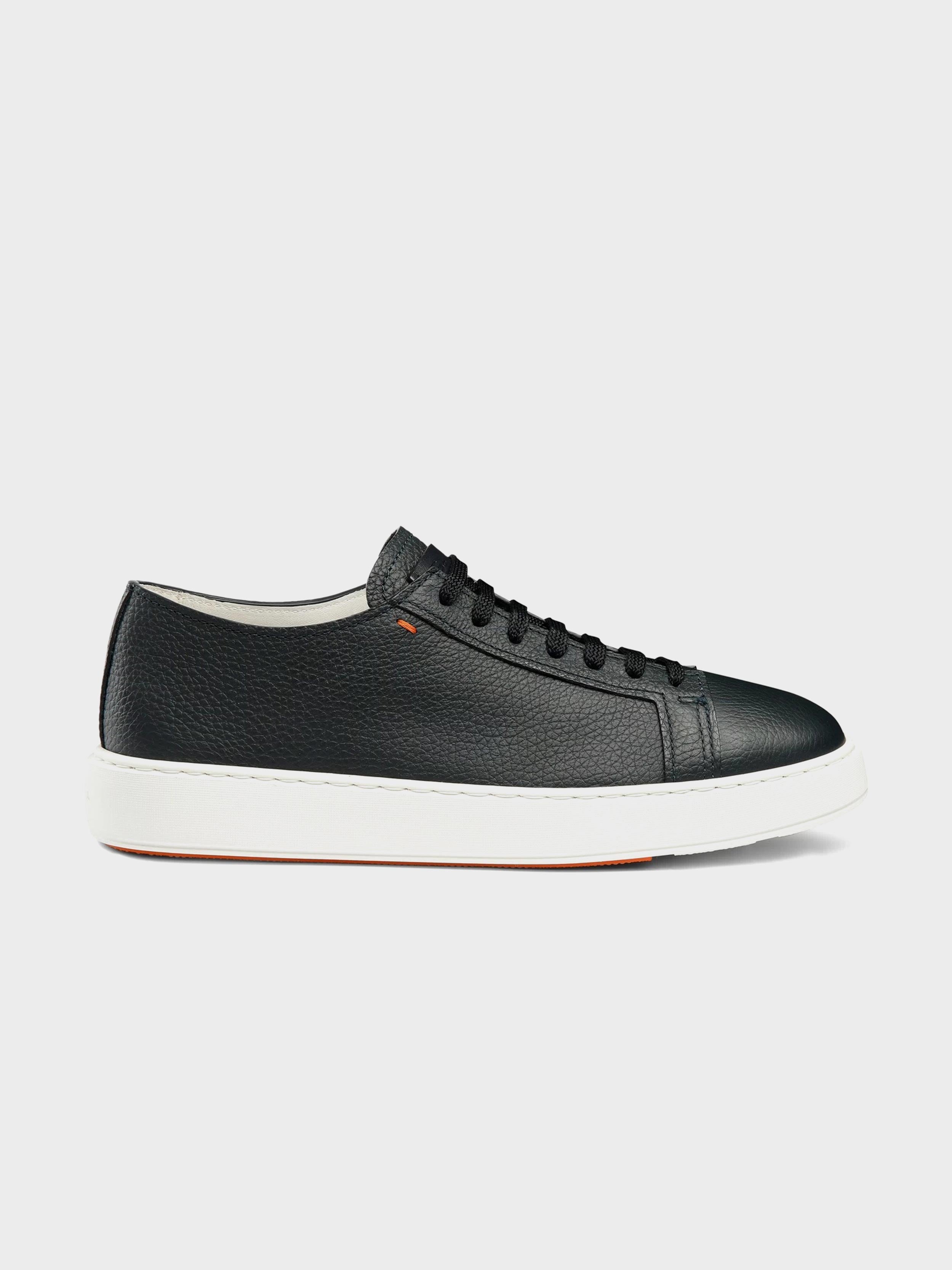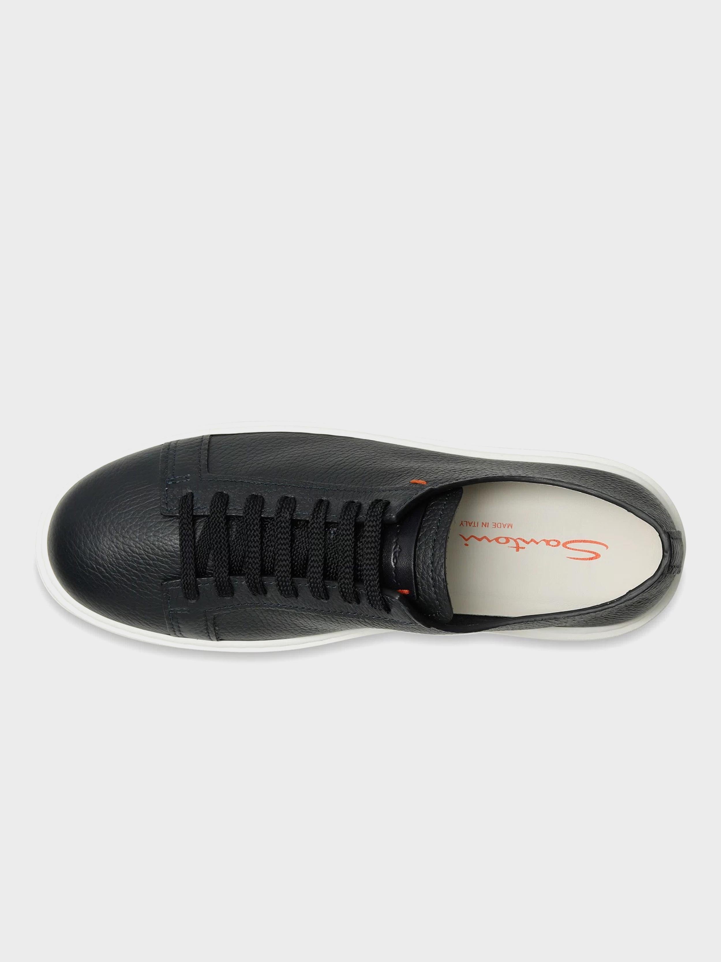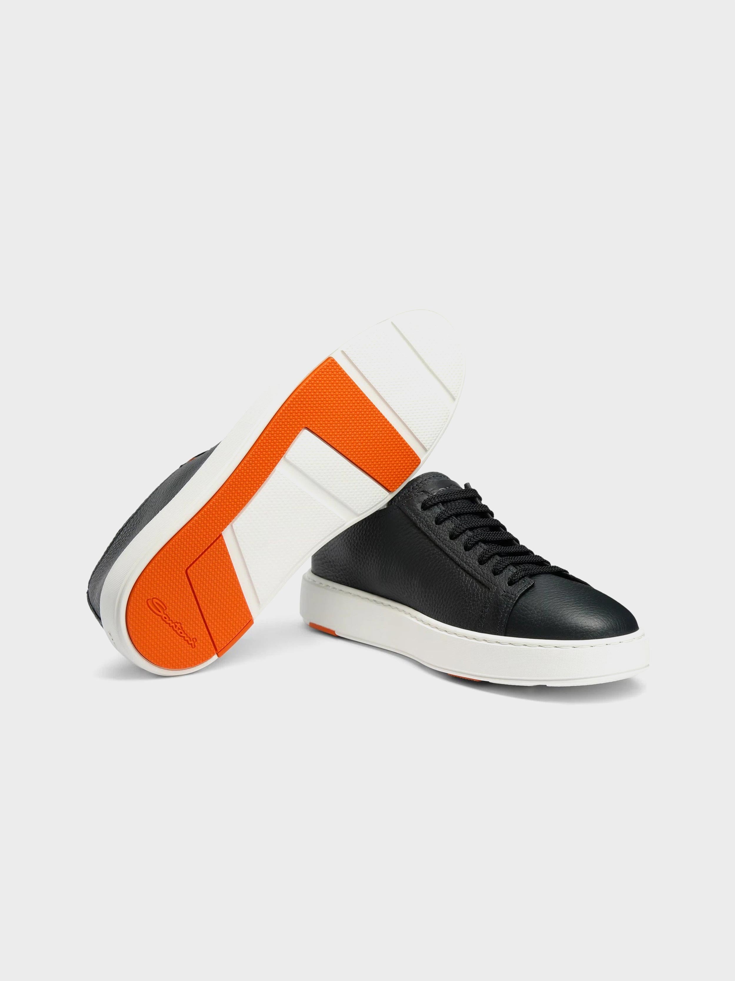 • Style meets functionality, whilst sporty influences meet luxurious attitude. This Santoni men’s sneaker is crafted from luxurious tumbled leather, embellished with a small coloured stitch in celebration of our signature orange tone. Its wide-fit silhouette with round toe and flexible cupsole ensure maximum comfort from morning to night.