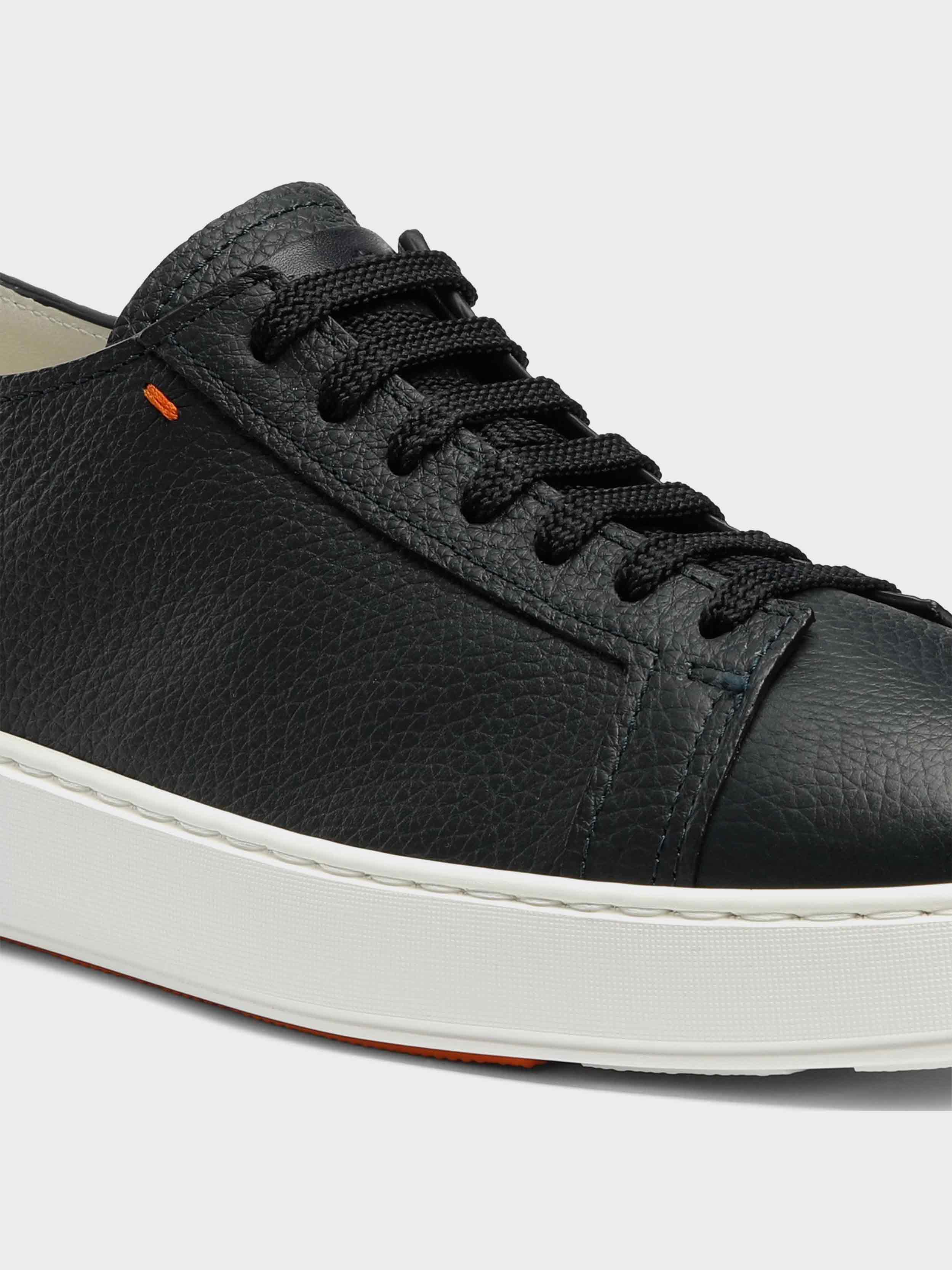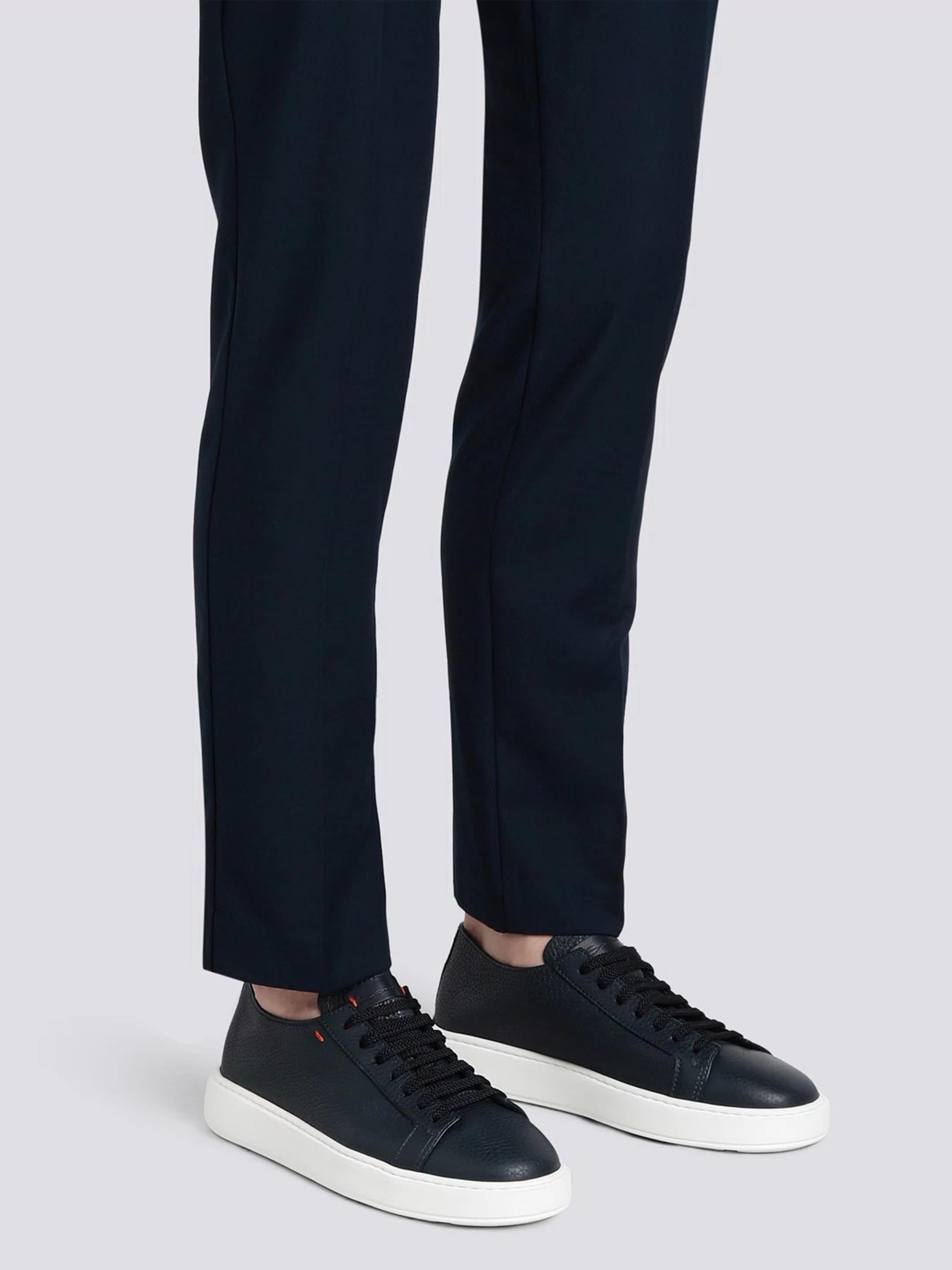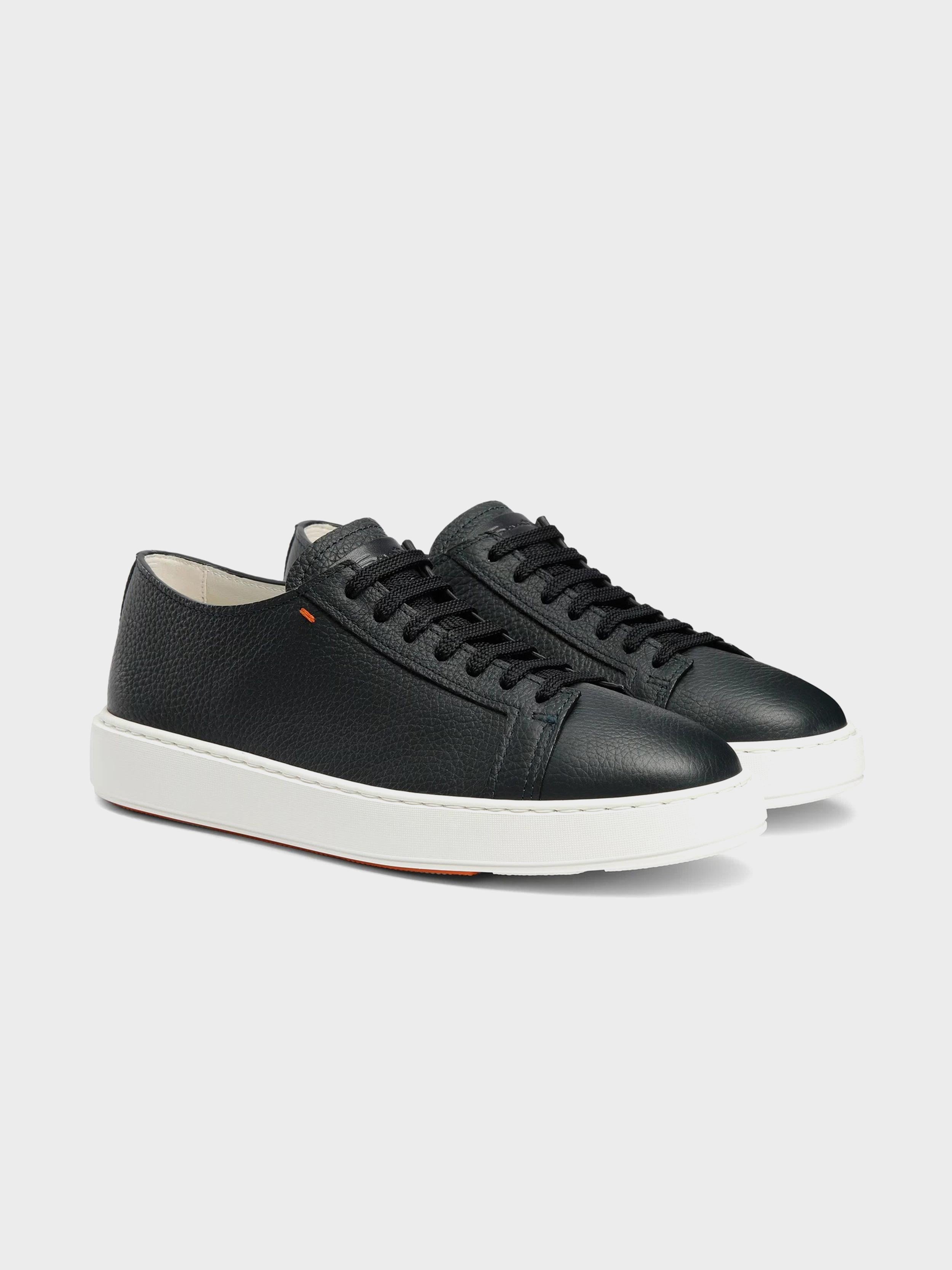 • Style meets functionality, whilst sporty influences meet luxurious attitude. This Santoni men’s sneaker is crafted from luxurious tumbled leather, embellished with a small coloured stitch in celebration of our signature orange tone. Its wide-fit silhouette with round toe and flexible cupsole ensure maximum comfort from morning to night.