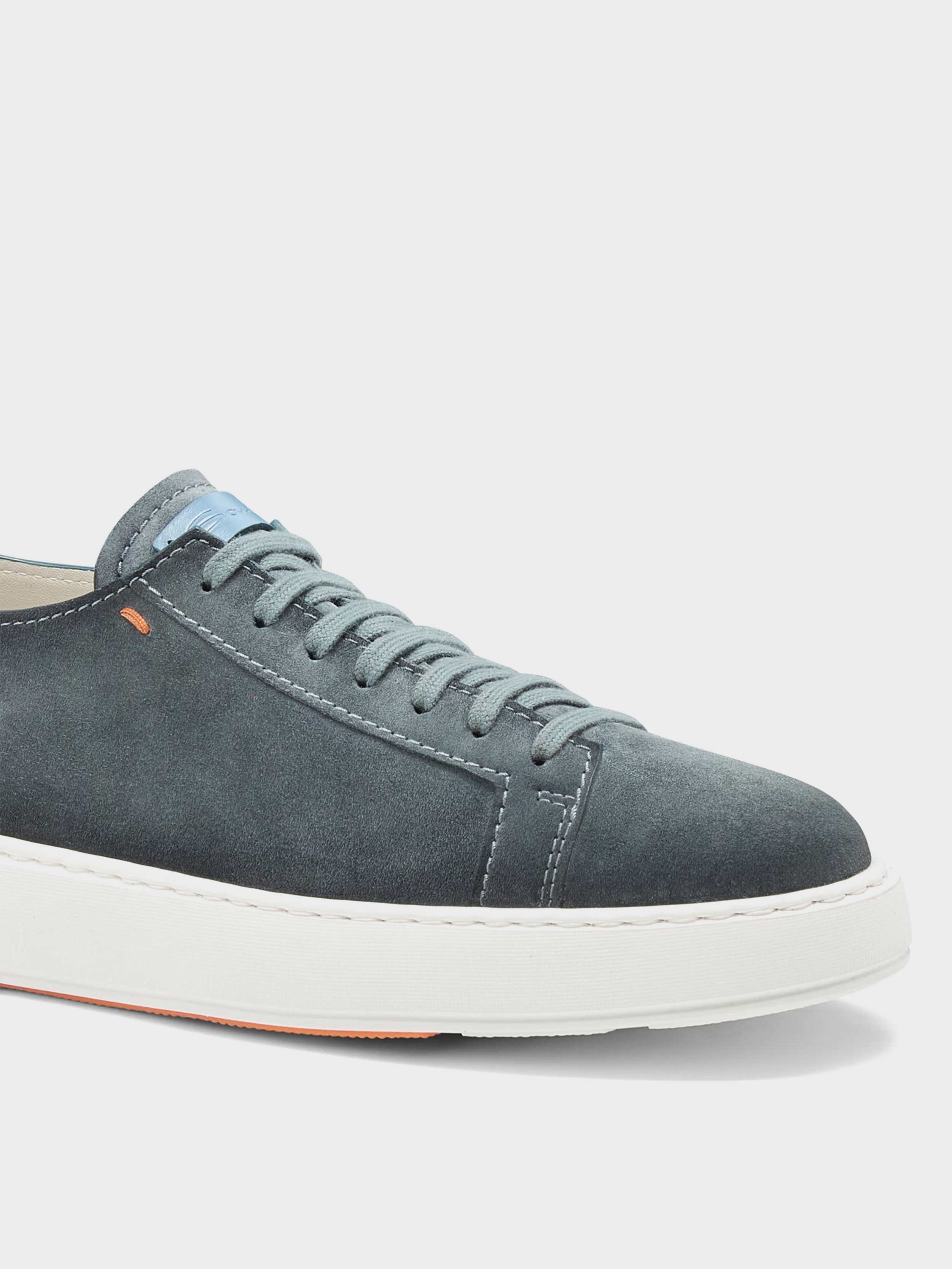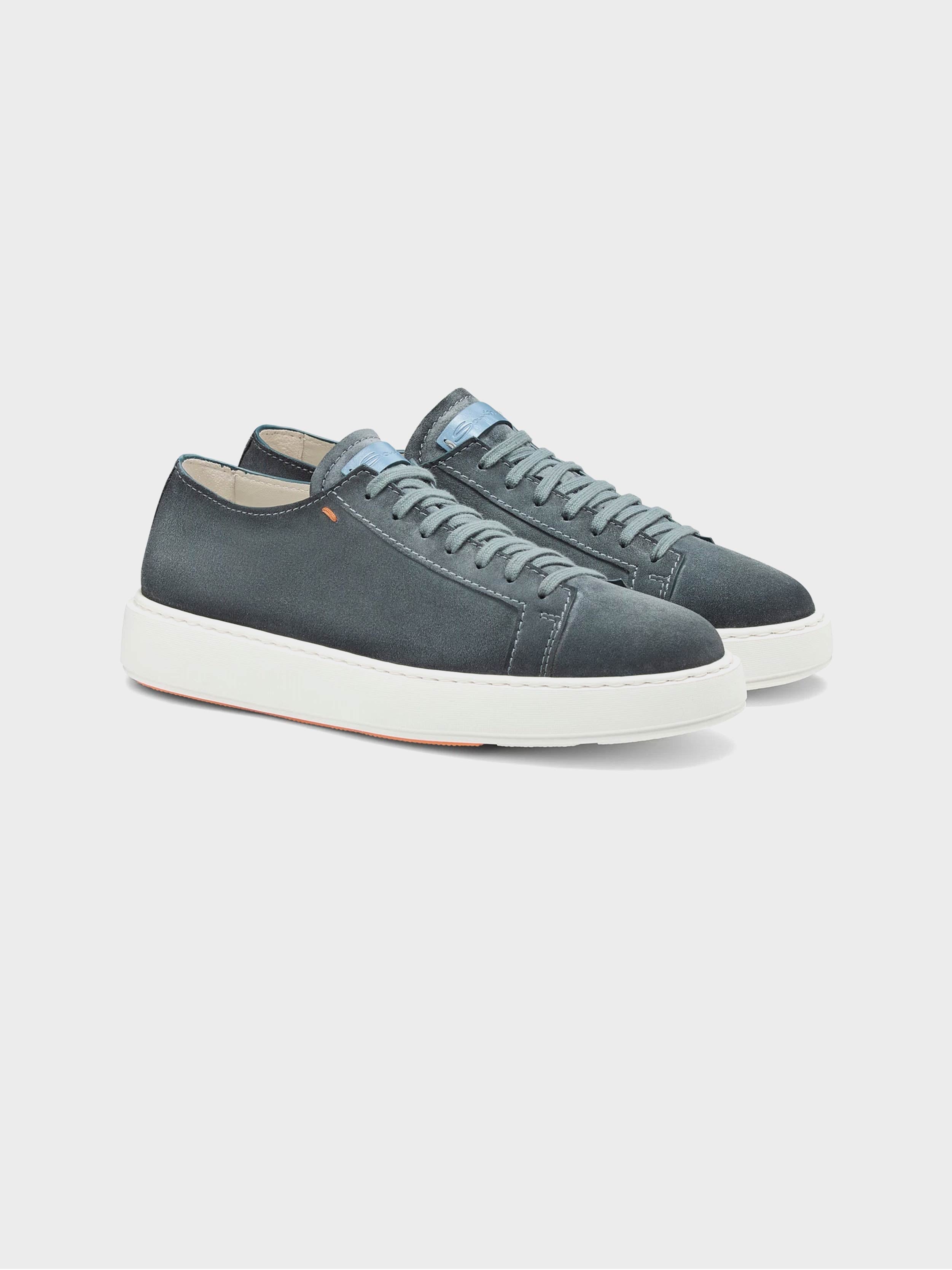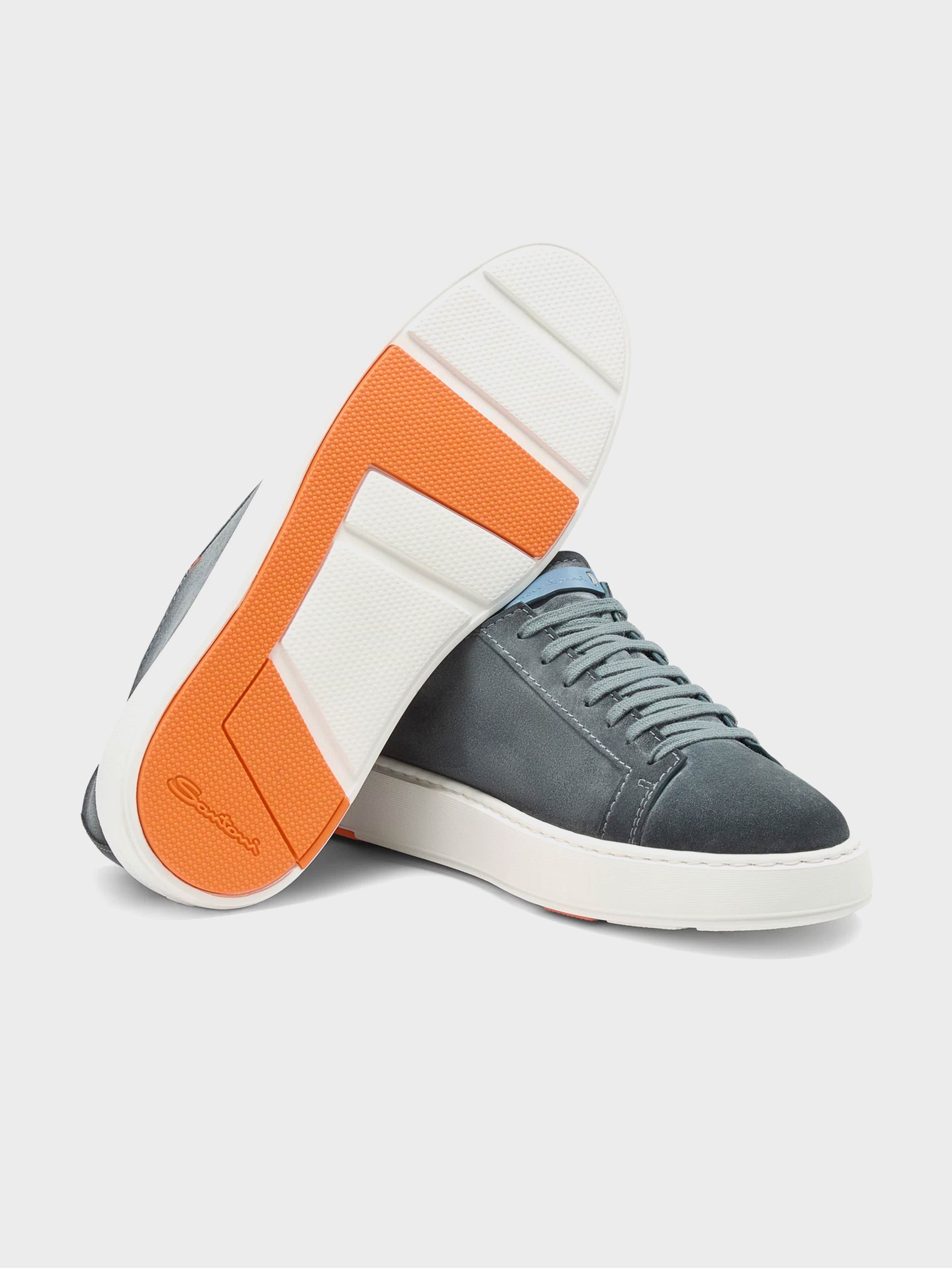 • Crafted from suede and enriched with our hallmark artisanal “velatura” color-grading technique, this men’s sneaker combines exquisite detail with modern practicality. Bringing refined elegance to casual ensembles, it features a bright orange detail on the tread to reveal a radiant flash of classic Arancio Santoni with every stride.