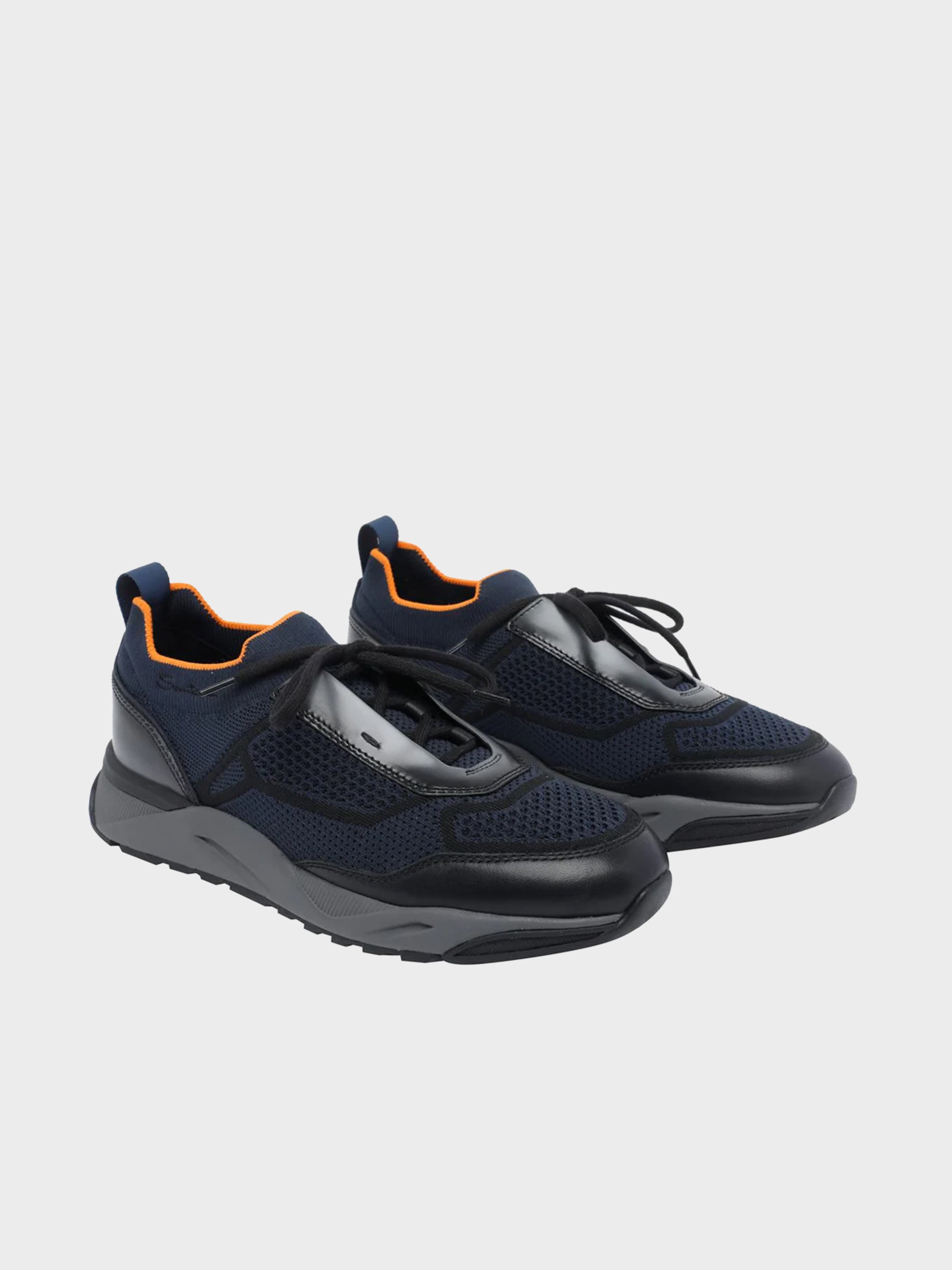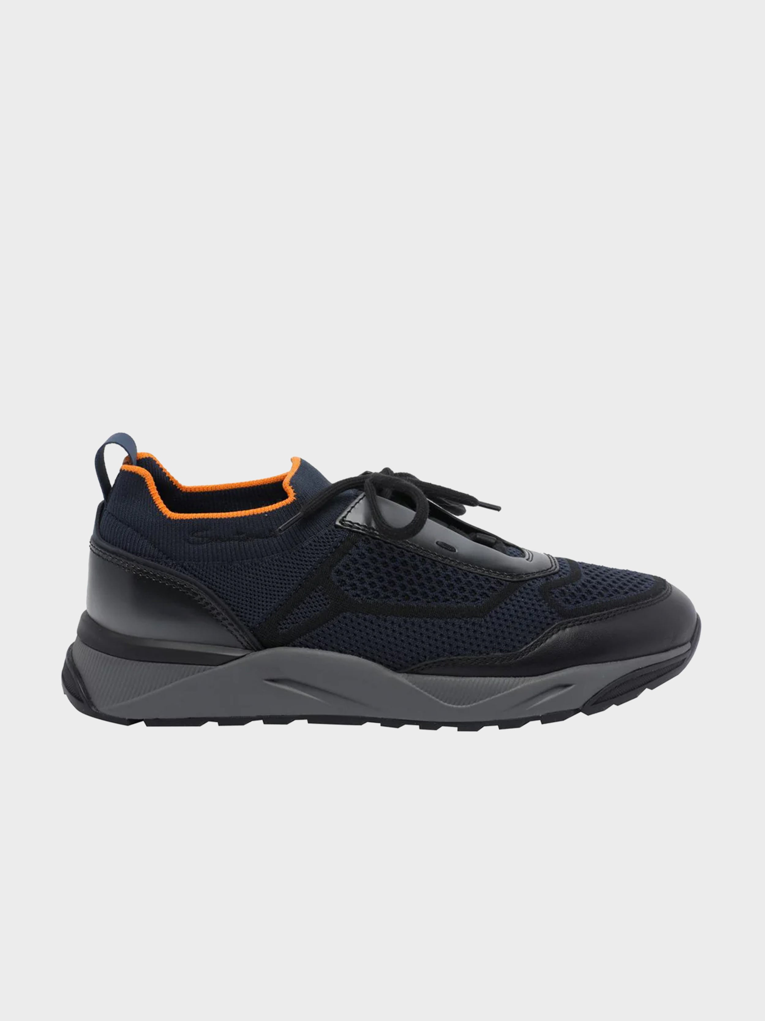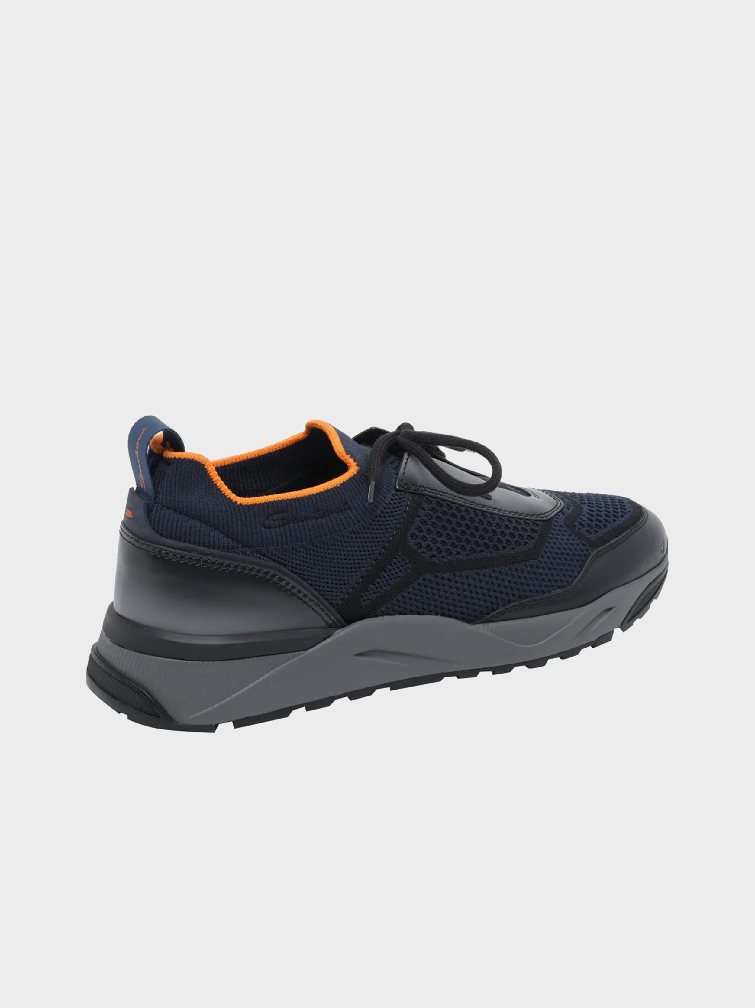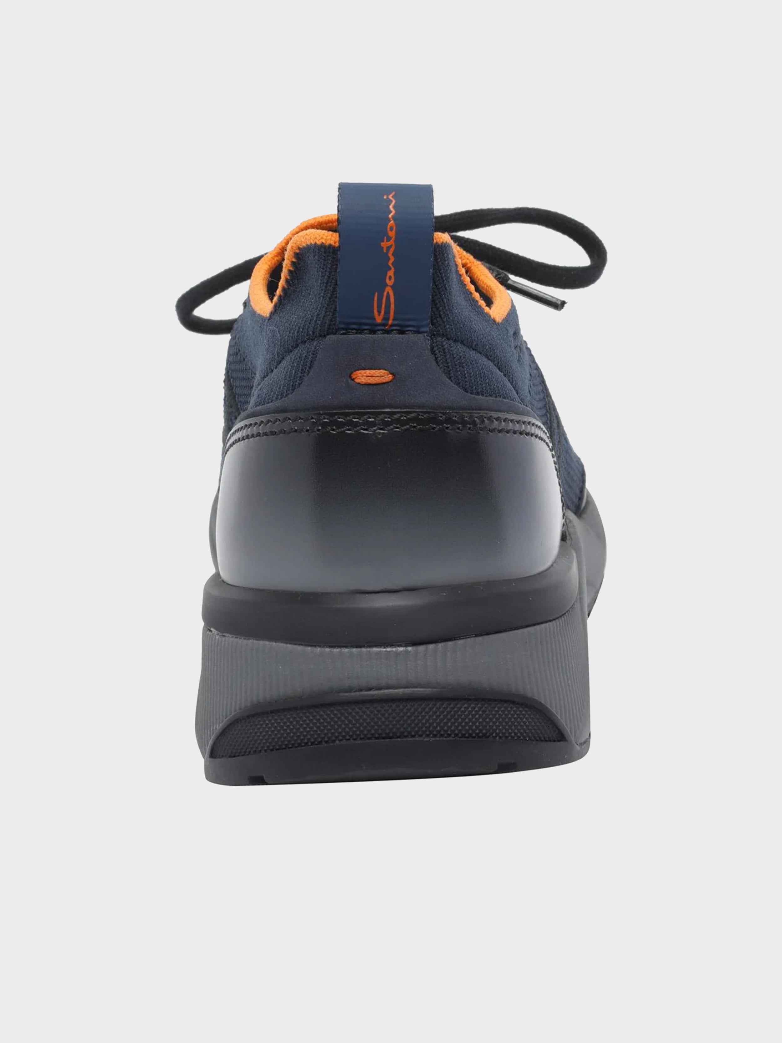 • Santoni Blue Groove Sneakers, Round Toe, Fabric And Leather Upper