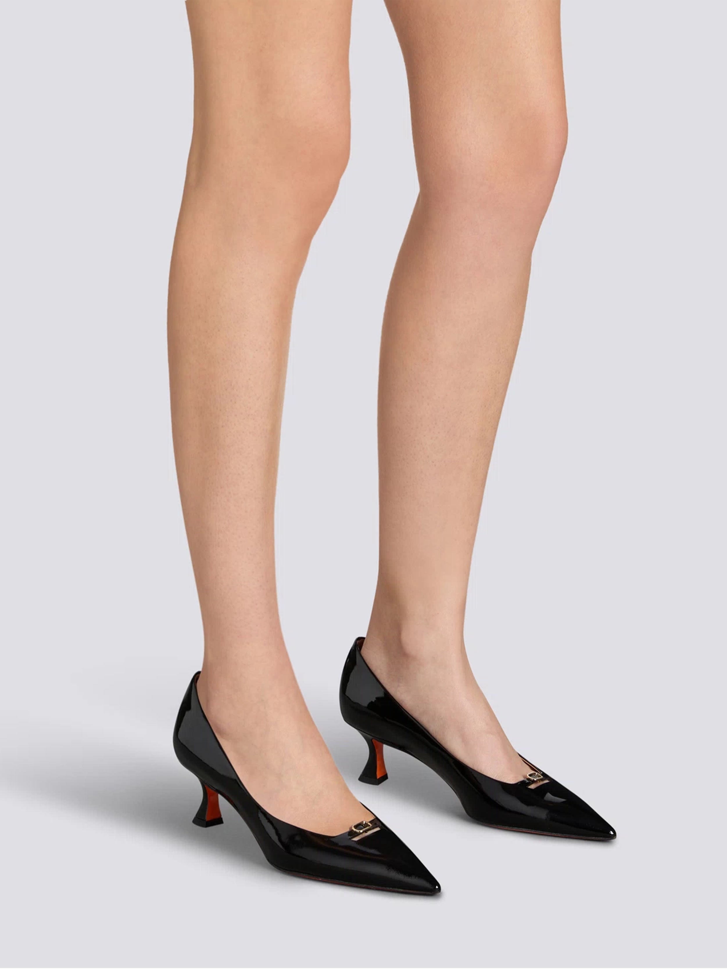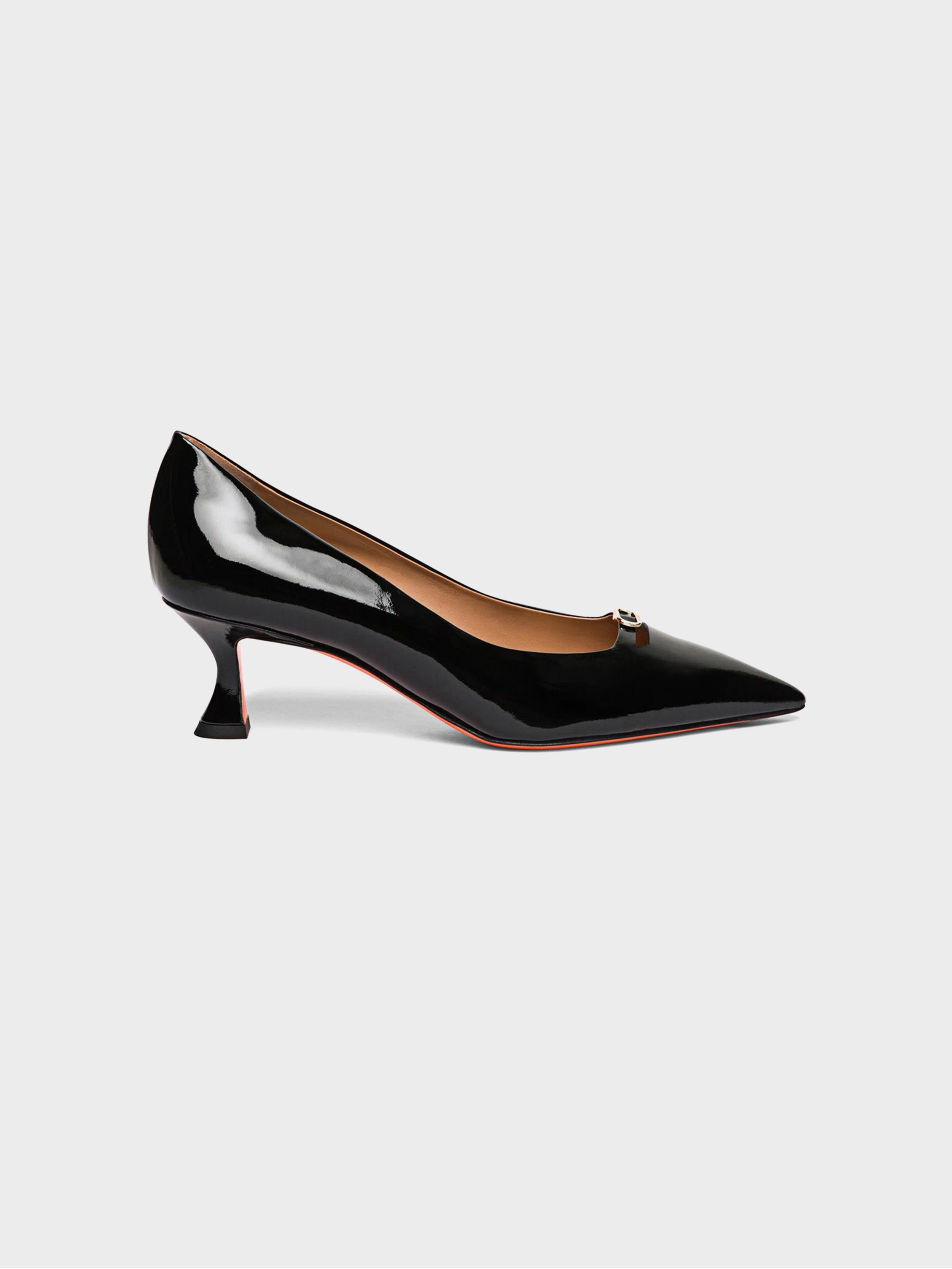• Santoni - Women's Black Patent Leather Mid Heel Pump