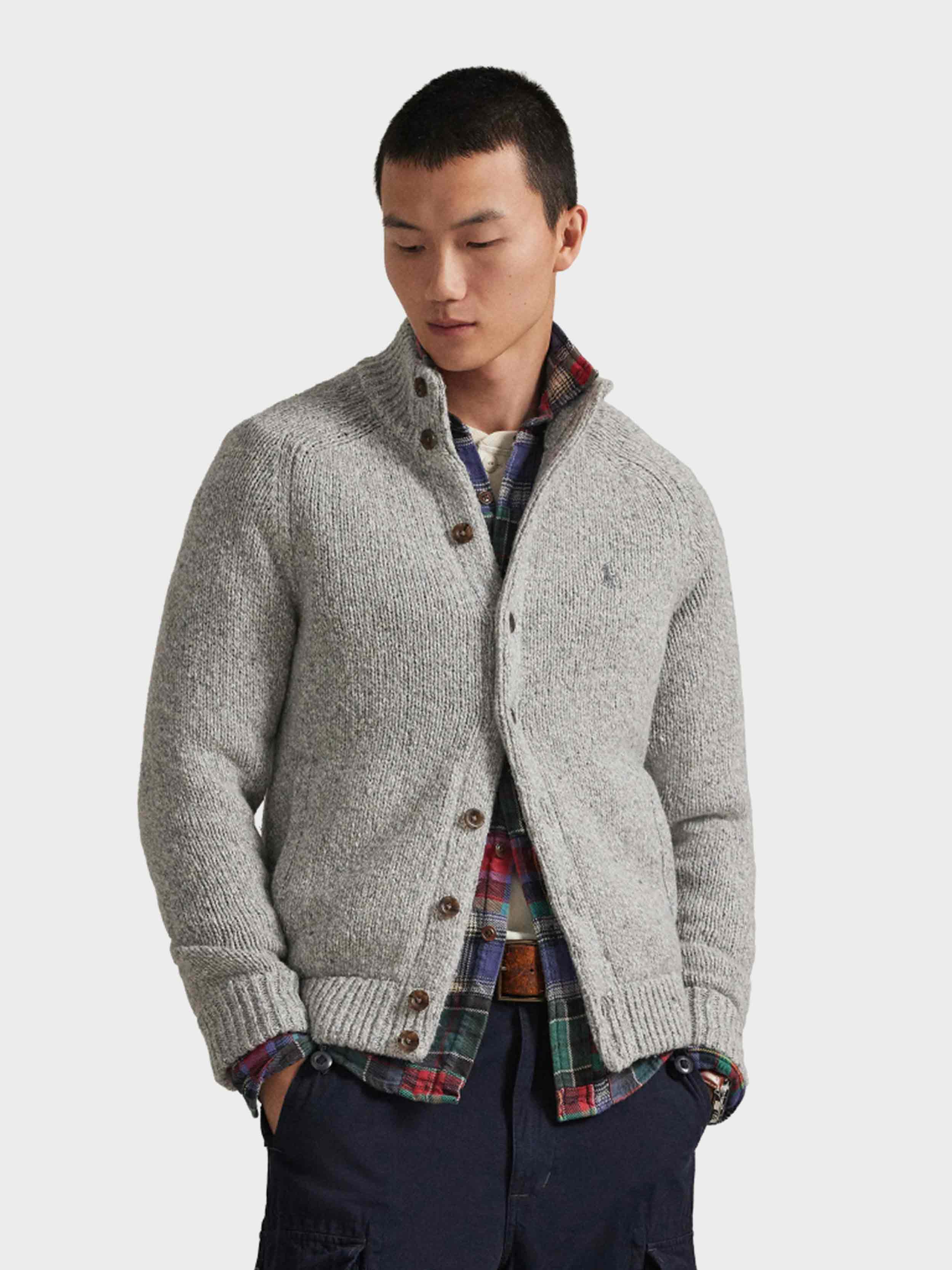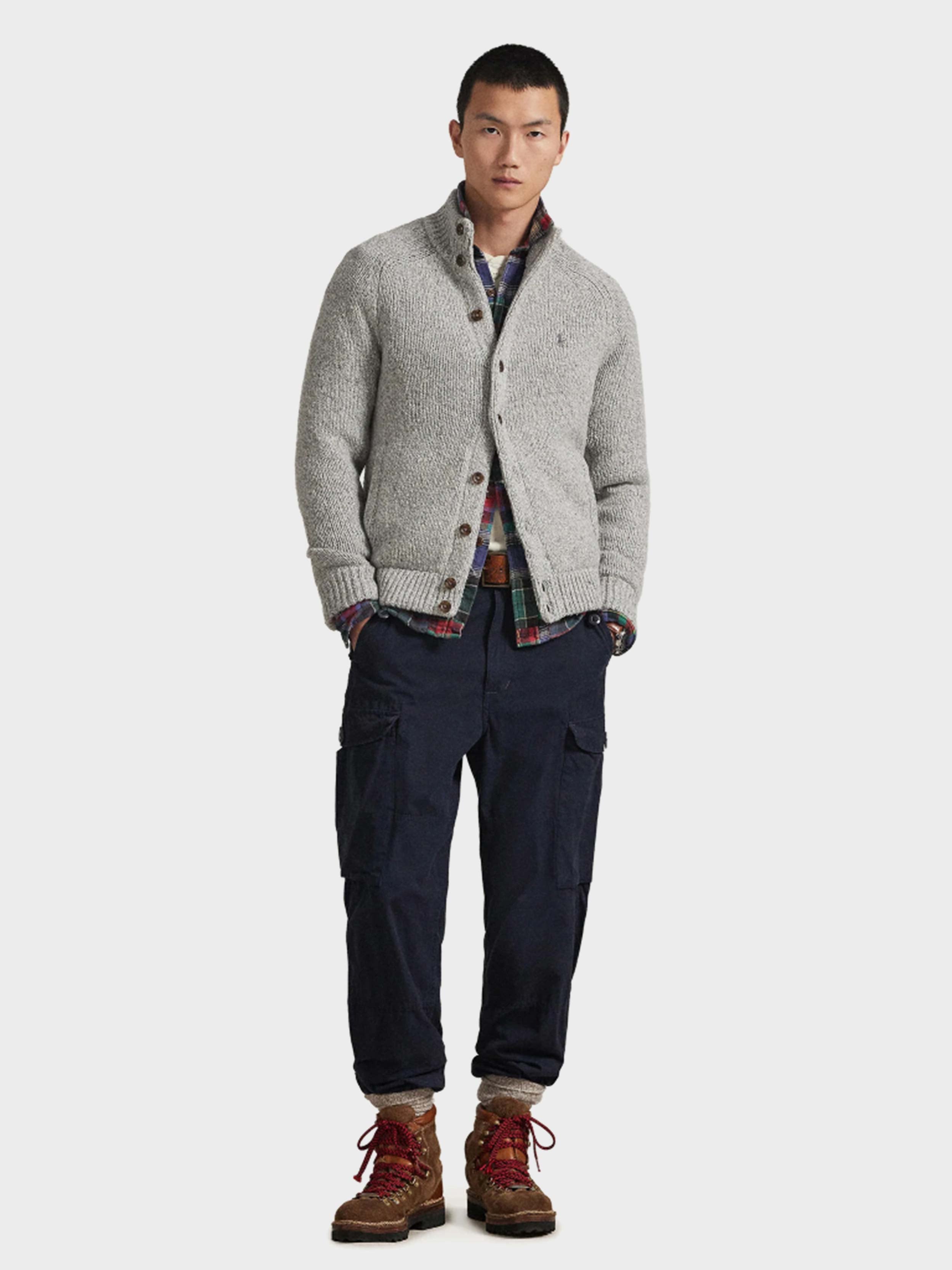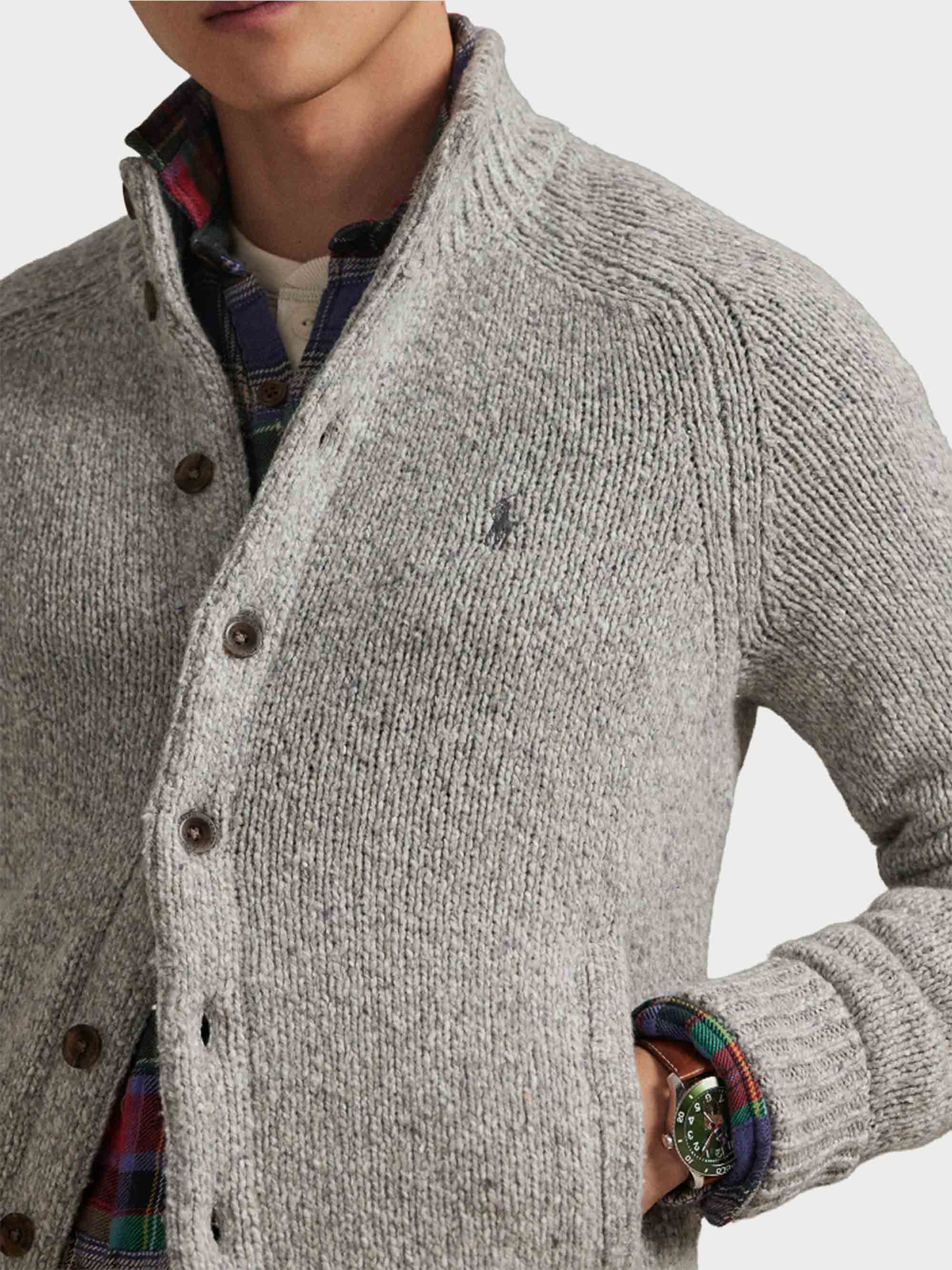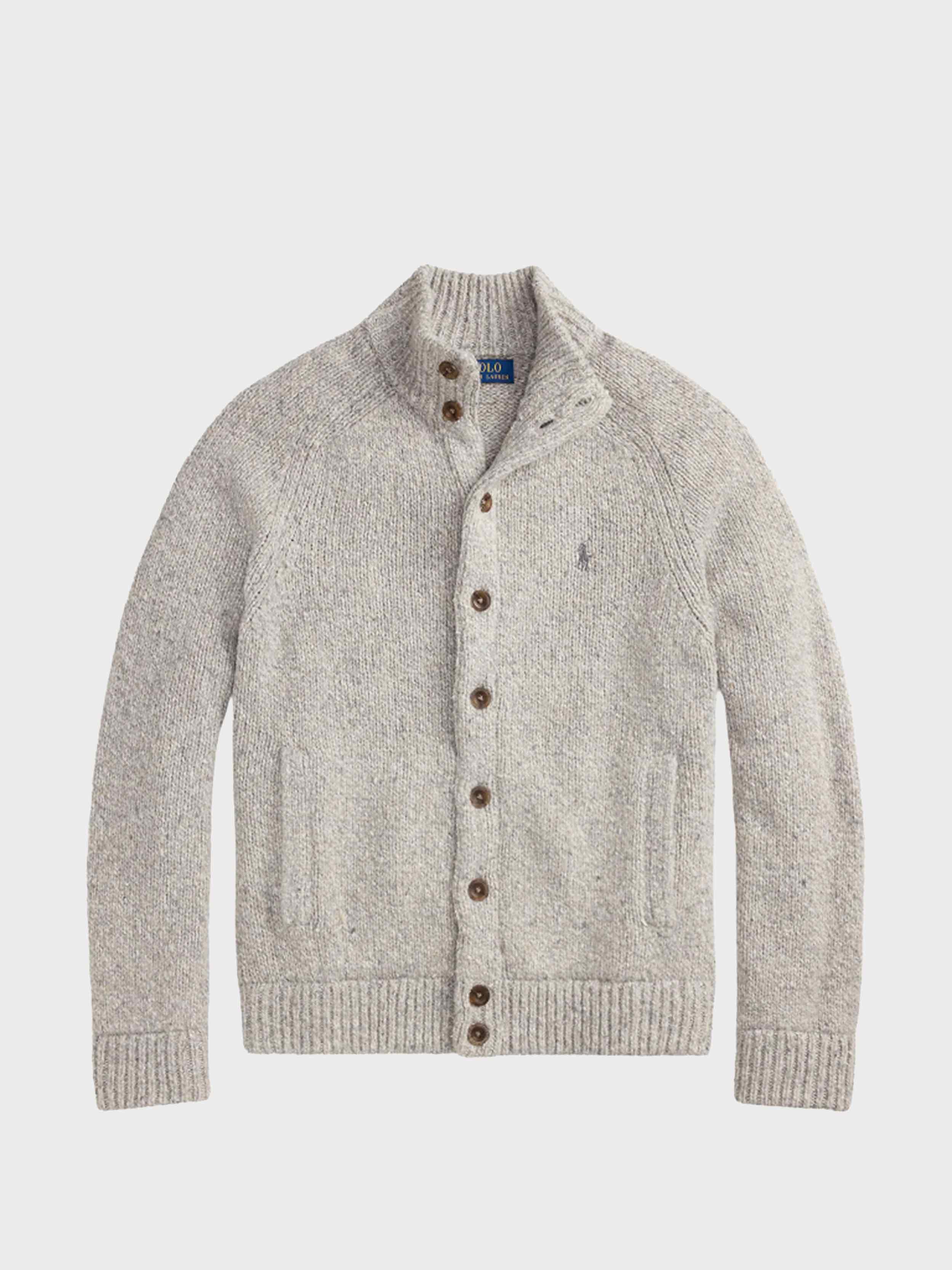 • This chunky-knit cardigan is made from wool-blend yarn and finished with custom-developed buttons for signature Polo style.