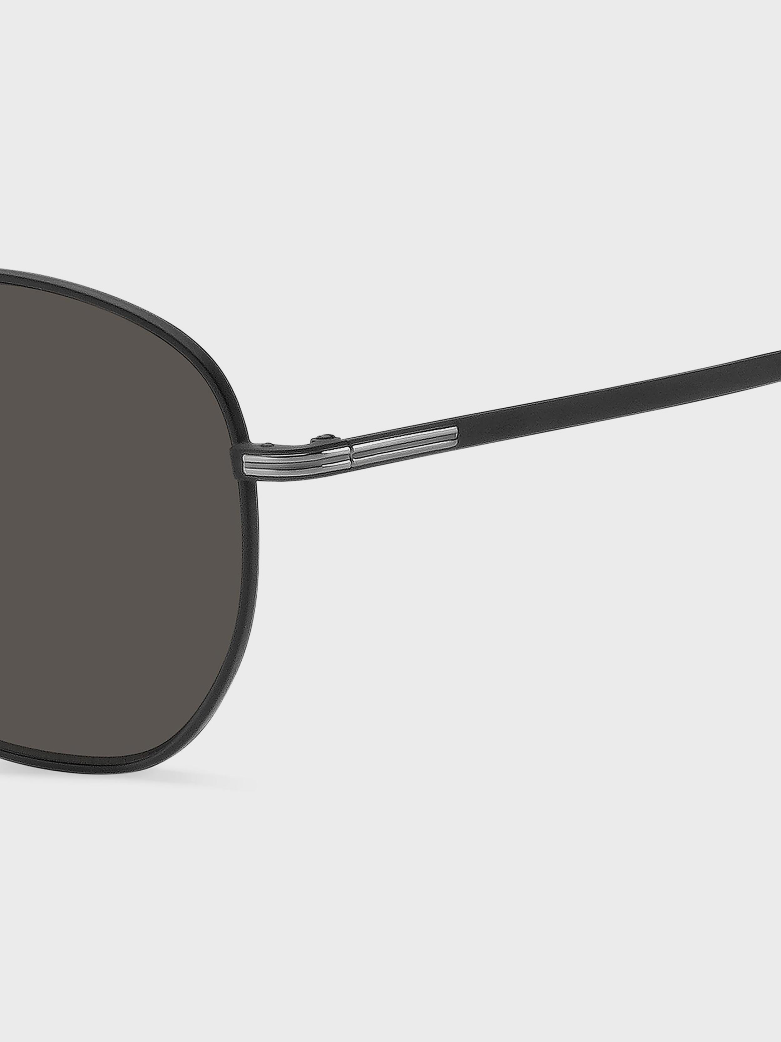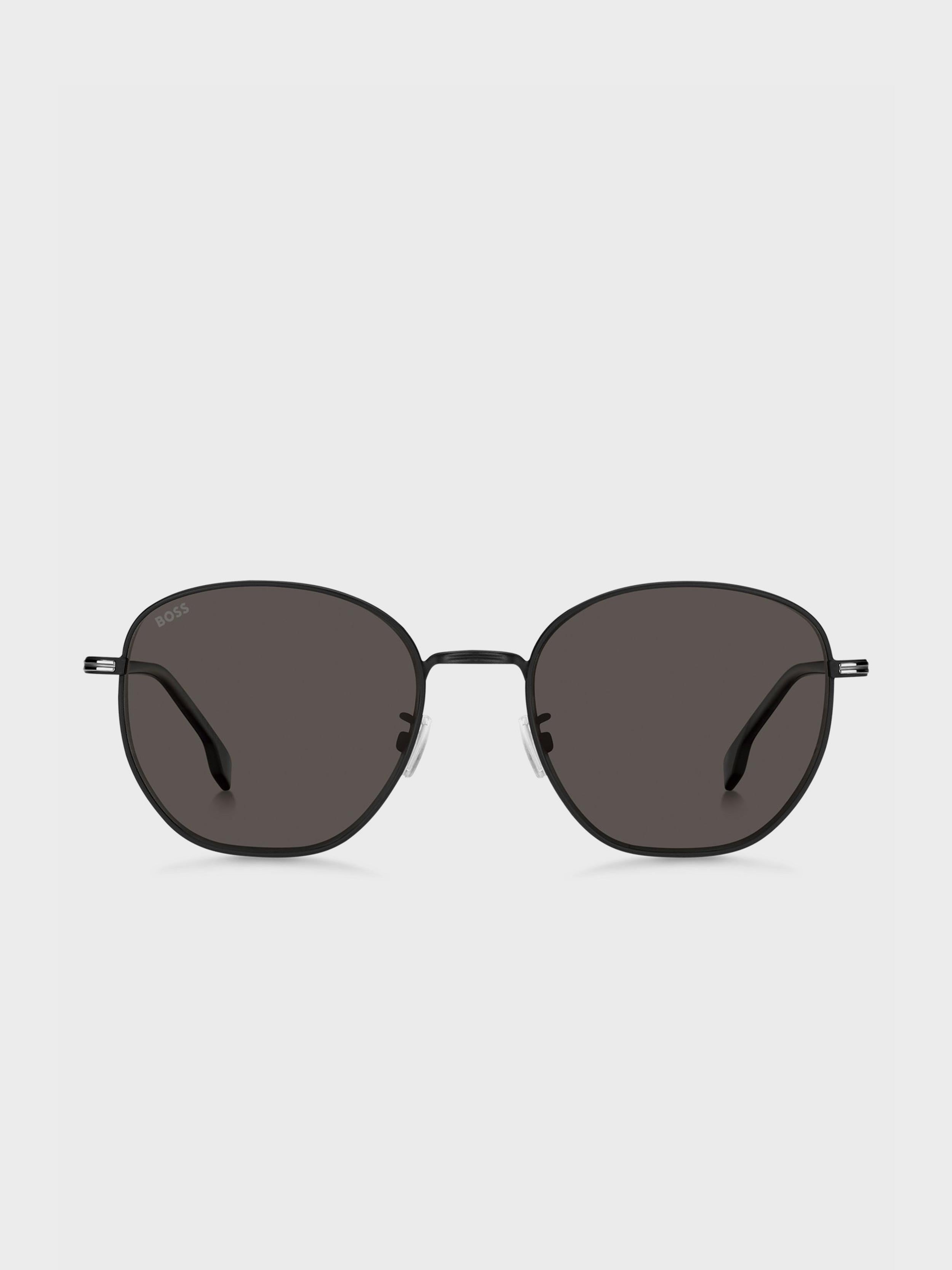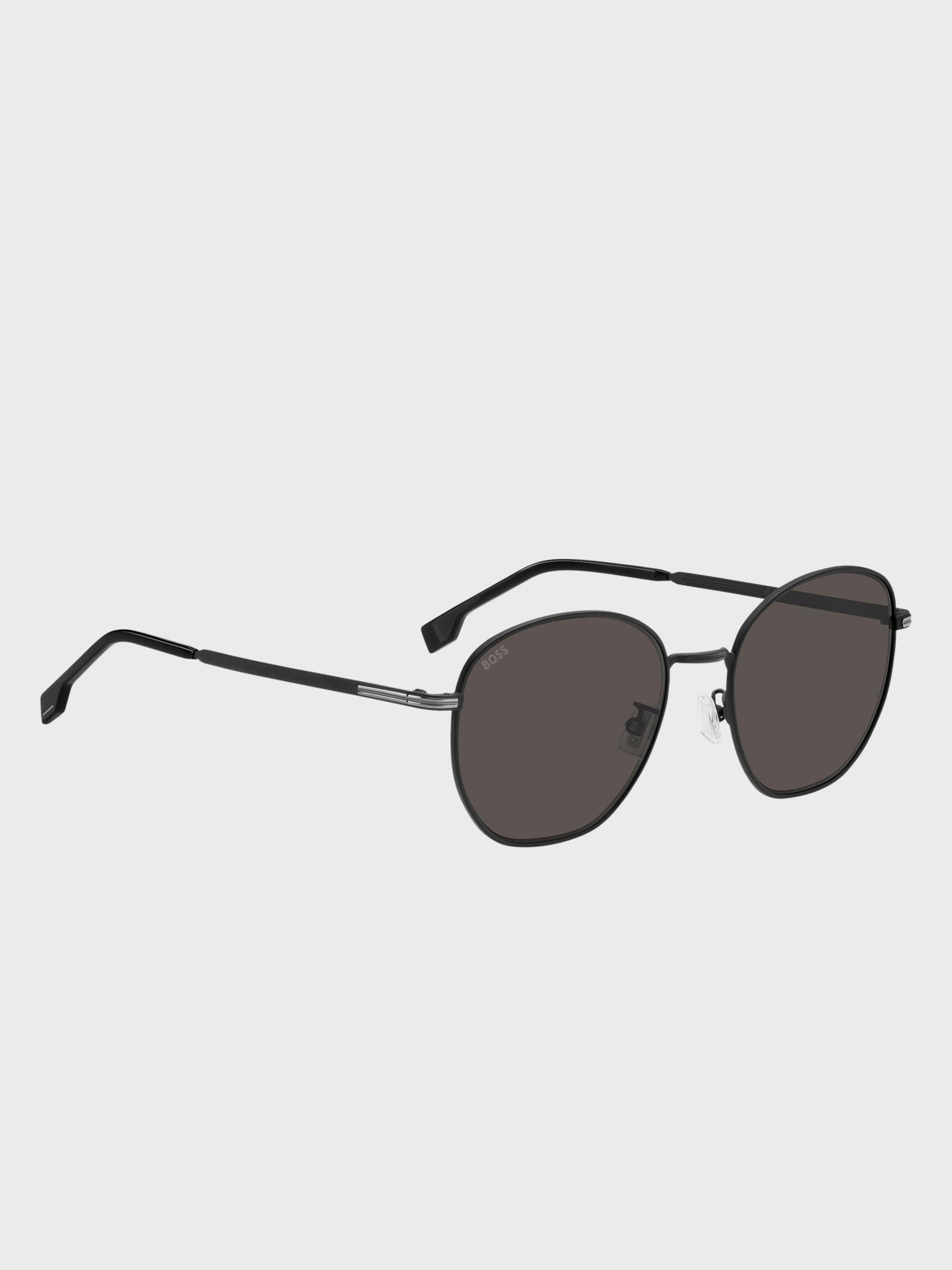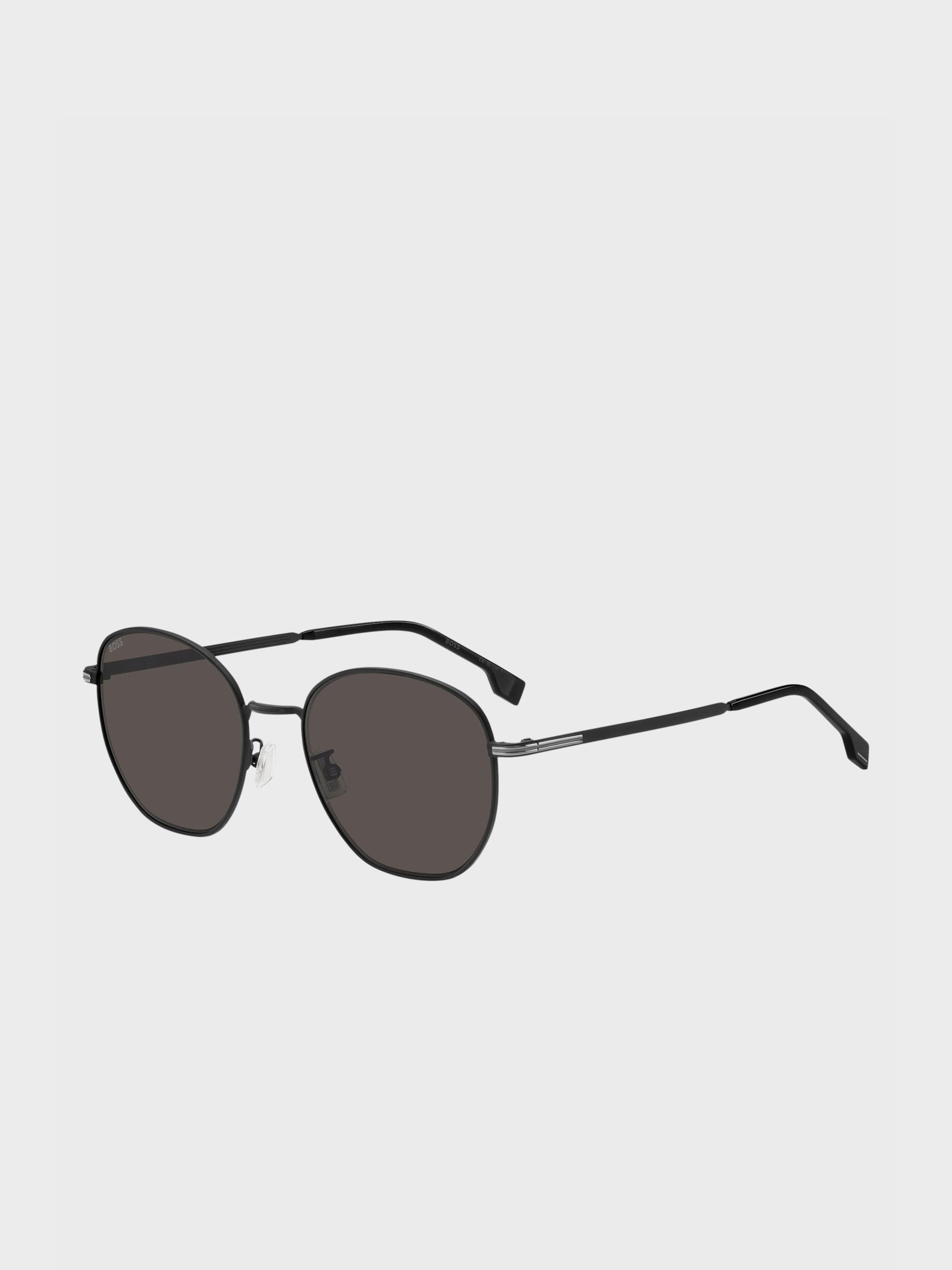 BOSS - Men's Round Sunglasses In Black Metal With Silver-Tone Hardware