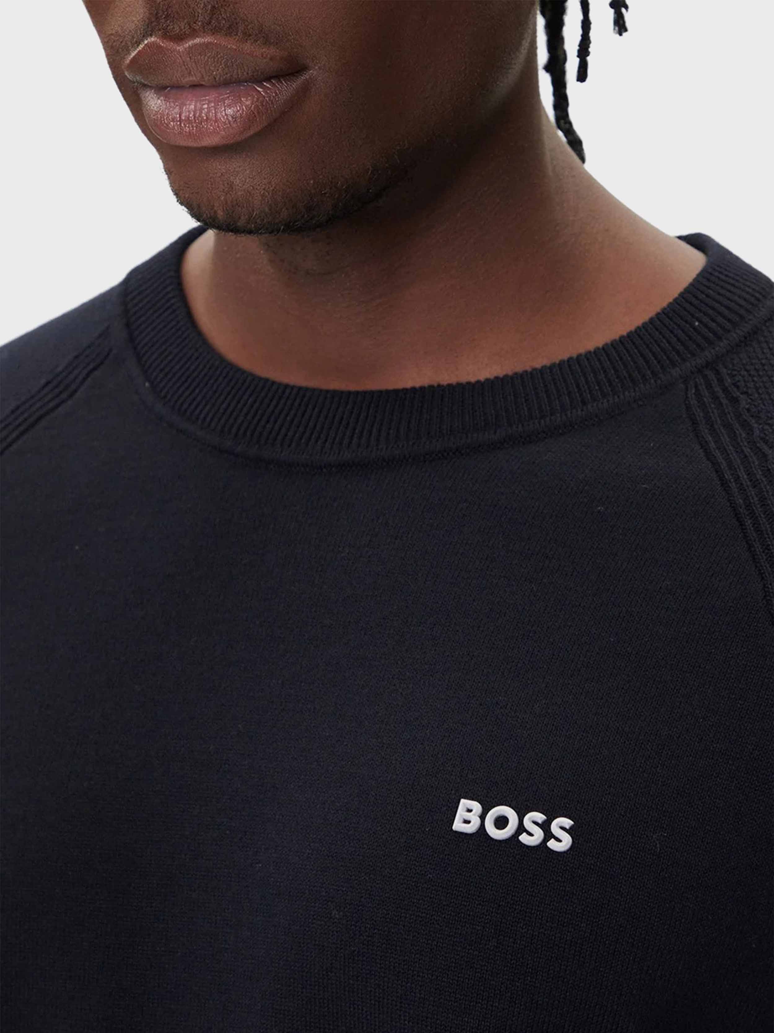 BOSS - Men's Cotton Blend Regular Fit Crew Neck Logo Sweater