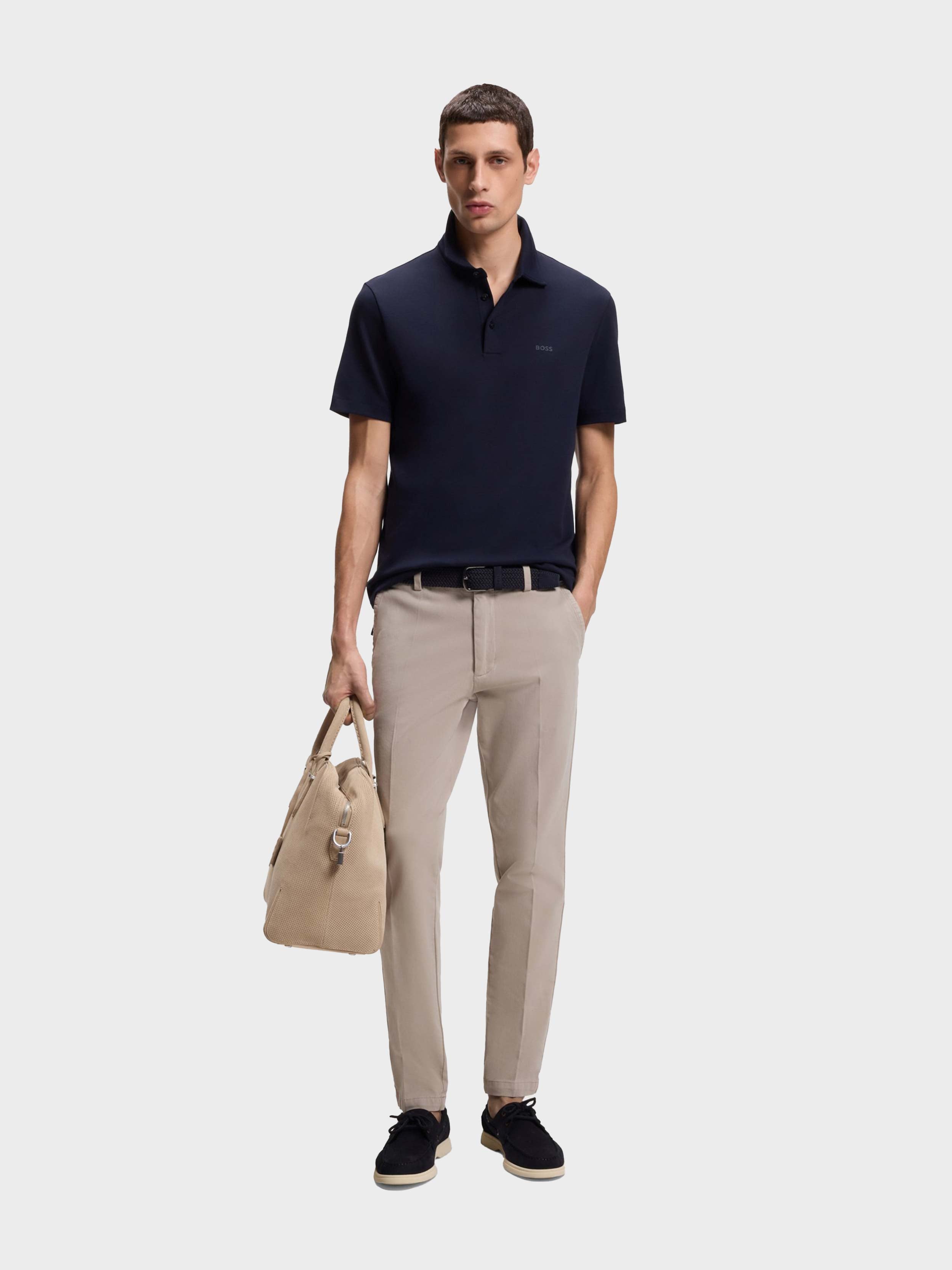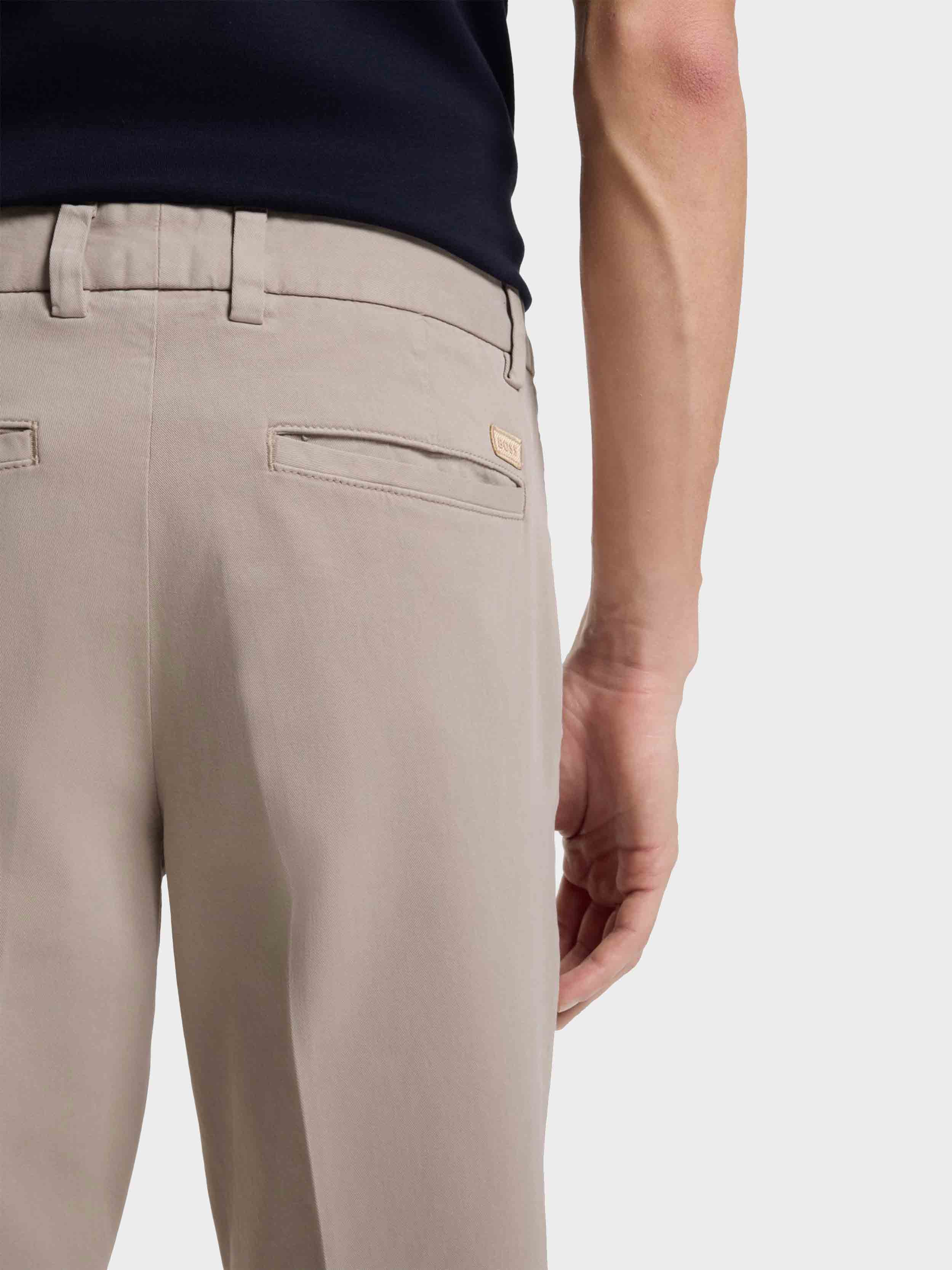 • BOSS BLACK HERITAGE - Our sophisticated all time classics: Explore highest quality fabrics and perfectly tailored timeless fits - HERITAGE ESSENTIAL - Timeless designs meet BOSS craftsmanship, celebrating classic elegance. -RESPONSIBLE - Responsibly sourced fabrics. - SLIM FIT, Regular waist, Slim leg - Cotton blend in 4way stretch