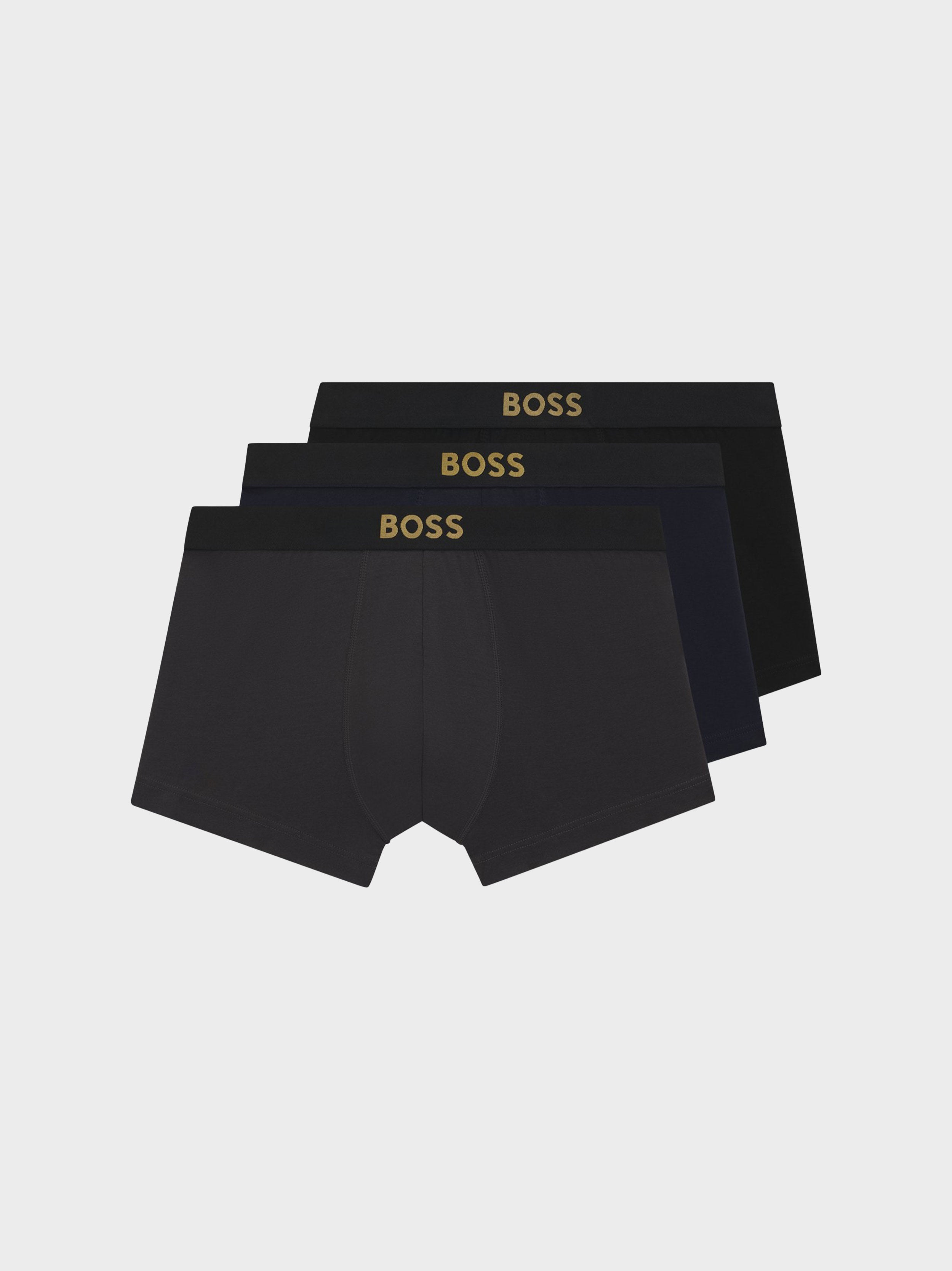 • With golden branding on the waistband, this three-pack of BOSS Menswear trunks provides refined foundations. Comfortable stretch cotton. Gift-boxed presentation.