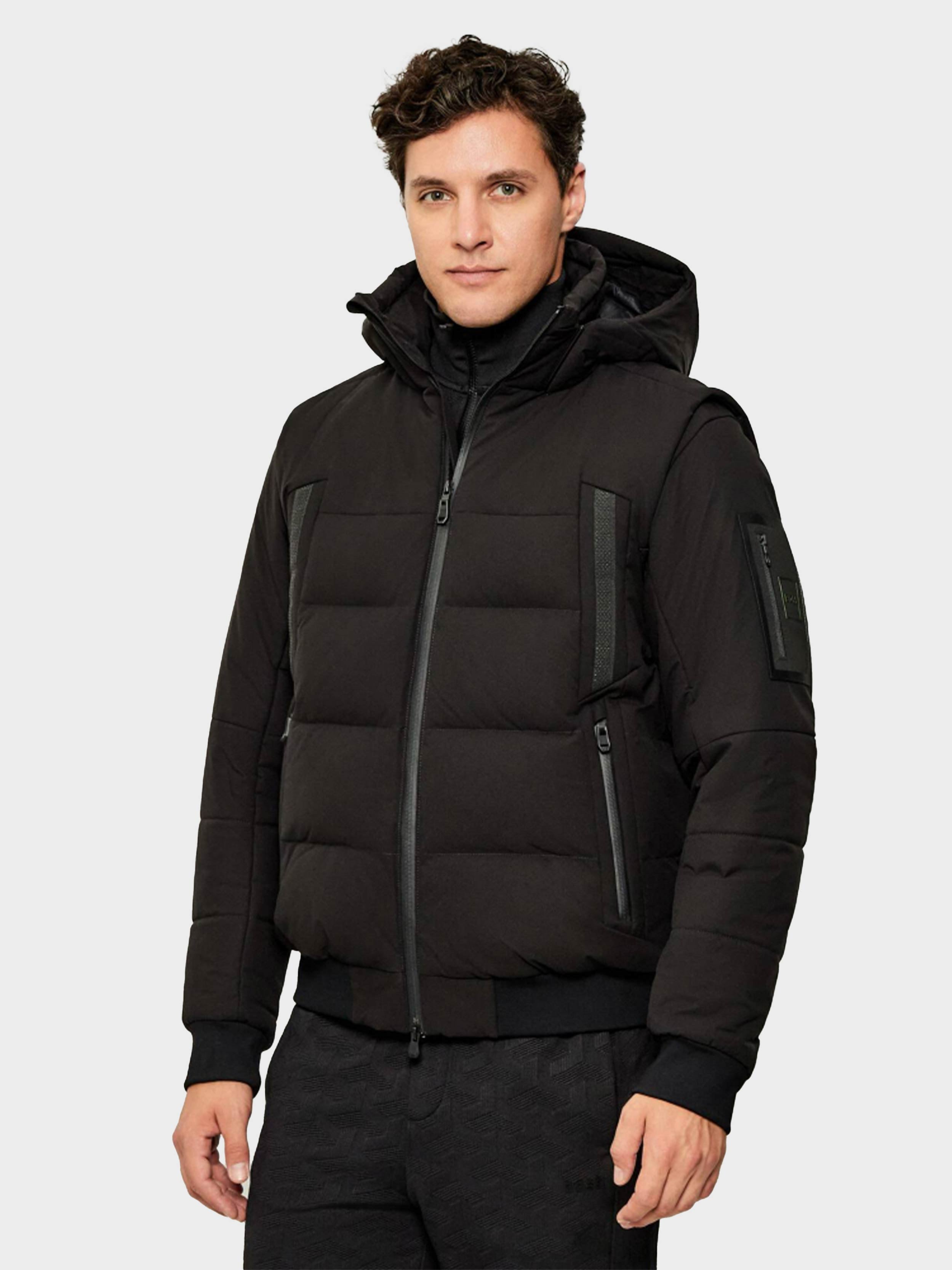 • he BOSS Down Jacket 2In1 Ow_Block-X men's down jacket combines style, practicality, and versatility. Its signature 2-in-1 design: the top section easily detaches,