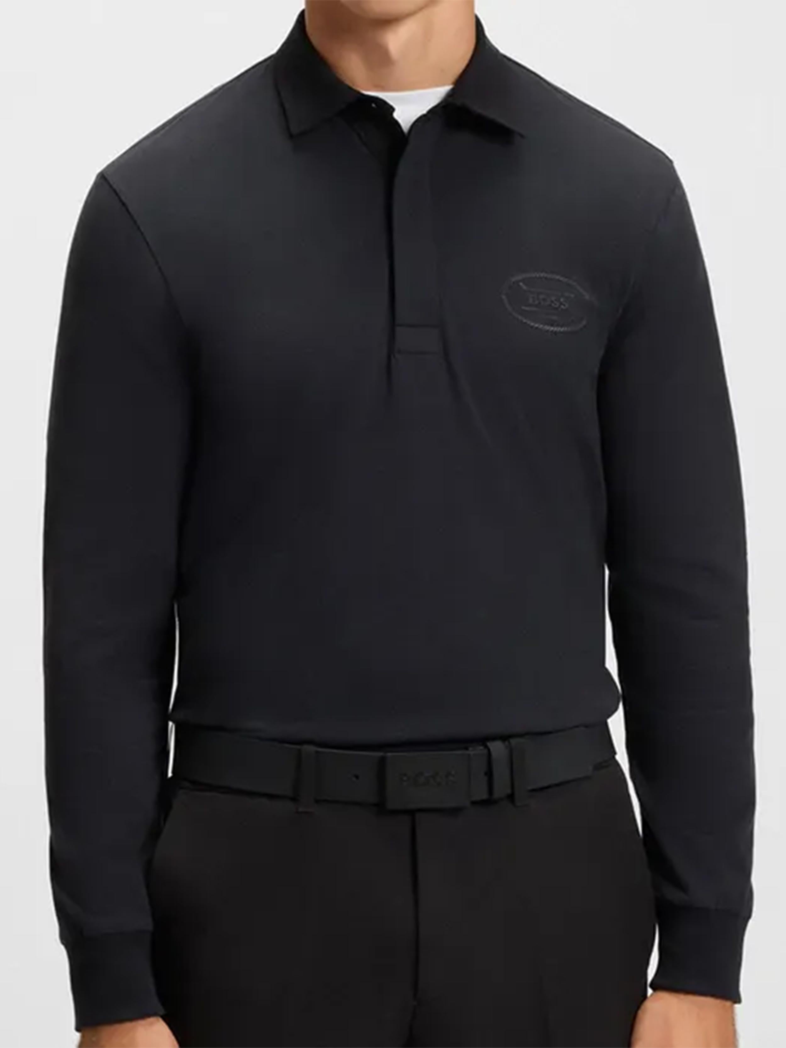 • BOSS - Men's Badge Jersey Long Sleeve Polo Shirt