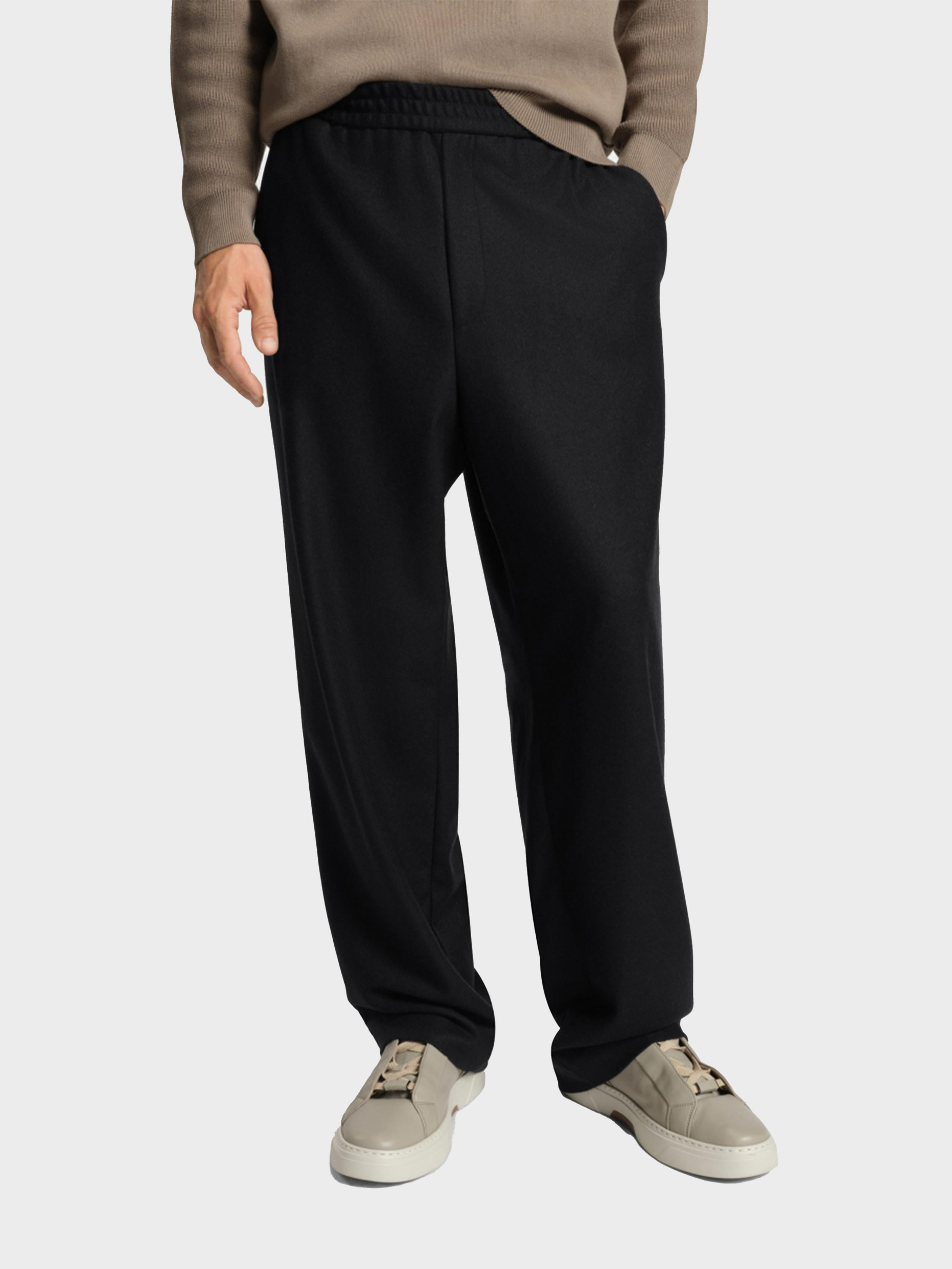 • Create comfortable formal looks with the relaxed, tapered fit and elasticated waistband of these BOSS Menswear trousers. Patterned wool-rich blend. This product contains at least 60% better raw materials. This product is partially made with recycled wool. For certain materials, like wool, we mix recycled and virgin content so we can provide a high-quality product.