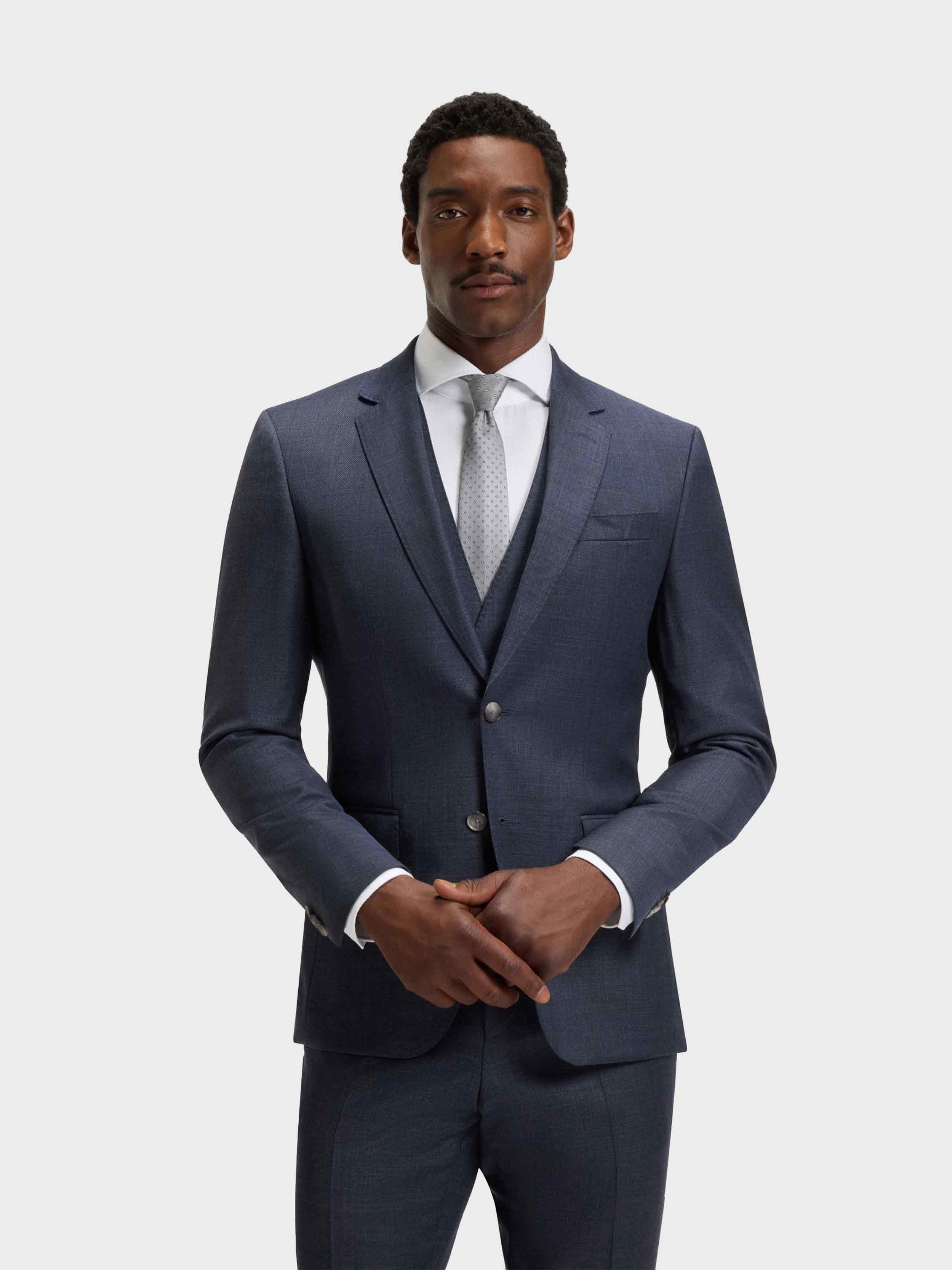 • BOSS - Men's Three Piece Slim Fit Suit In Patterned Stretch Wool