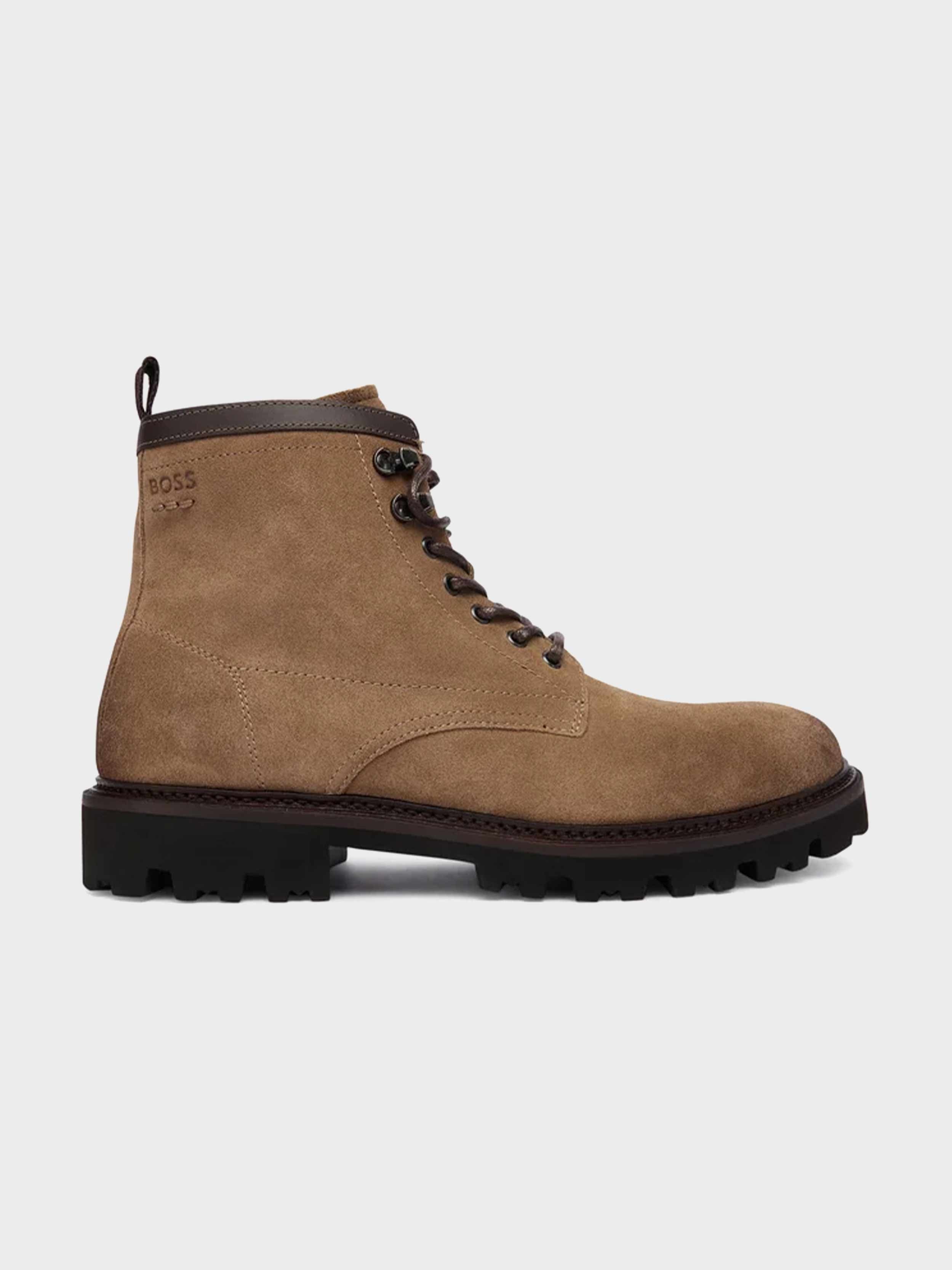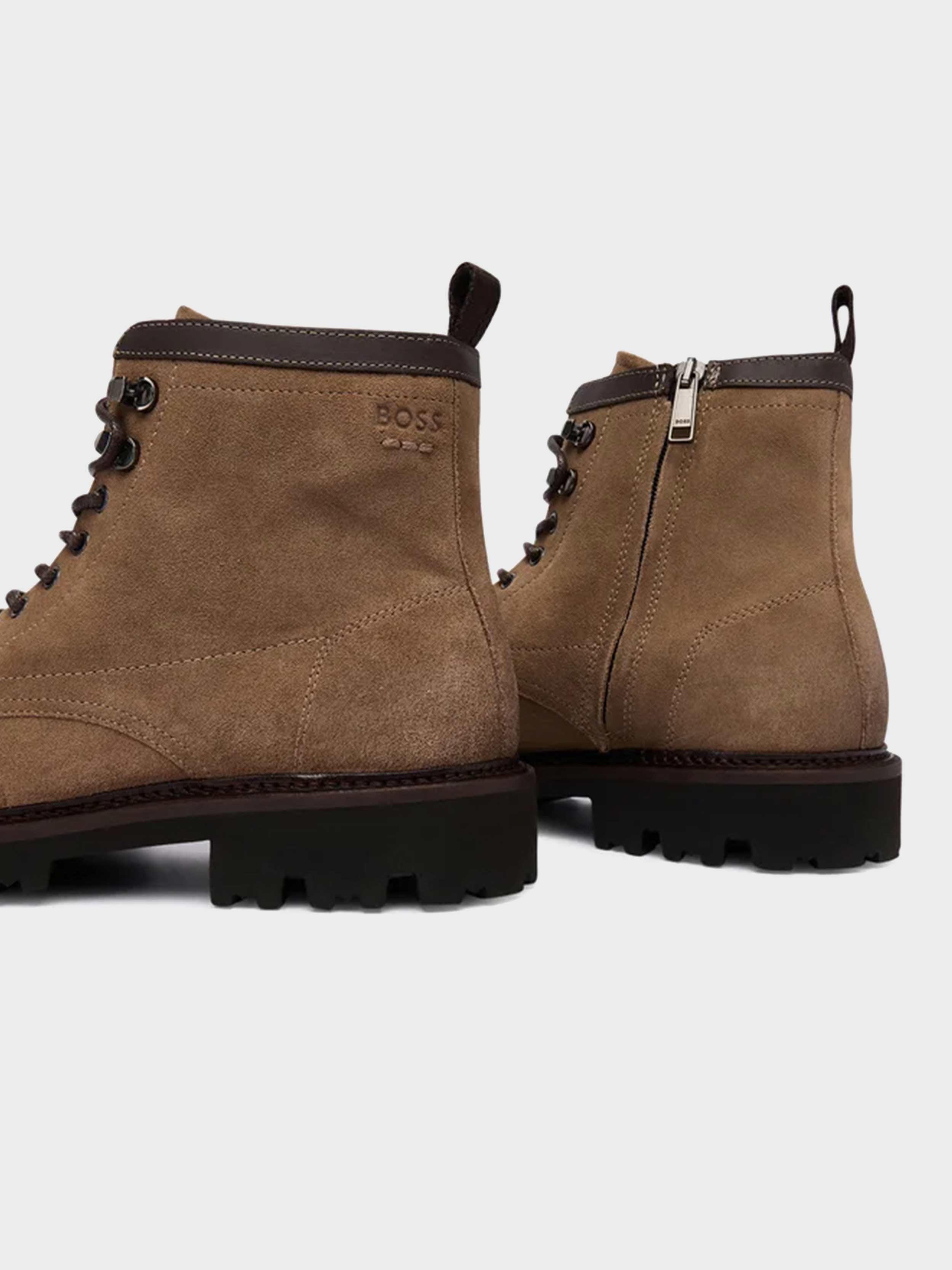 • Add timeless elegance to your wardrobe with these men's ankle boots from BOSS! Crafted from genuine leather, these shoes combine exceptional style with durability. The round toe gives them a classic touch, while the double zip and lace closure ensures a perfect fit and comfort. These ankle boots are a perfect choice for everyday wear and special occasions, offering unparalleled comfort and a sophisticated look. They work well with both casual and more formal outfits, adding a touch of luxury.