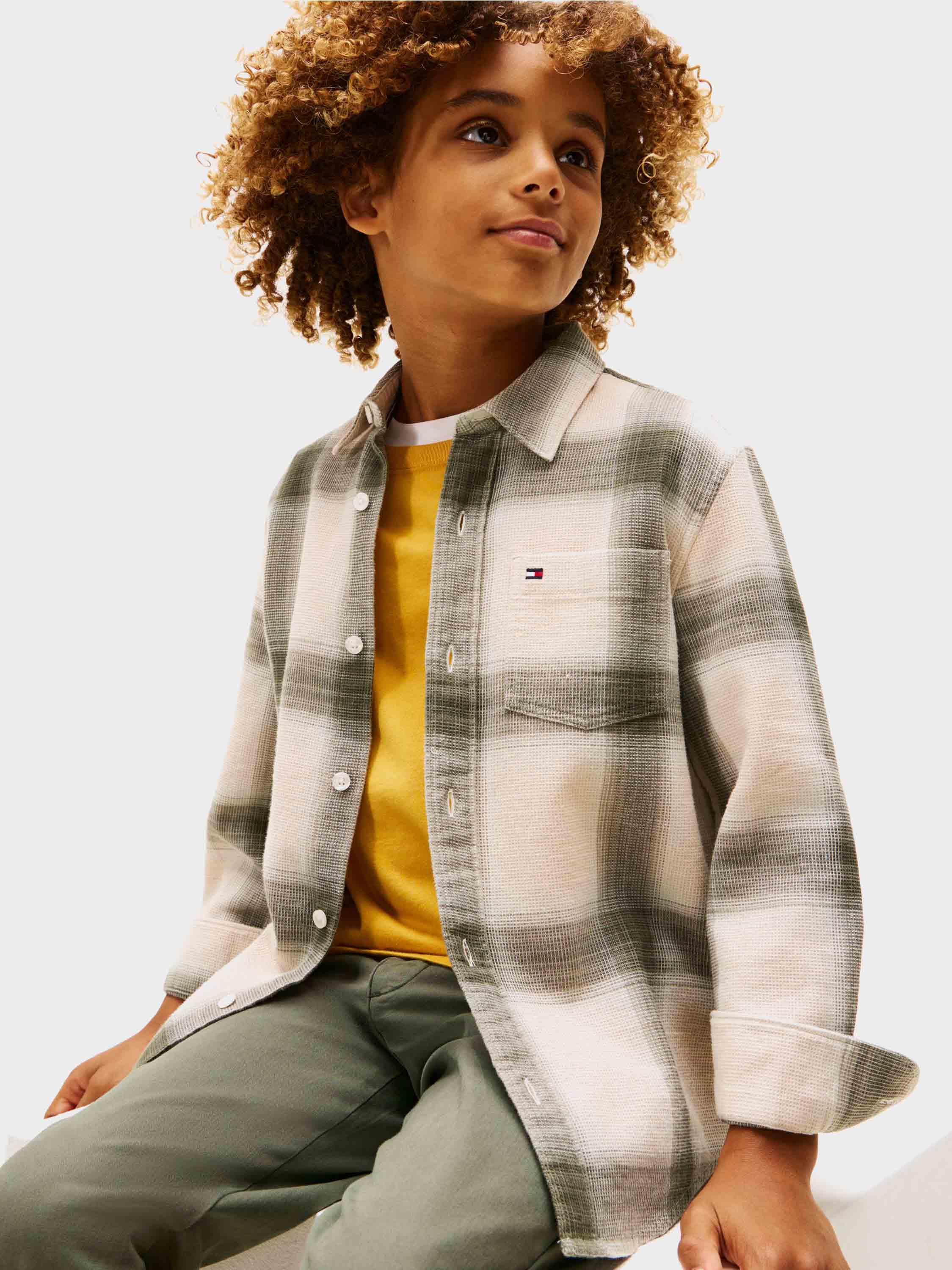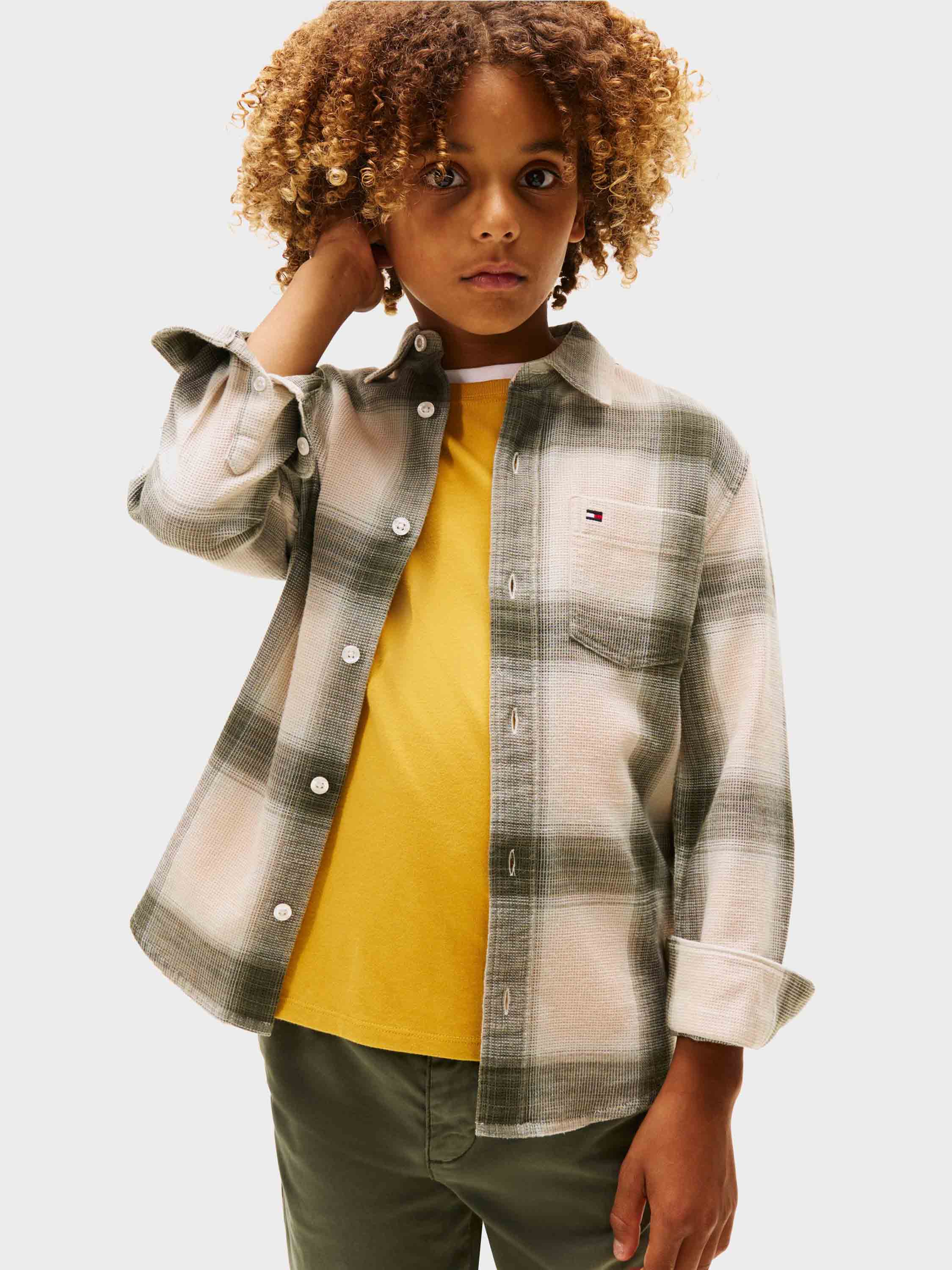 Tommy Hilfiger - WAFFLE TEXTURE CHECK SHIRT , 4 , Pewter Green Check , Style KB0KB09999