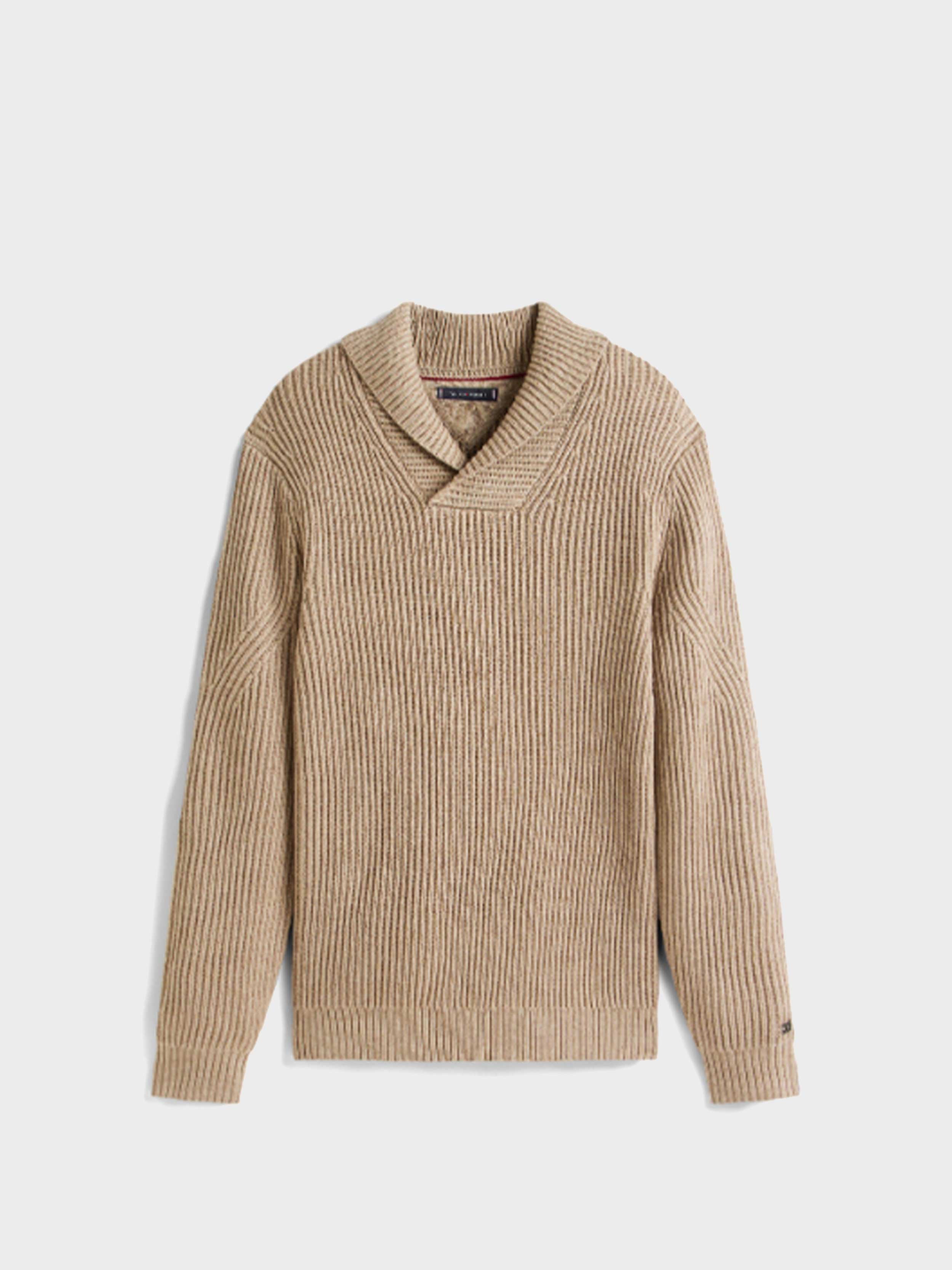 Tommy Hilfiger - DC SHAWL COLLAR SWEATER , L , Coastal Taupe Heather , Style MW0MW40913