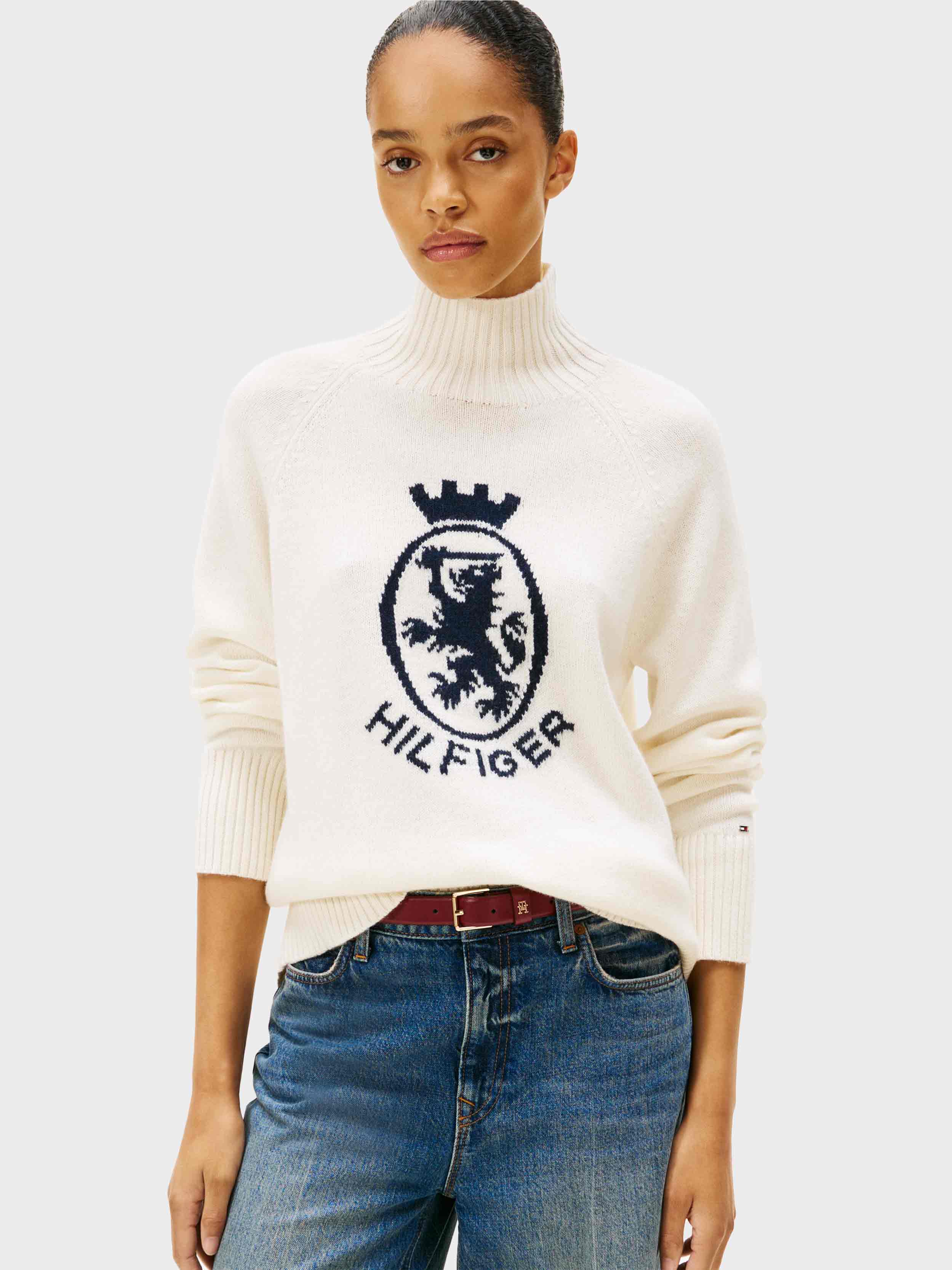 Tommy Hilfiger - WOOL BLEND GRAPHIC MOCK-NK SWT , L , Ivory Petal , Style WW0WW46434