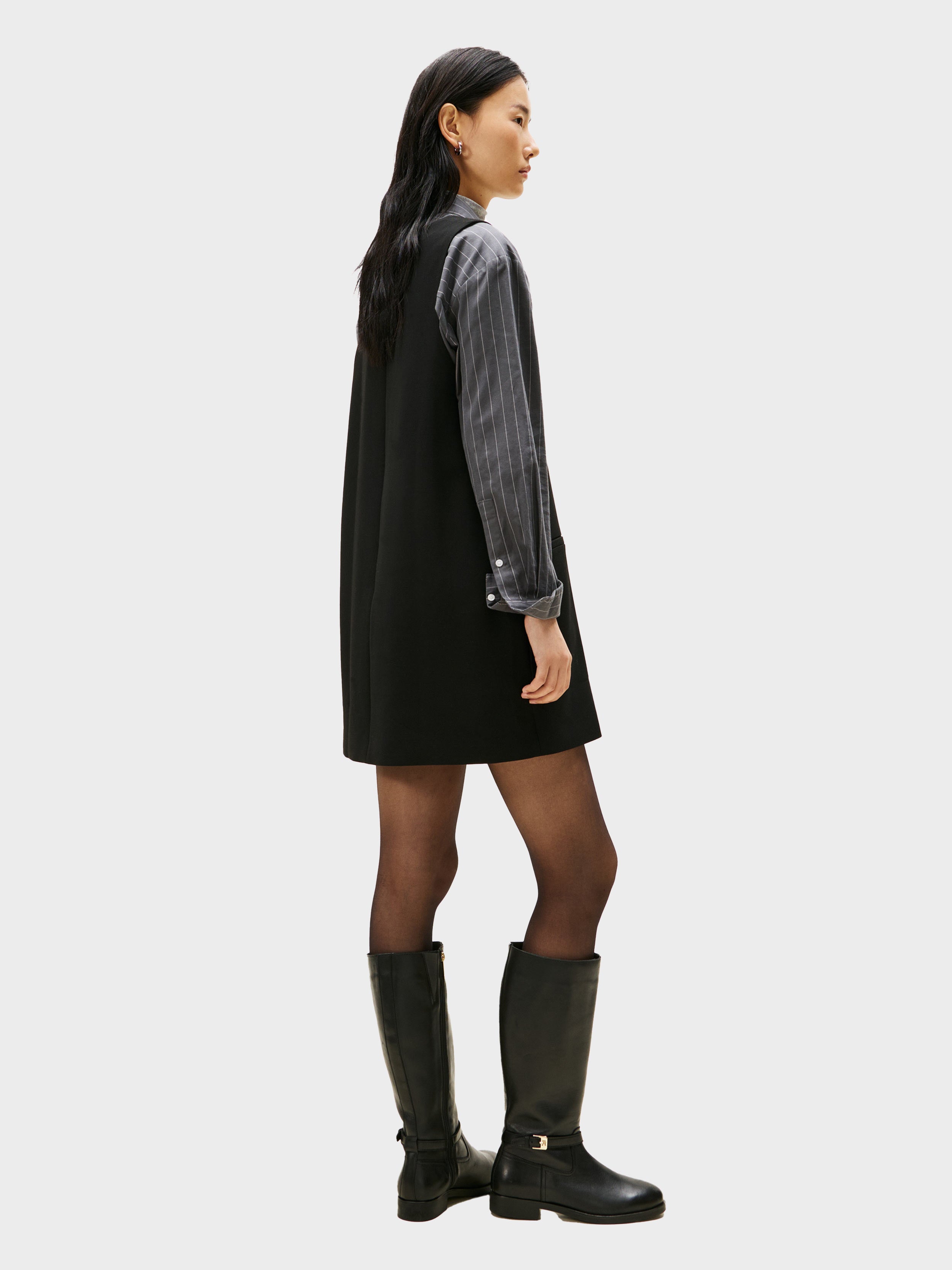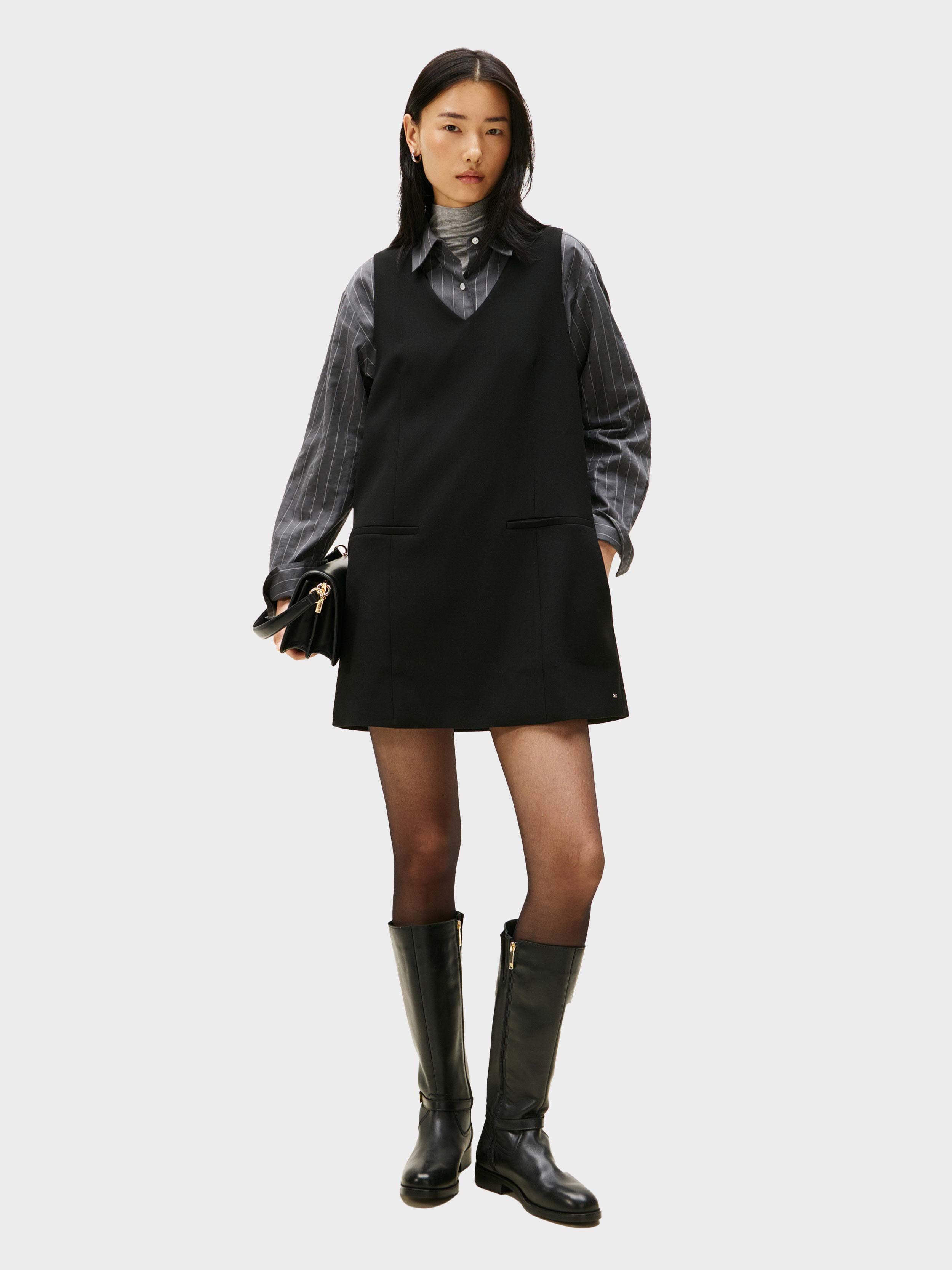 Tommy Hilfiger - PUNTO V-NK NS MINI SHIFT DRESS , 40 , Black , Style WW0WW48264
