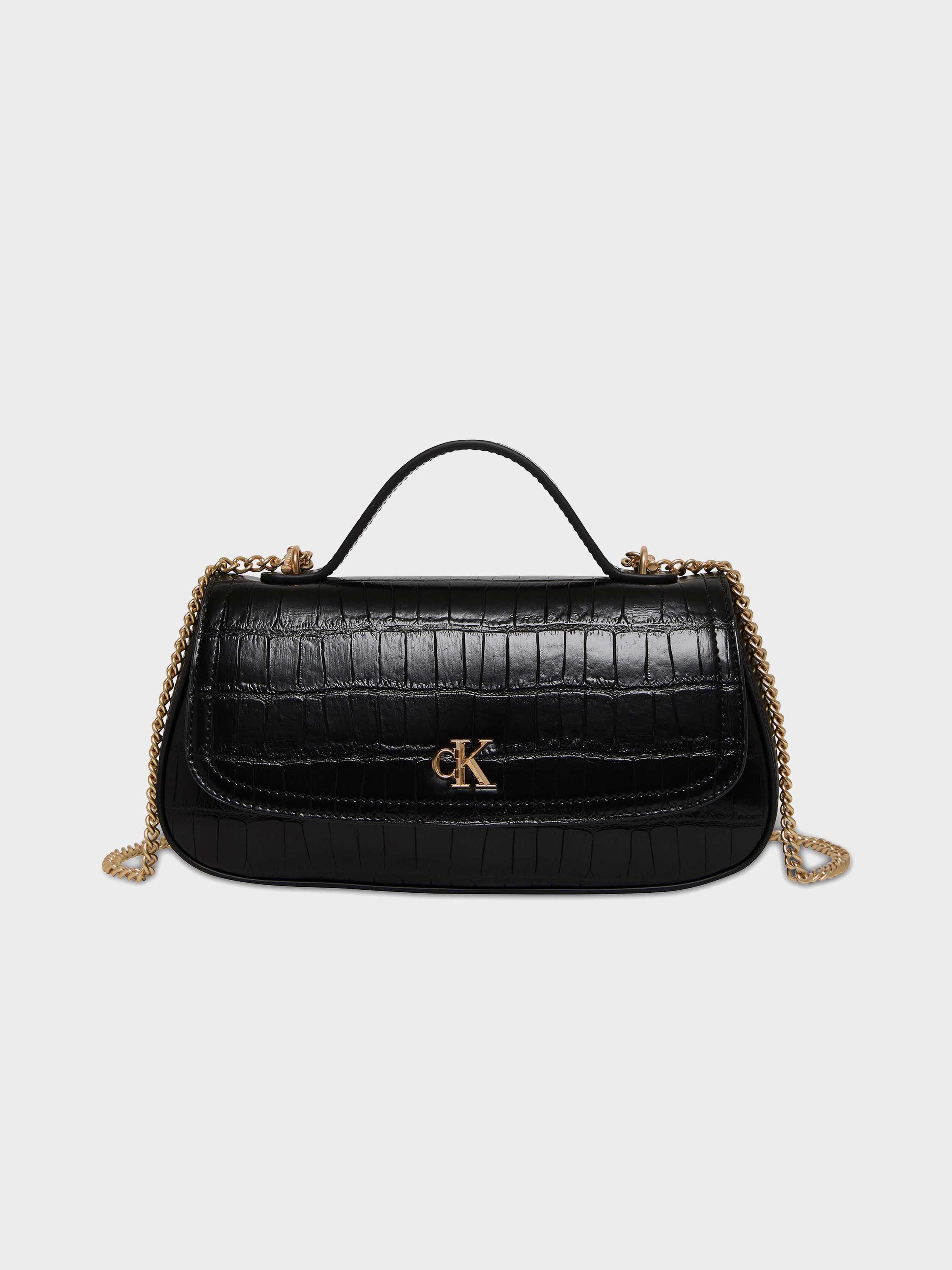 Calvin Klein - CK CROC TOP HANDLE BAG W CH?AIN , OS , BLACK / ANTIQUE LIGHT GOLD , Style LV04F3287G