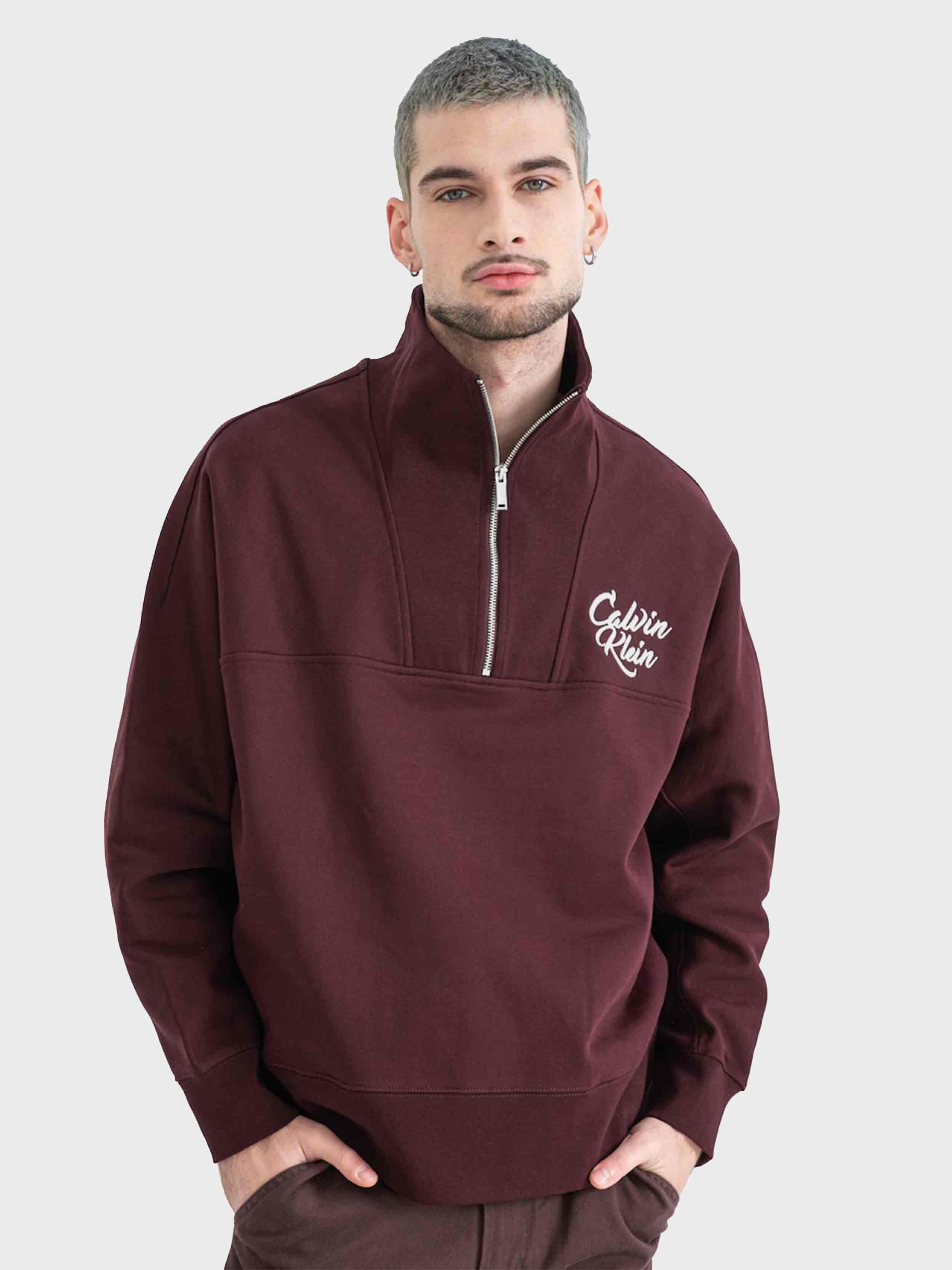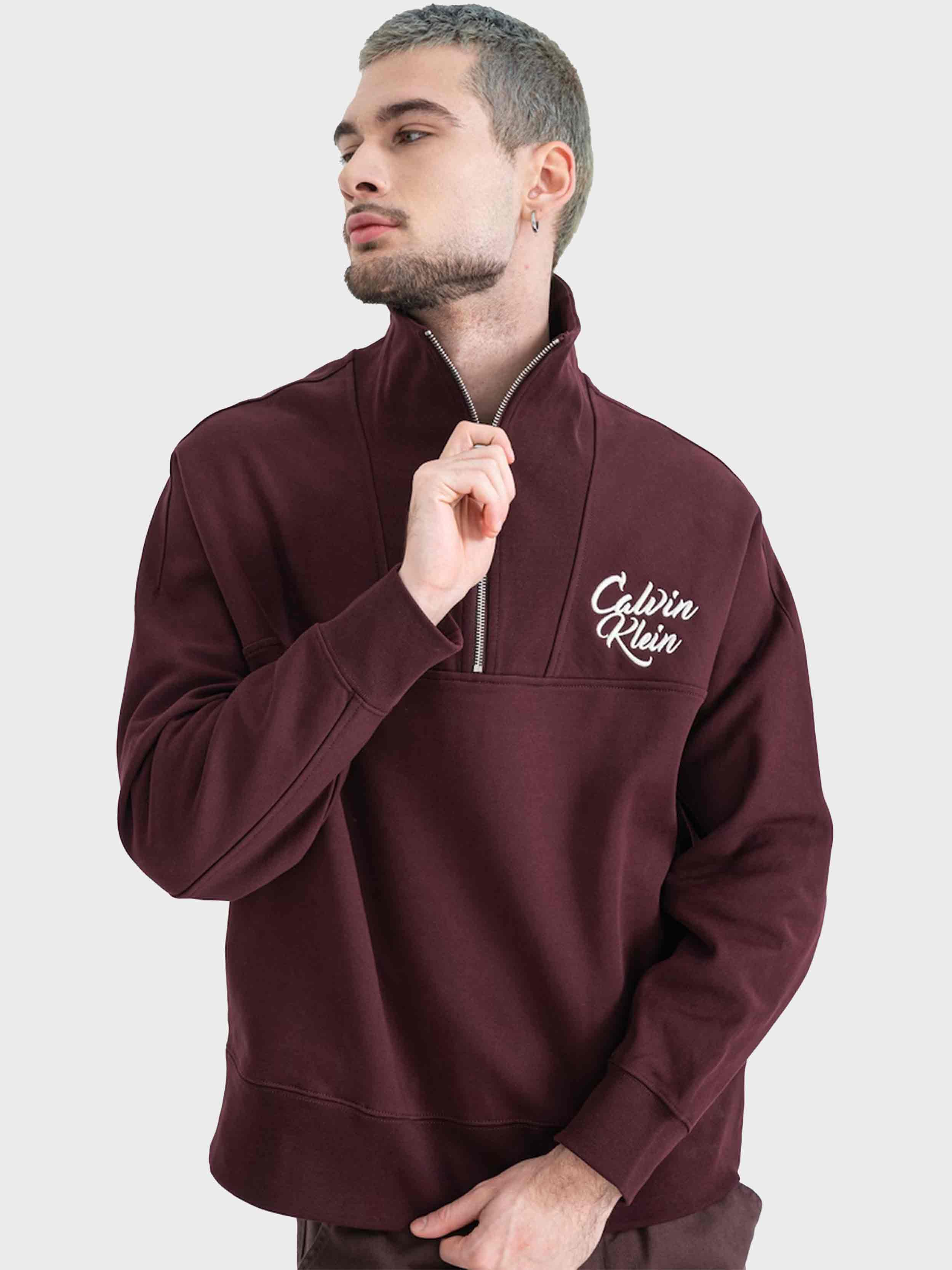 Calvin Klein - PREMIUM FLEECE LOGO FUNNEL NECK , XL , Moroccan Brown , Style LV04RD205G