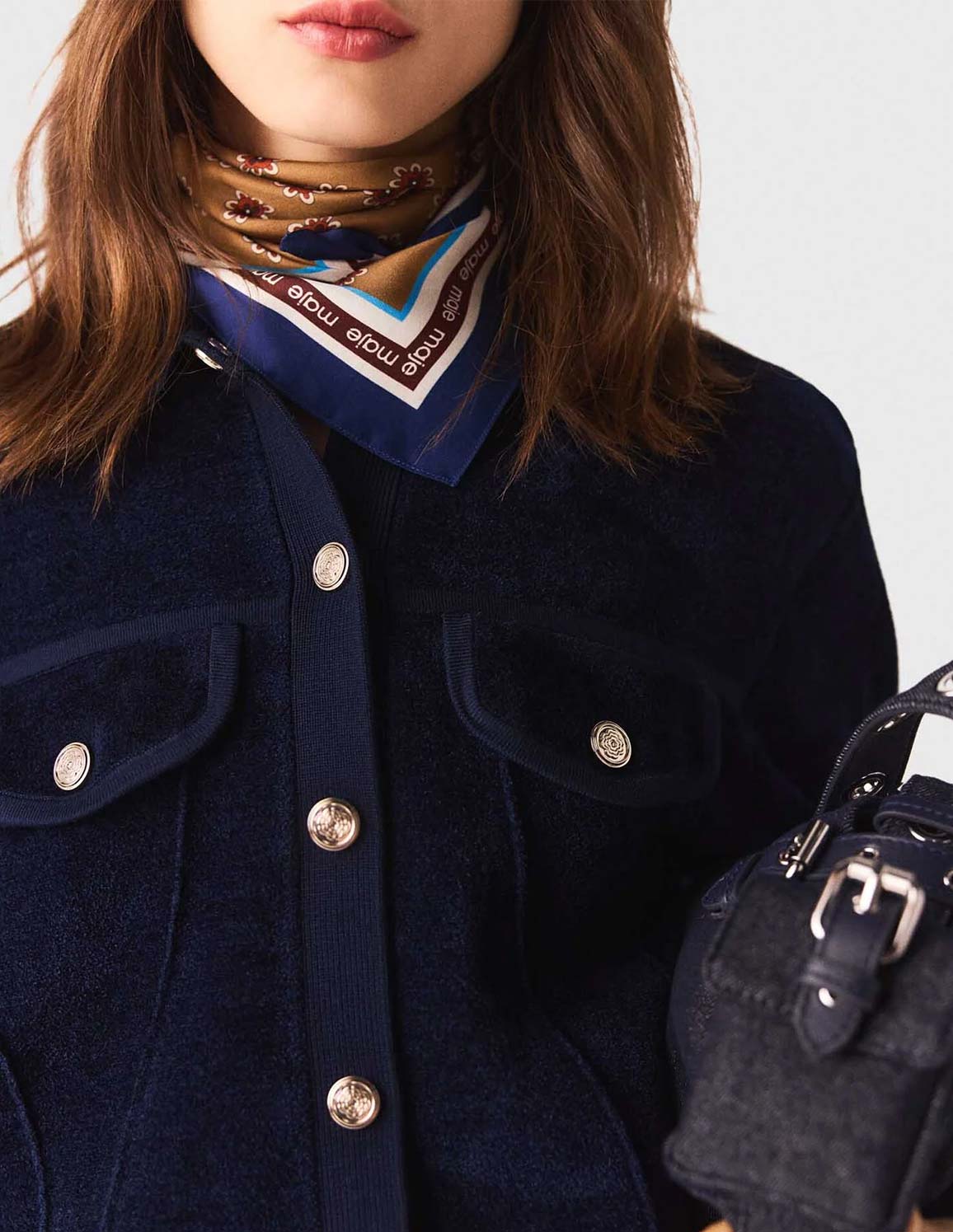 • This season is all about soft textures and pieces with character. This corduroy jacket-style cardigan strikes the perfect balance between comfort and style. The knit collar and ribbed trims accentuate the silhouette, while its slightly loose fit gives it a casual look. Wear with balloon jeans to play with volumes, and accessorise with a printed scarf, a leather bag and chic loafers.