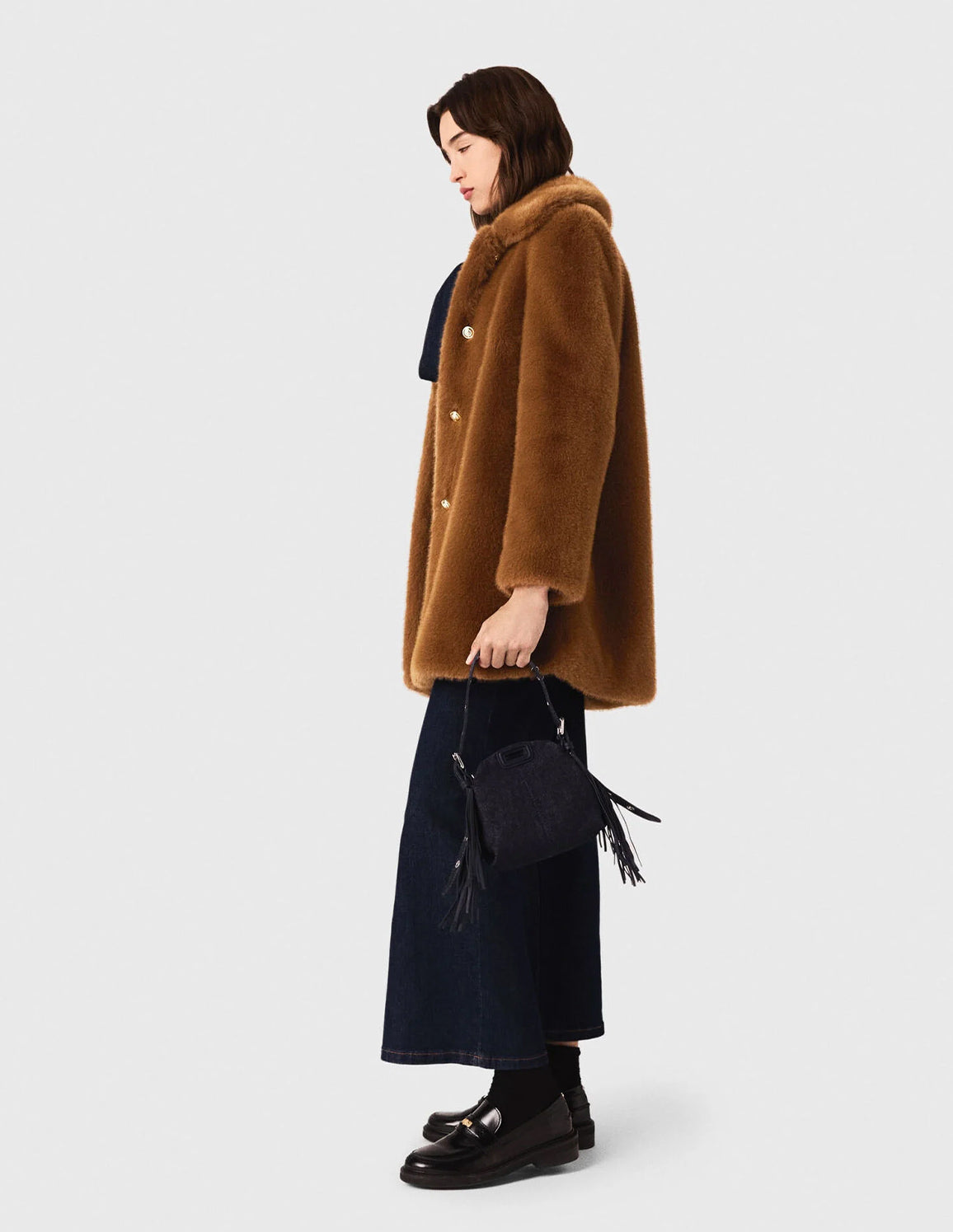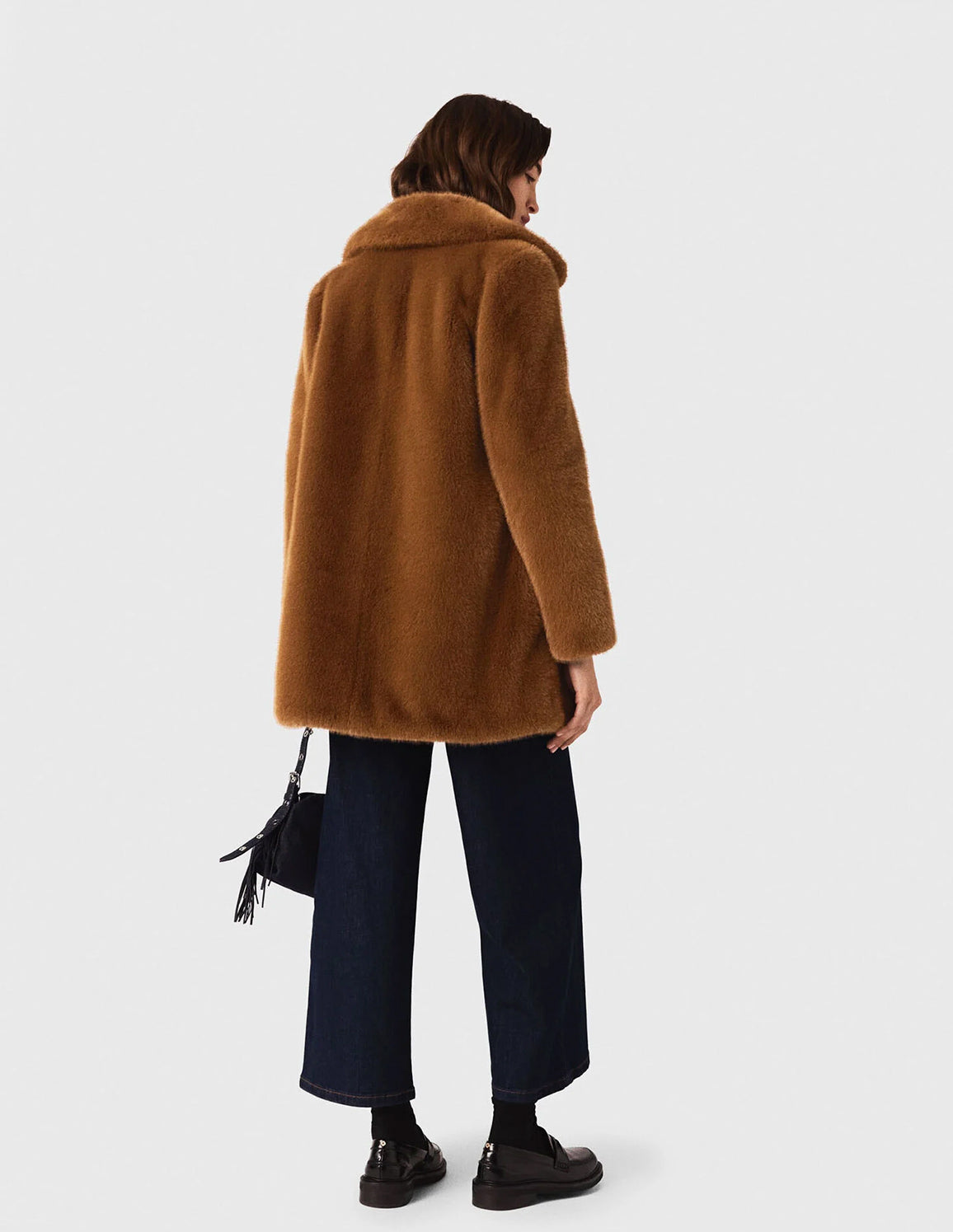 • Mid-length faux fur coat