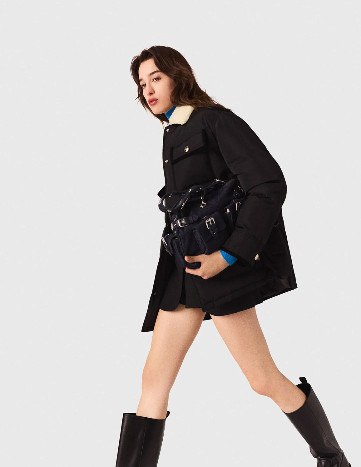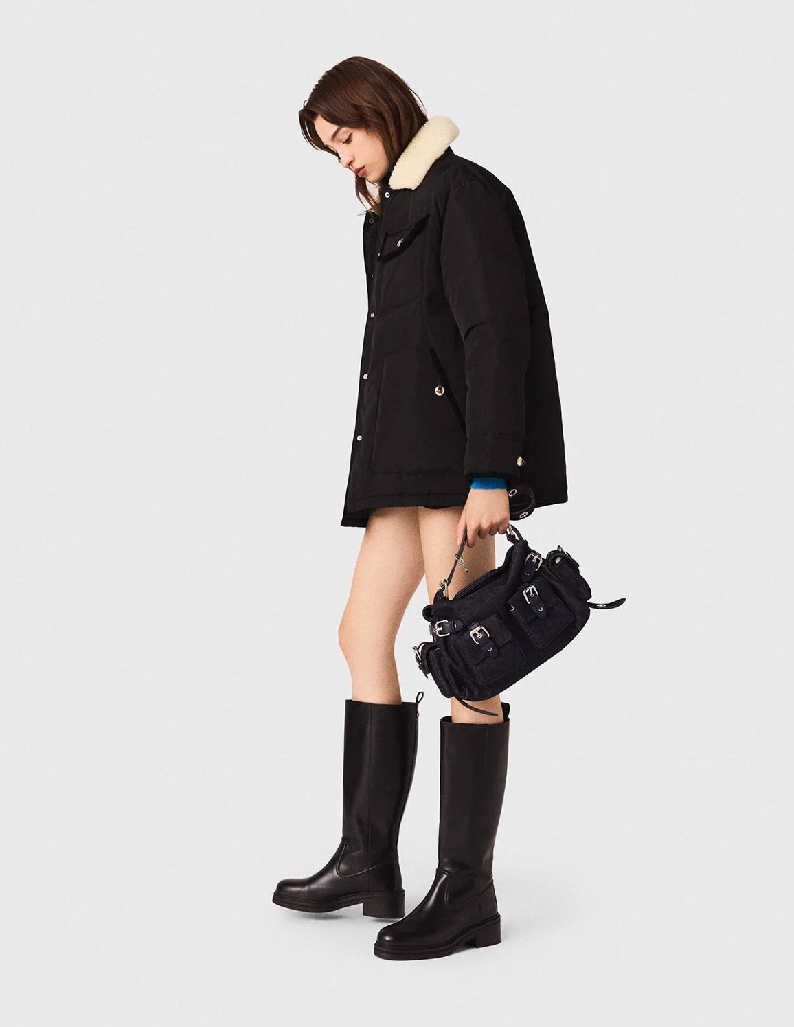 • Add accessories to complete the silhouette: high boots and a signature bag.