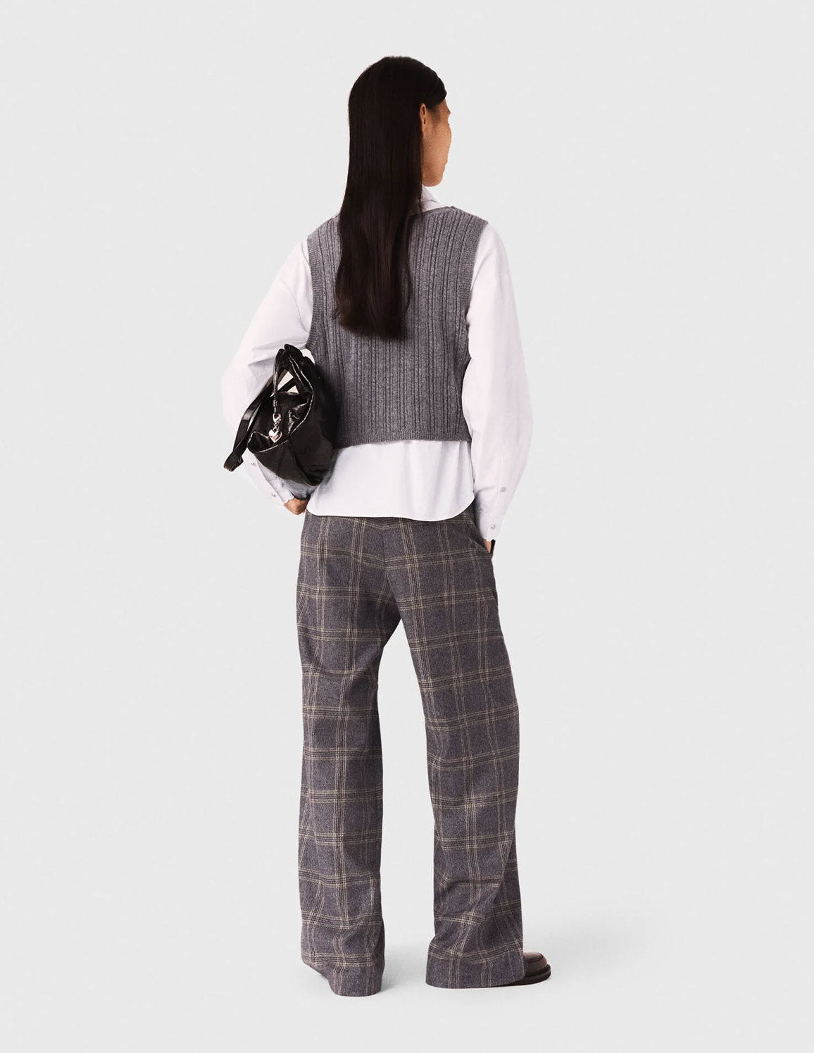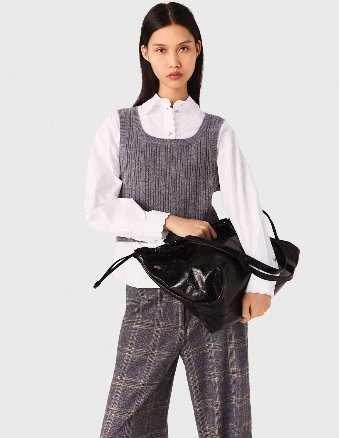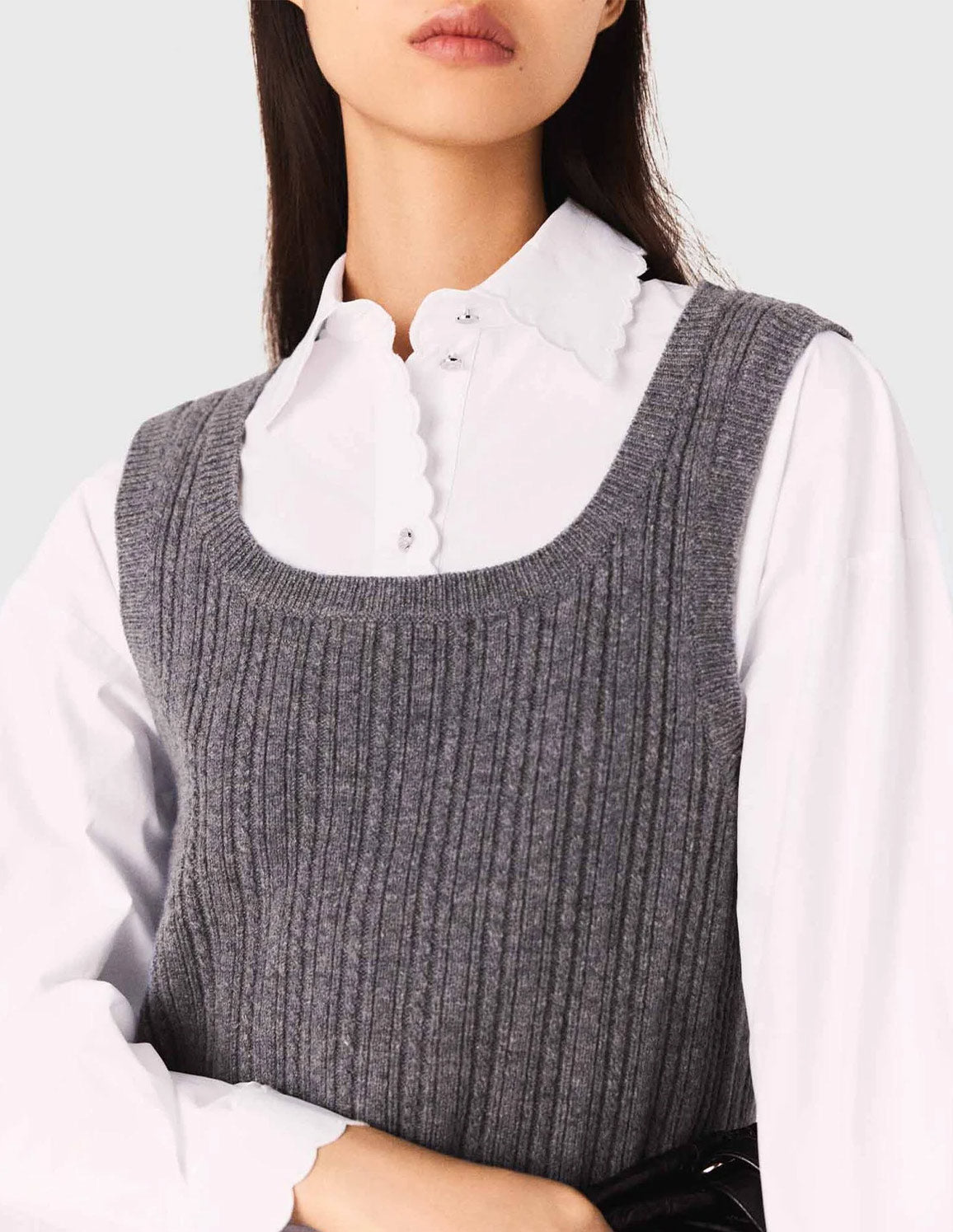 • This top creates the illusion of a sophisticated layered look: a square-neck knitted tank top and a long-sleeved shirt with an embroidered collar are one and the same. Tuck it into checked trousers for an elegant and effortless head-to-toe look, and accessorise with a bag and leather ankle boots.