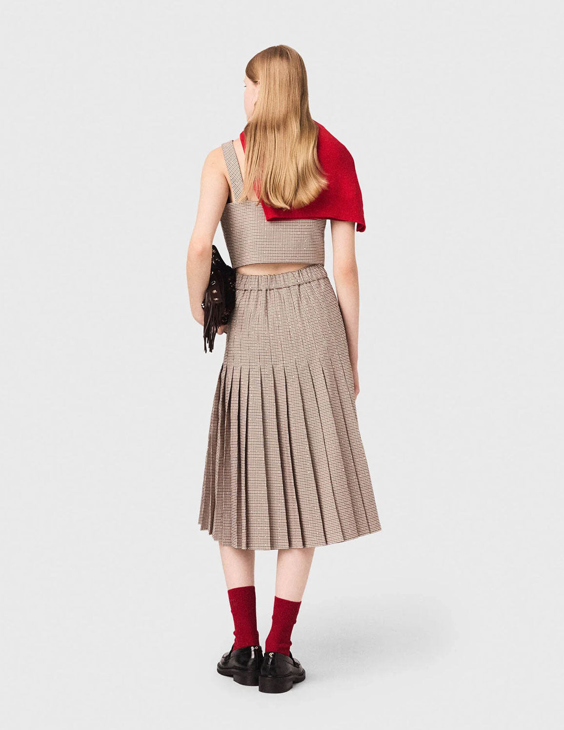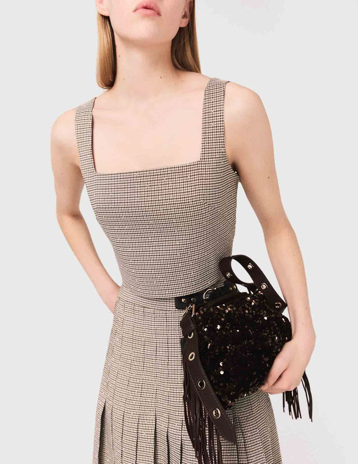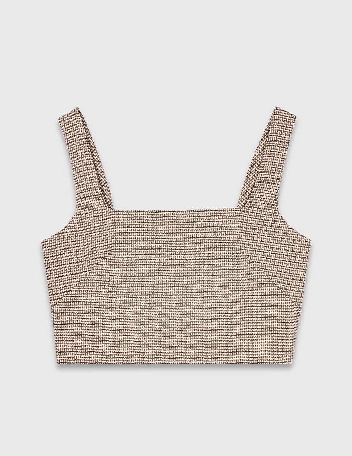 • This houndstooth crop top combines a graphic structure with discreet rhinestones that add sparkle. Its square neckline and side zip fastening create a precise finish, while maintaining a contemporary line.
